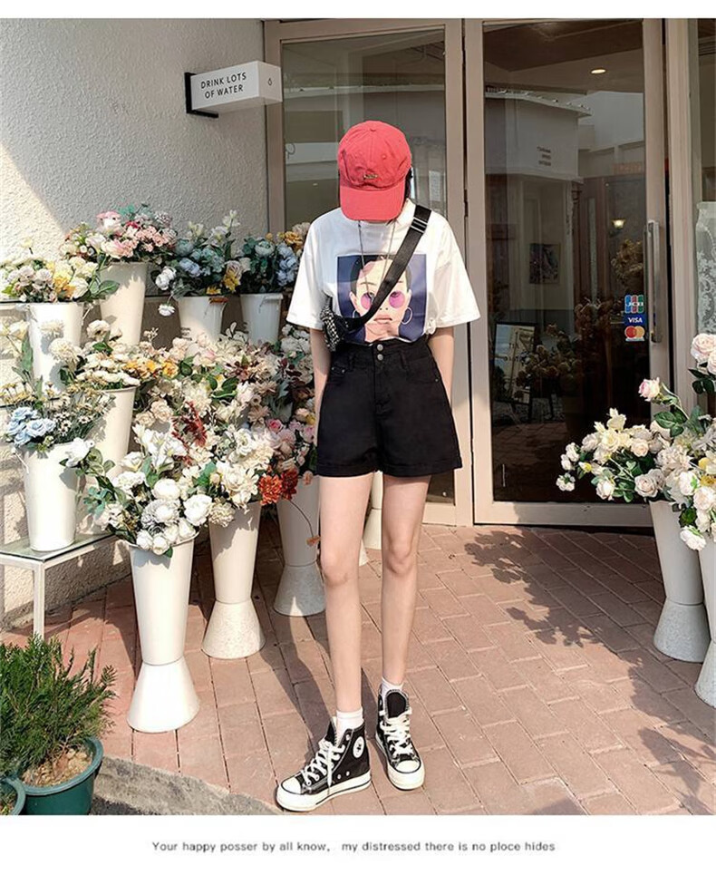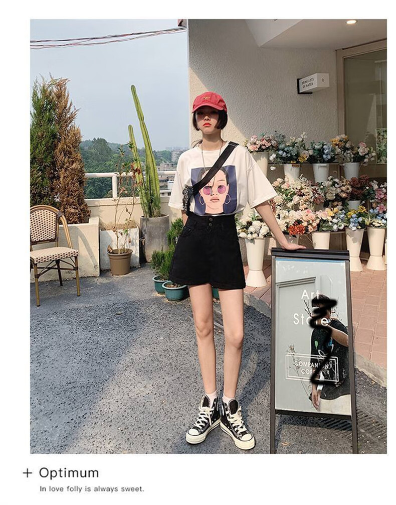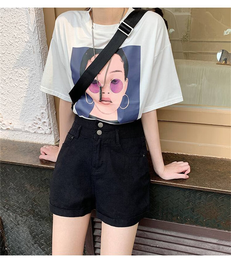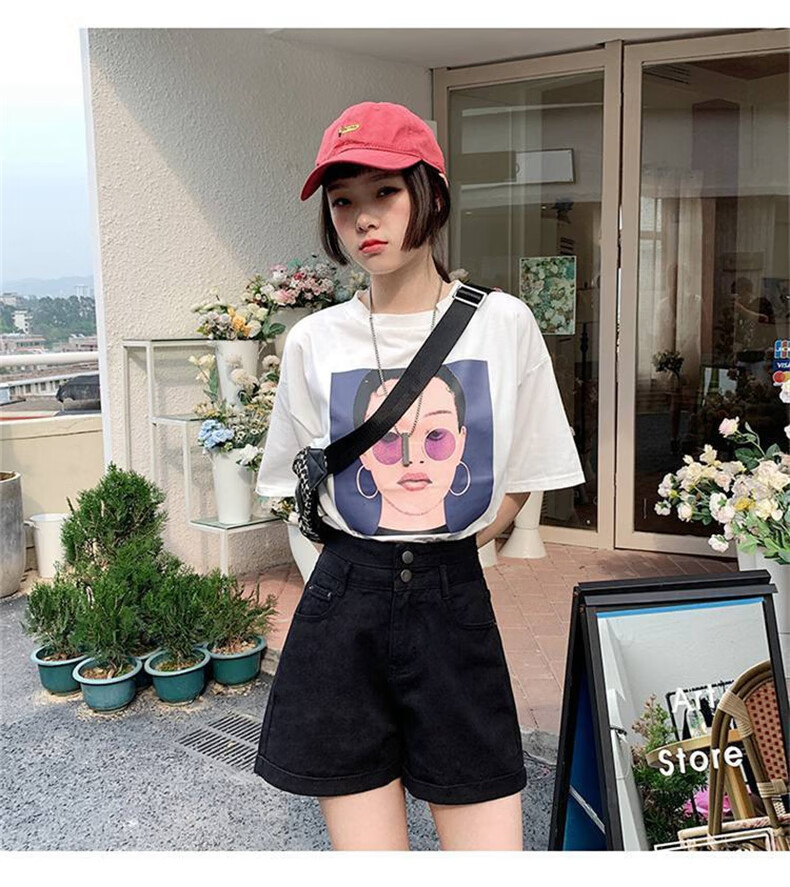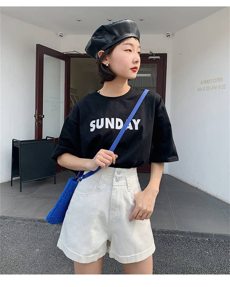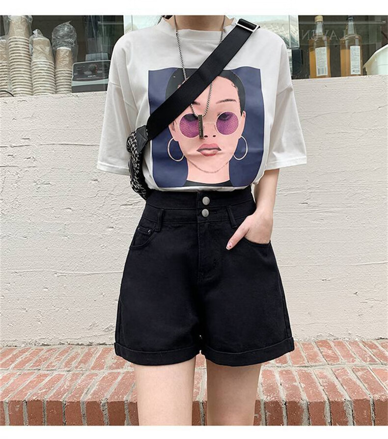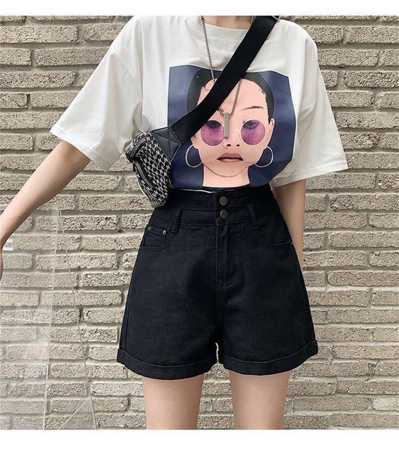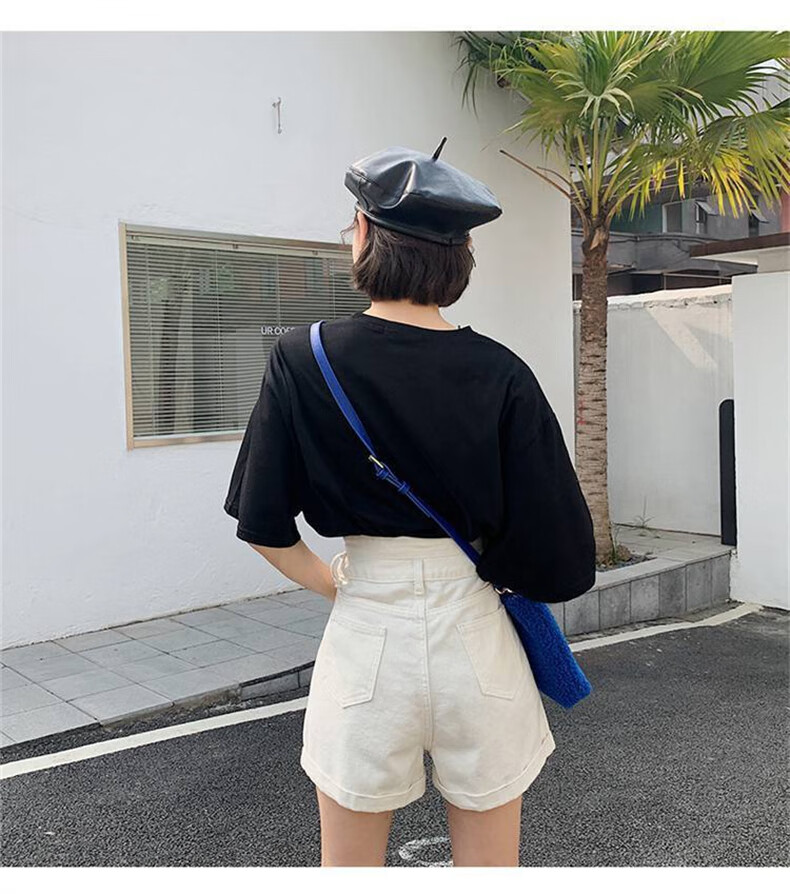 Langsha white denim shorts women's summer new high-waisted straight double-button loose wide-leg outer hot pants ins trend