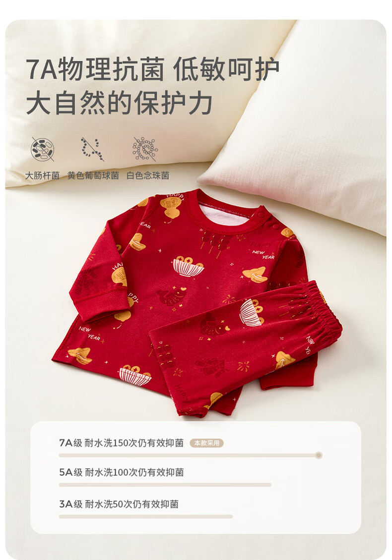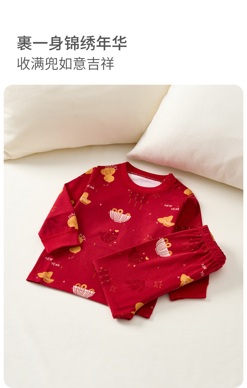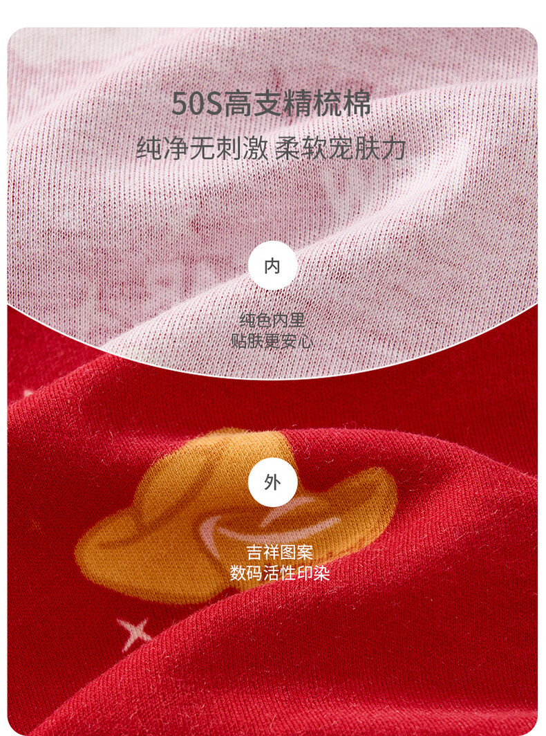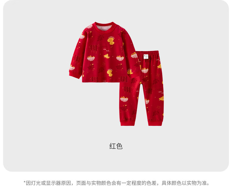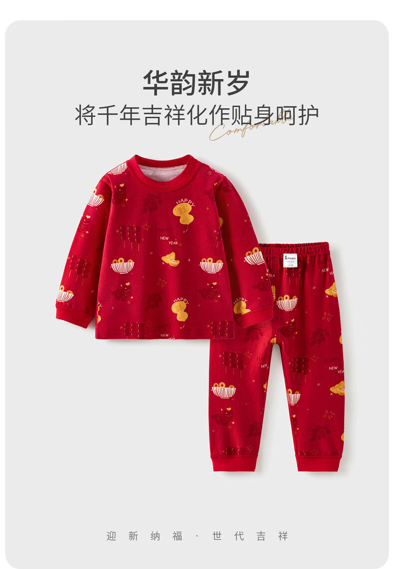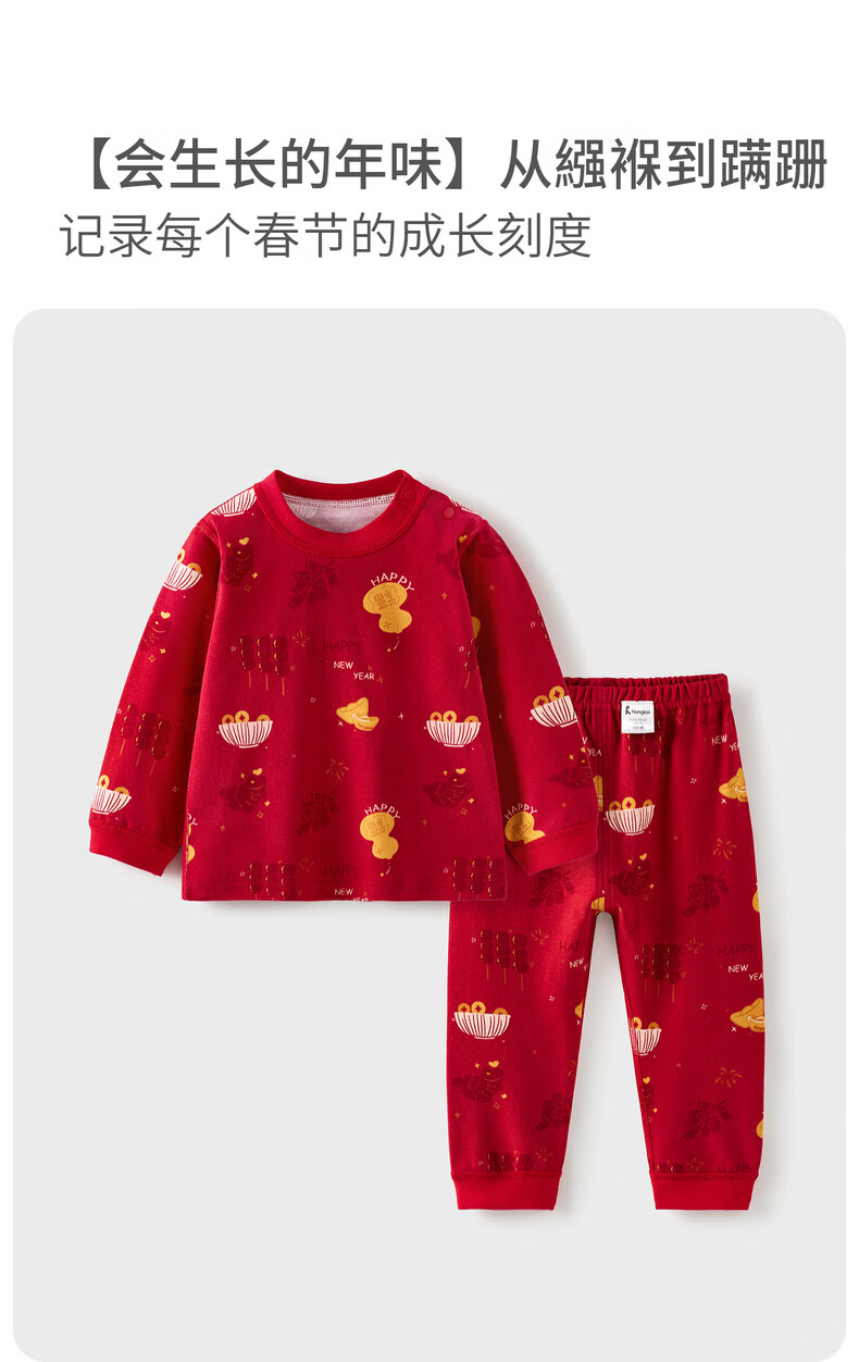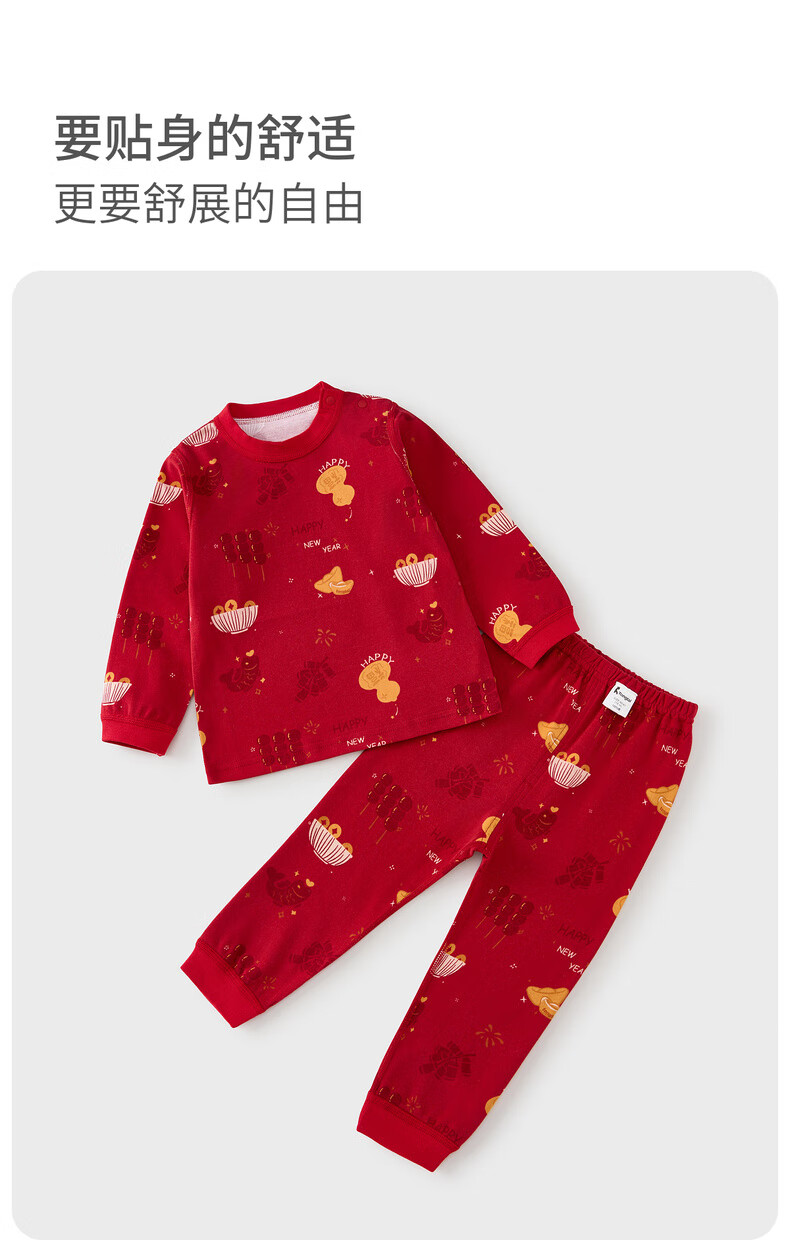 Tongtai (TONGTAI) baby autumn clothing set spring and autumn pure cotton children's underwear boys and girls autumn pants New Year's home clothes red 110cm