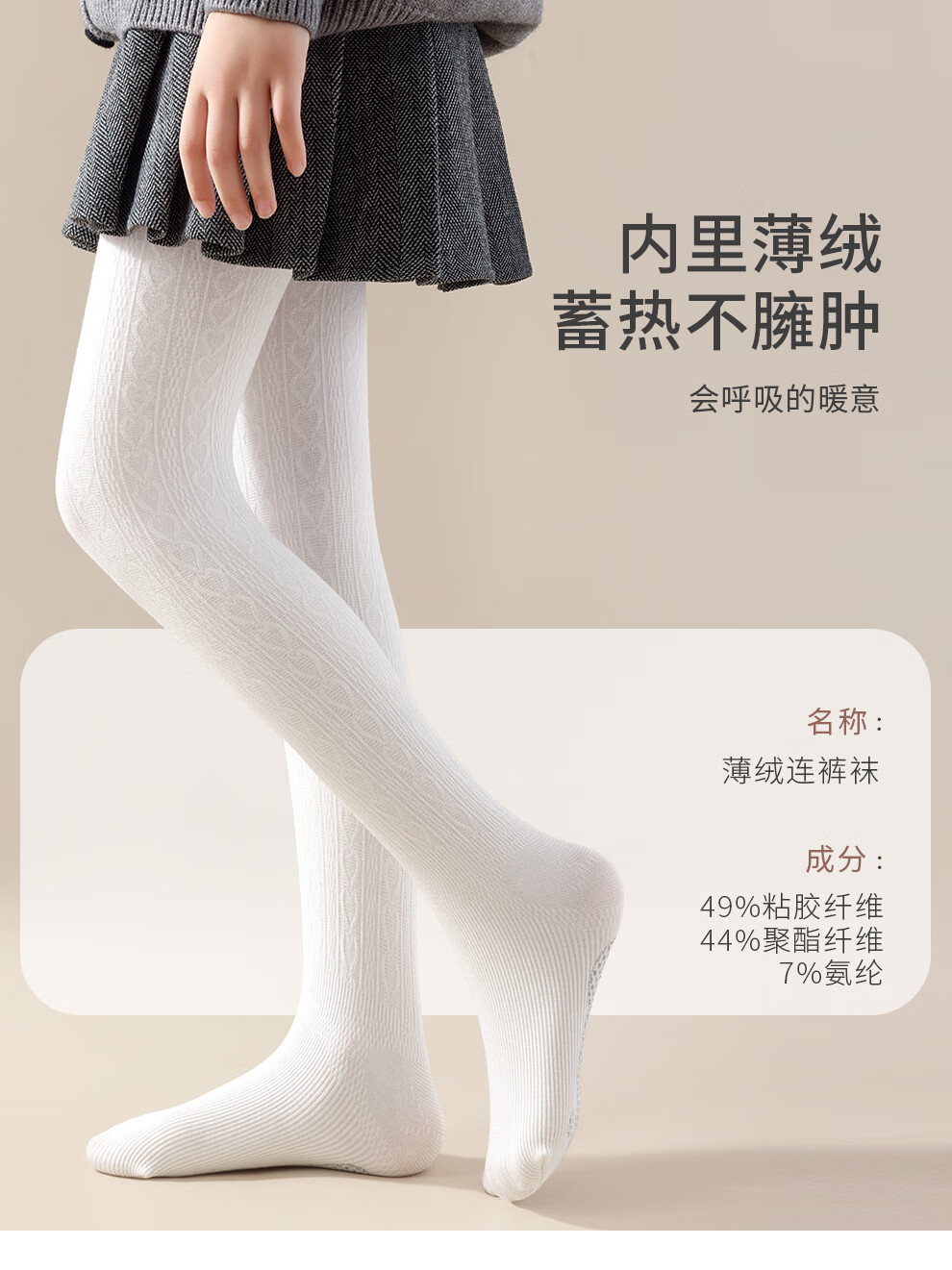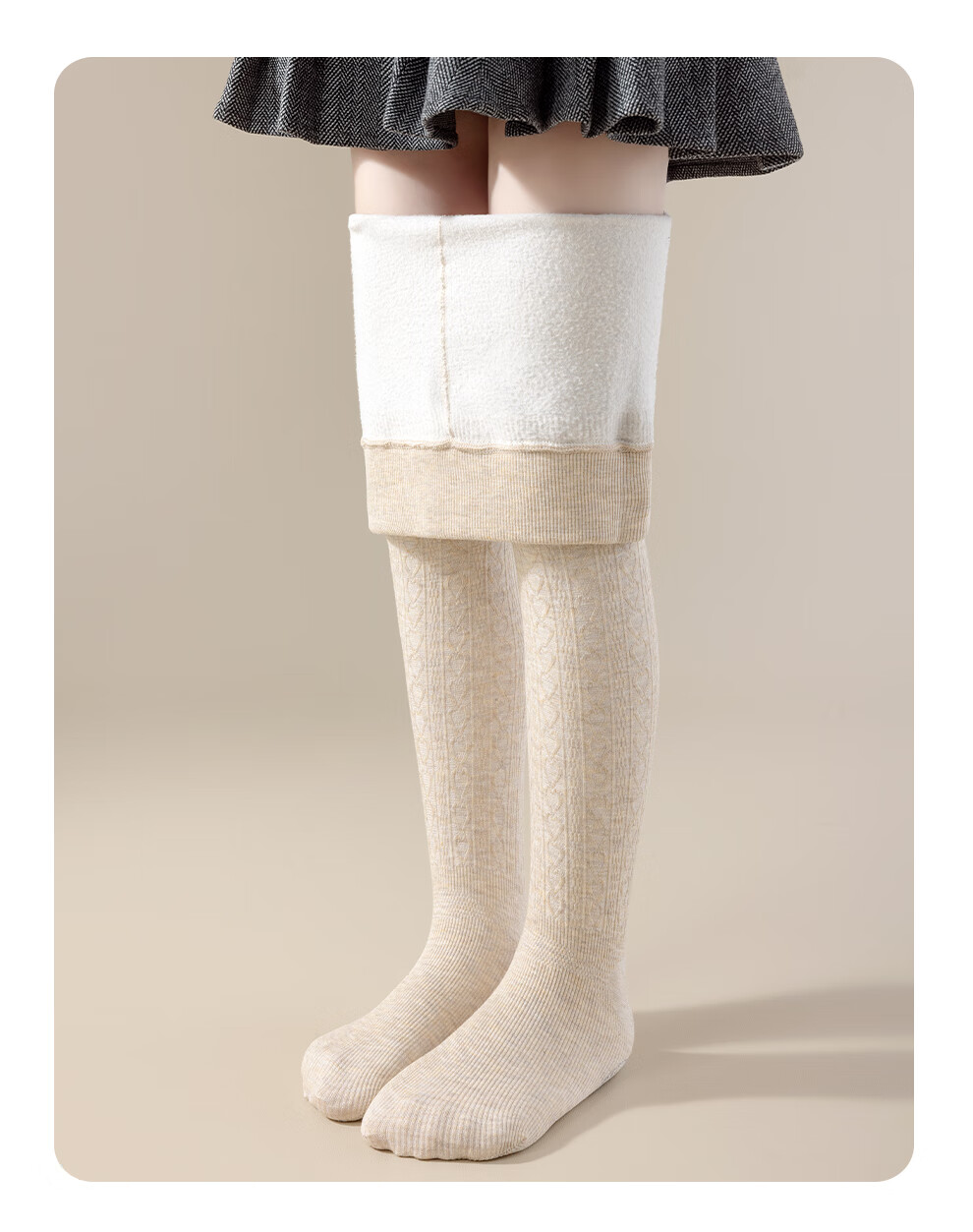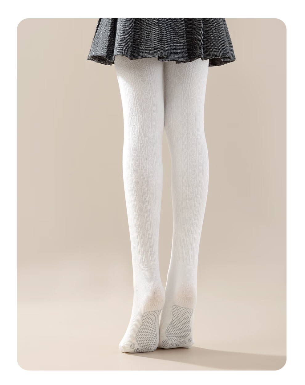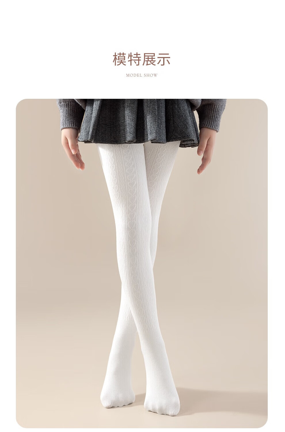 Aiwuge girls dance socks autumn and winter plus velvet pantyhose ballet practice non-slip socks warm outer wear love white L