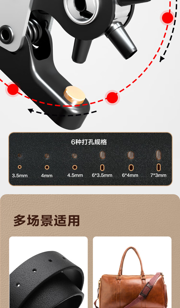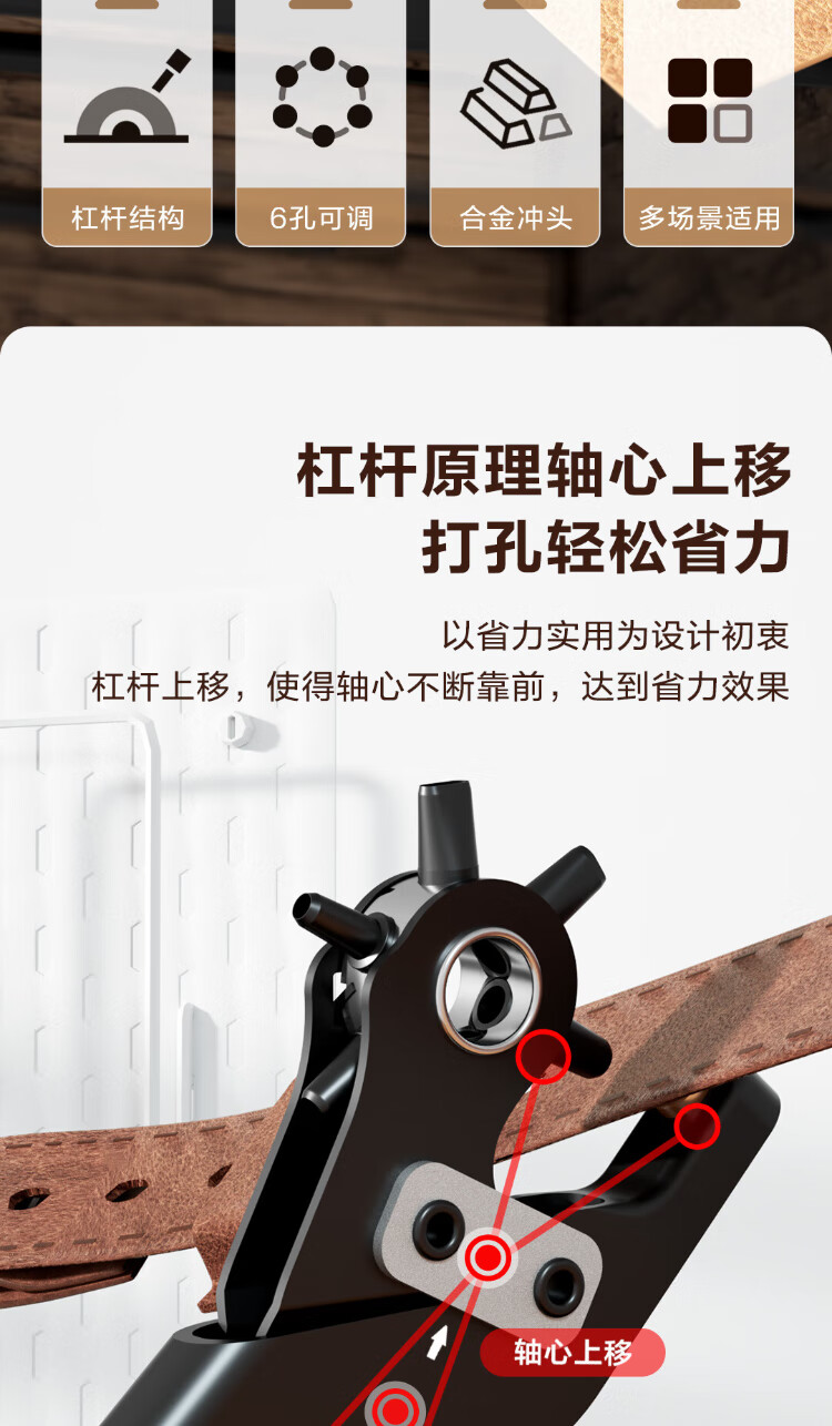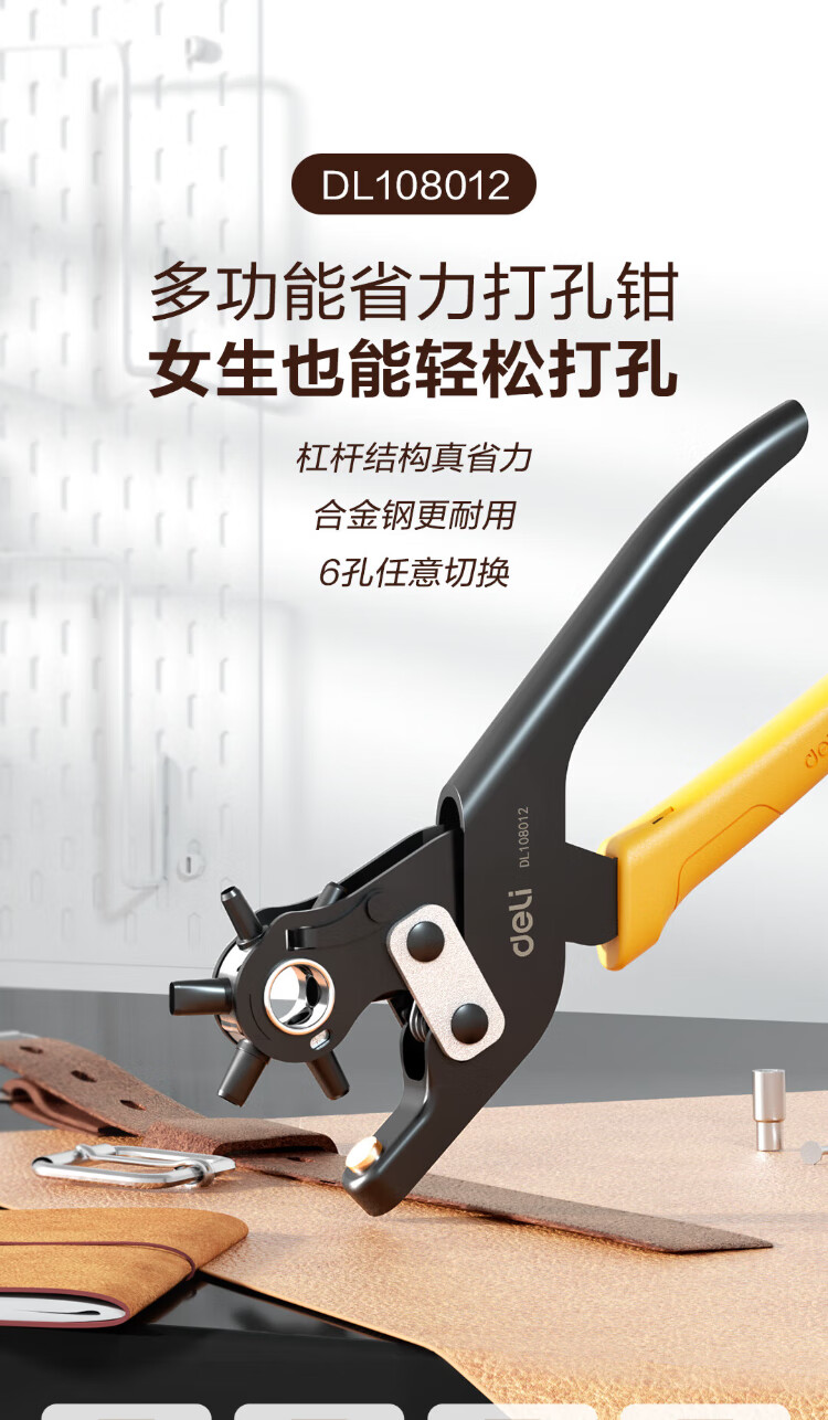 Powerful multifunctional and labor-saving punching pliers with enlarged 6-hole belt, belt, shoes and pants puncher for eye punching and alloy punch
