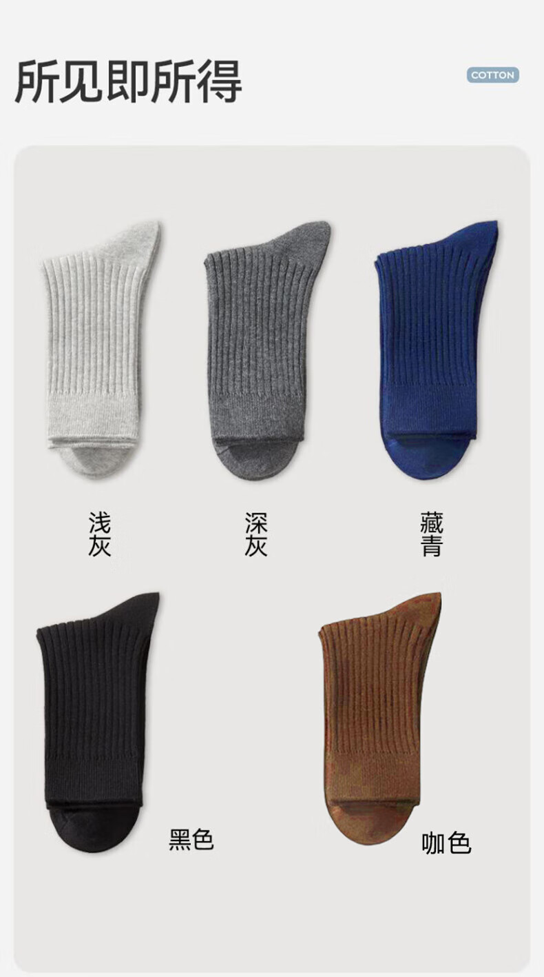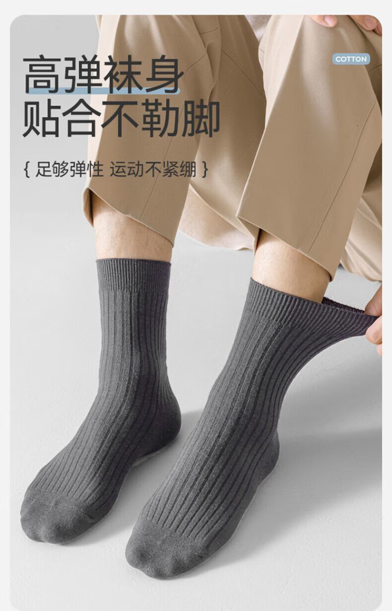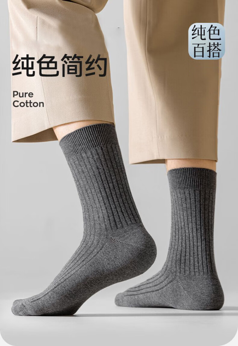Yi cotton socks men's 100% pure cotton medium tube antibacterial stockings spring and autumn antibacterial and deodorant business casual long tube 5 pairs