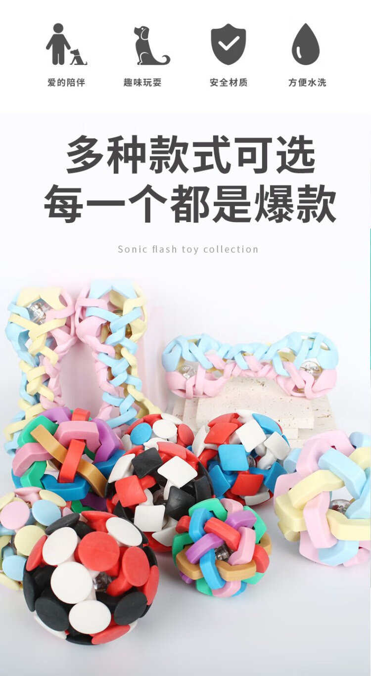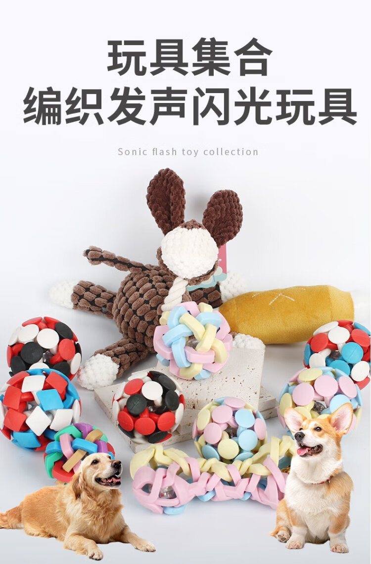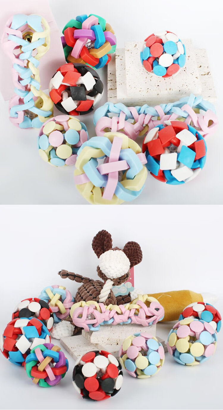 Zanpet Macaron Braided Bell Ball Dog Toy Ball Relief Teething Toy Pet Interactive Training Supplies