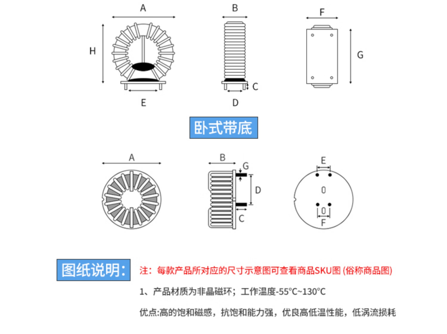 Hanshi Hengye amorphous magnetic ring inductor ring R6123-X227 13MH 2.24 lines horizontal common mode with bottom/2 pcs