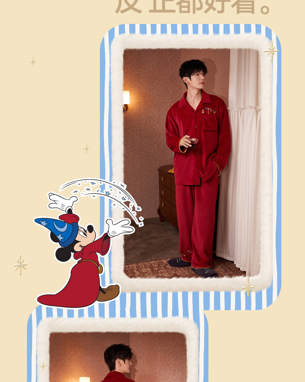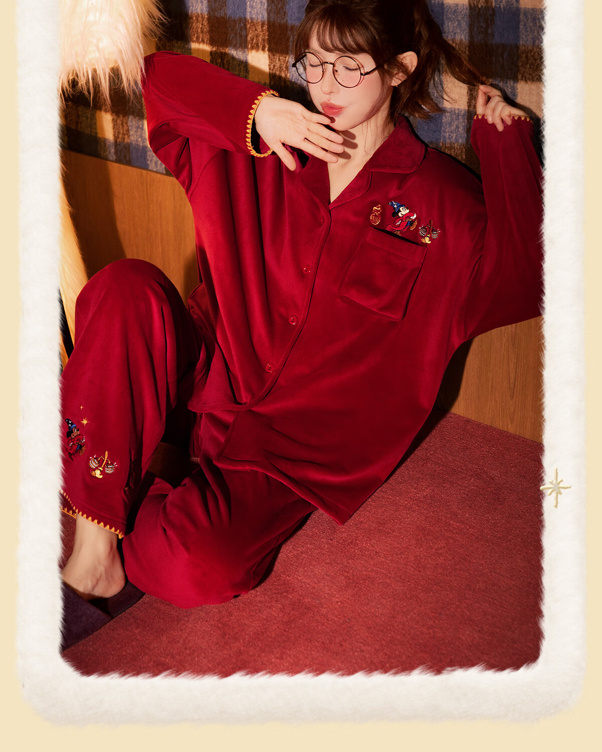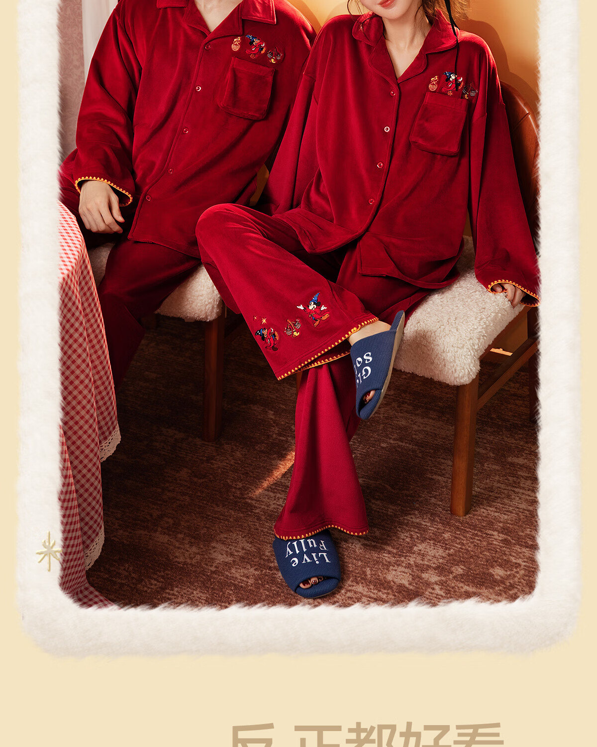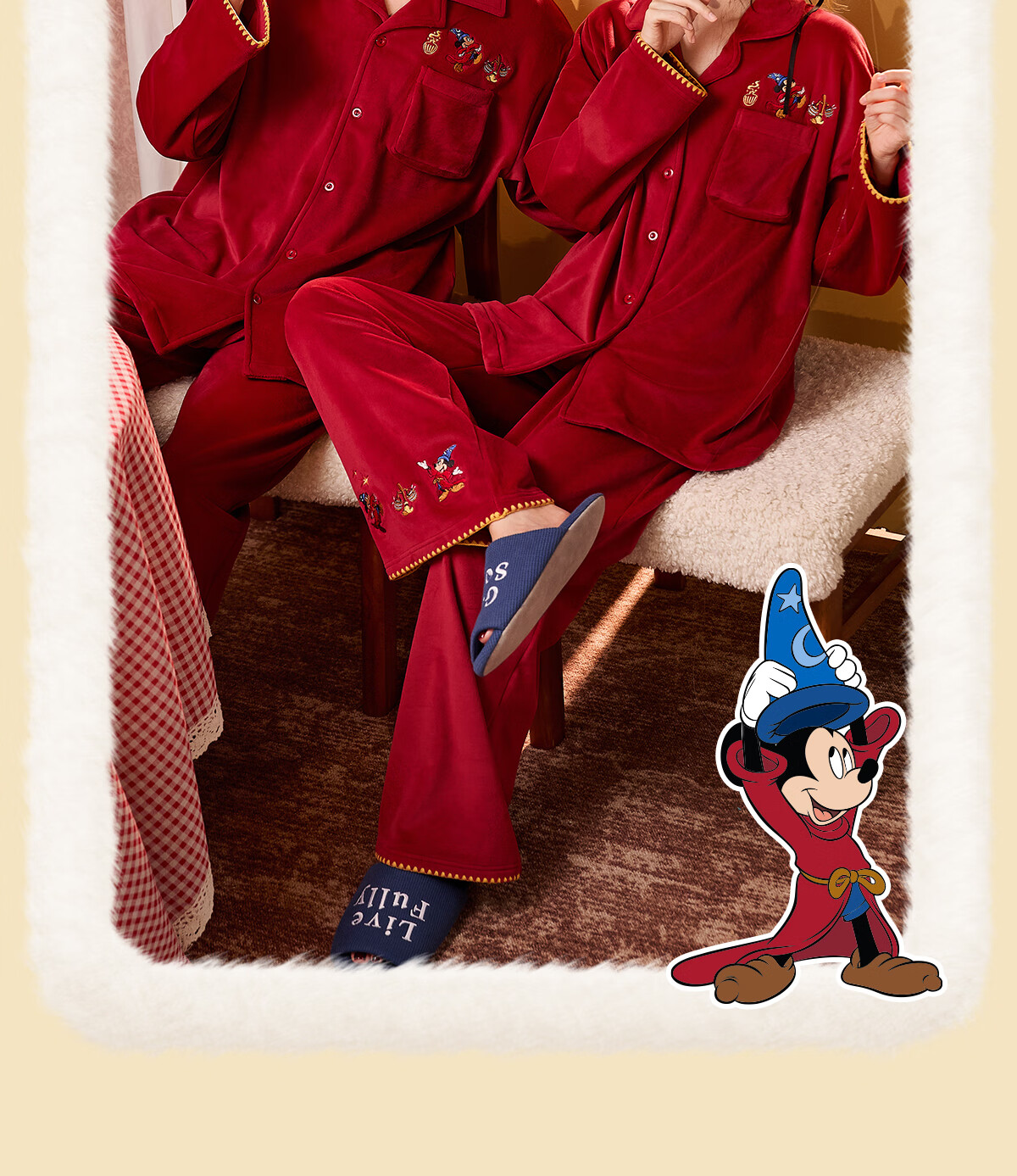 Gongdie thermal storage type Disney Mickey red couple pajamas for women warm island velvet wedding home clothes for men