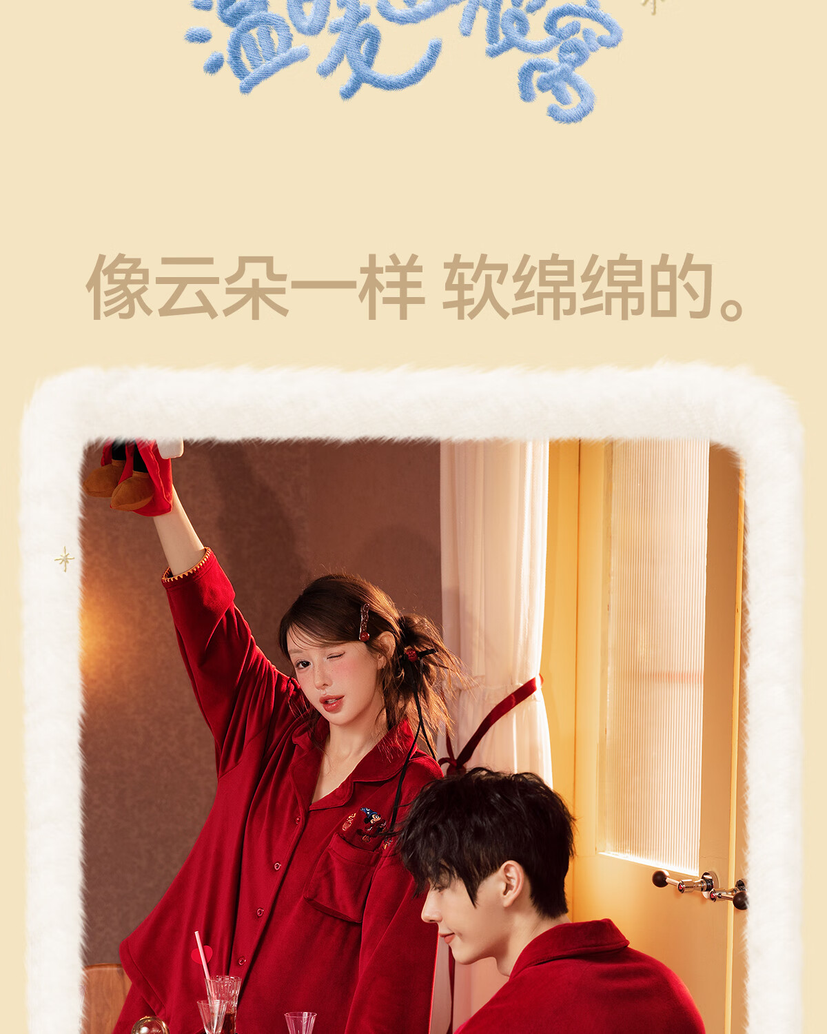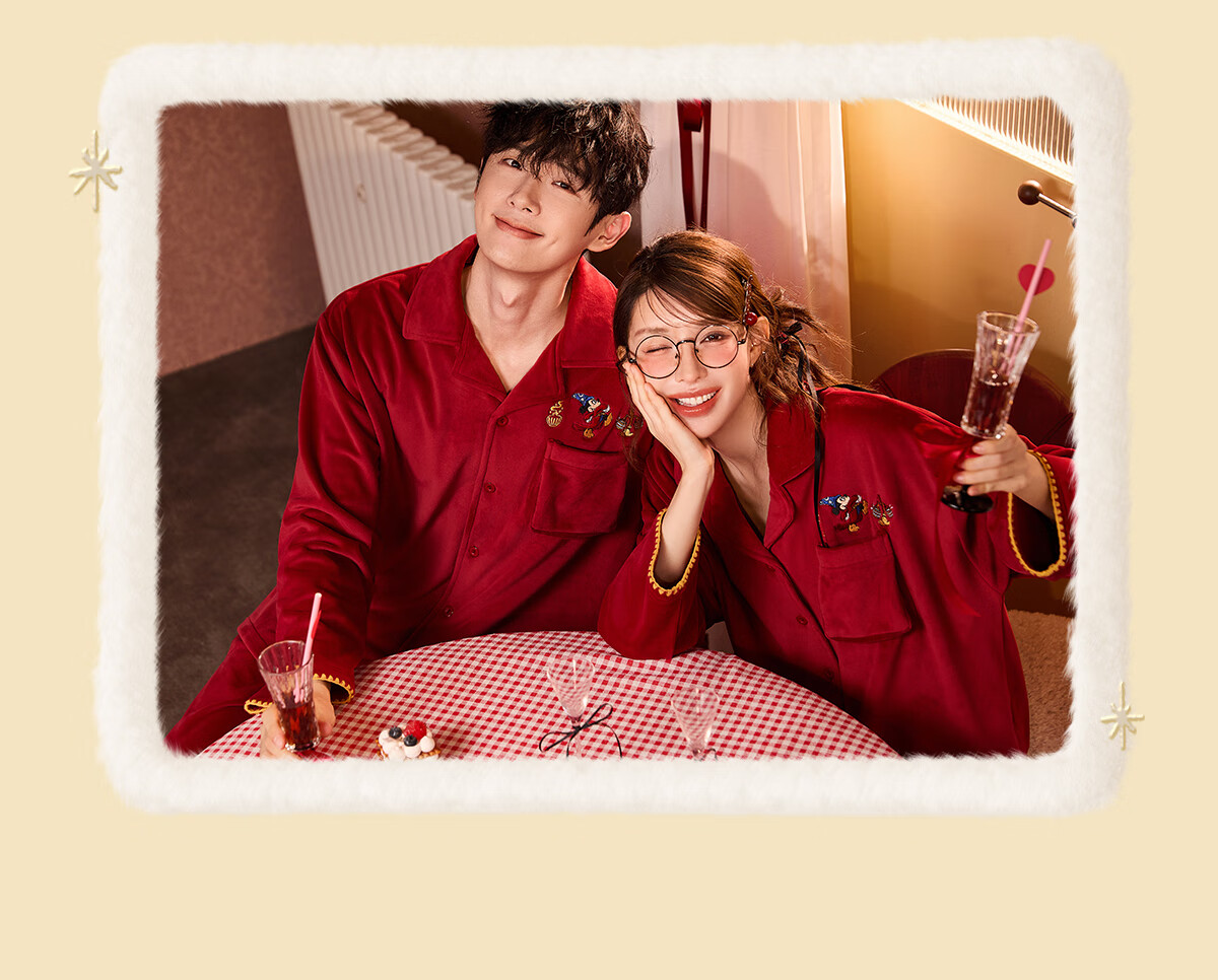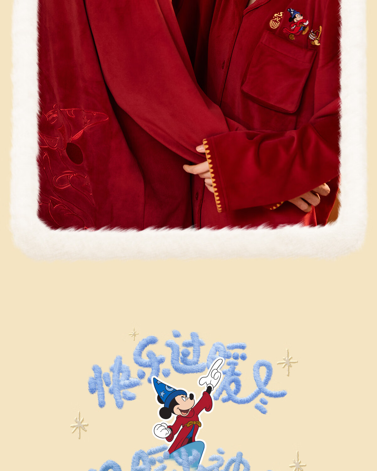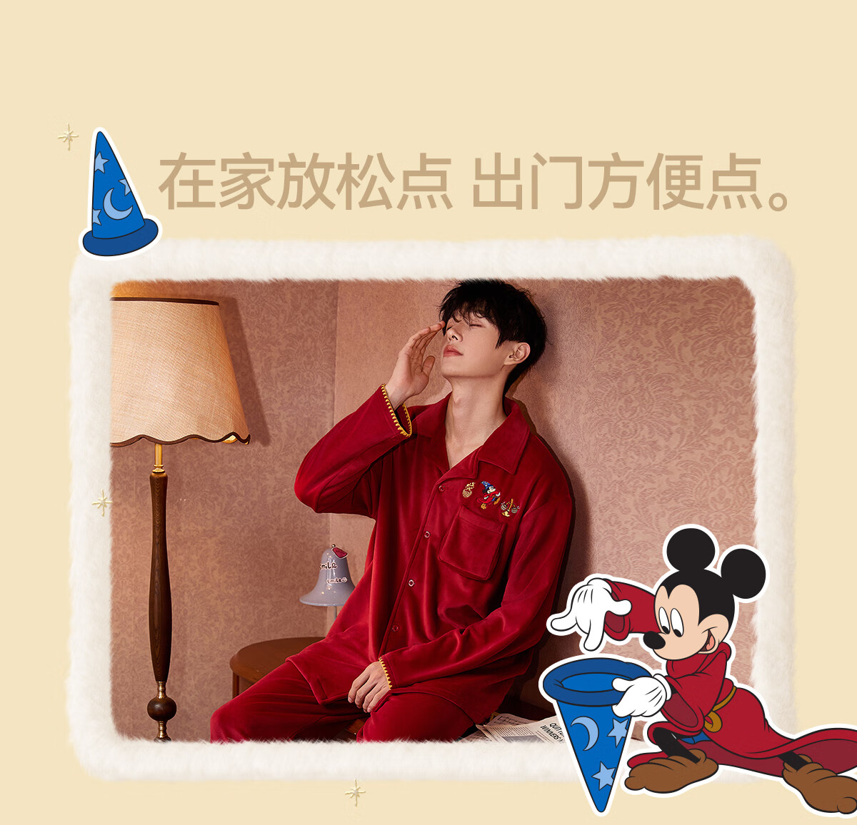 Gongdie thermal storage type Disney Mickey red couple pajamas for women warm island velvet wedding home clothes for men
