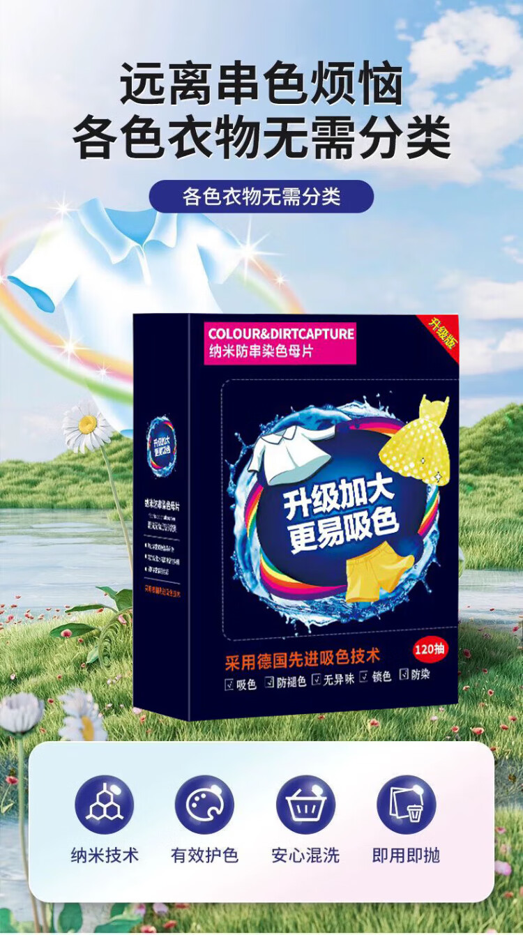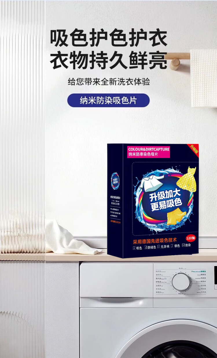 Wanjuyi anti-color cross-color laundry tablets, anti-dye tablets, anti-stain towels, color master sheets, color-absorbing paper for washing machines, 5 boxes