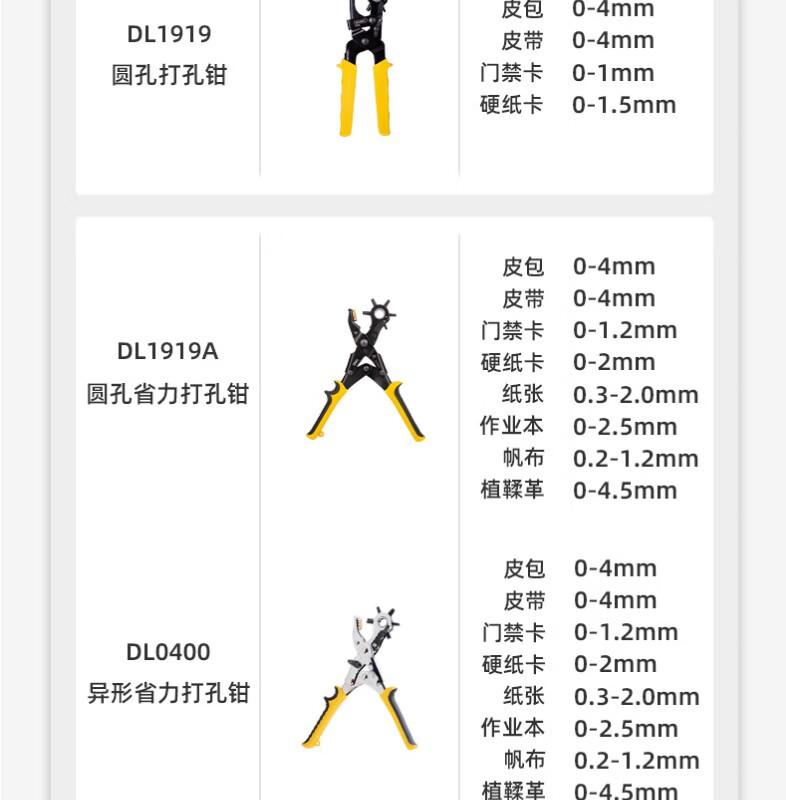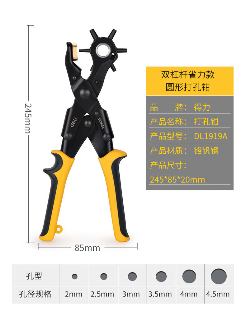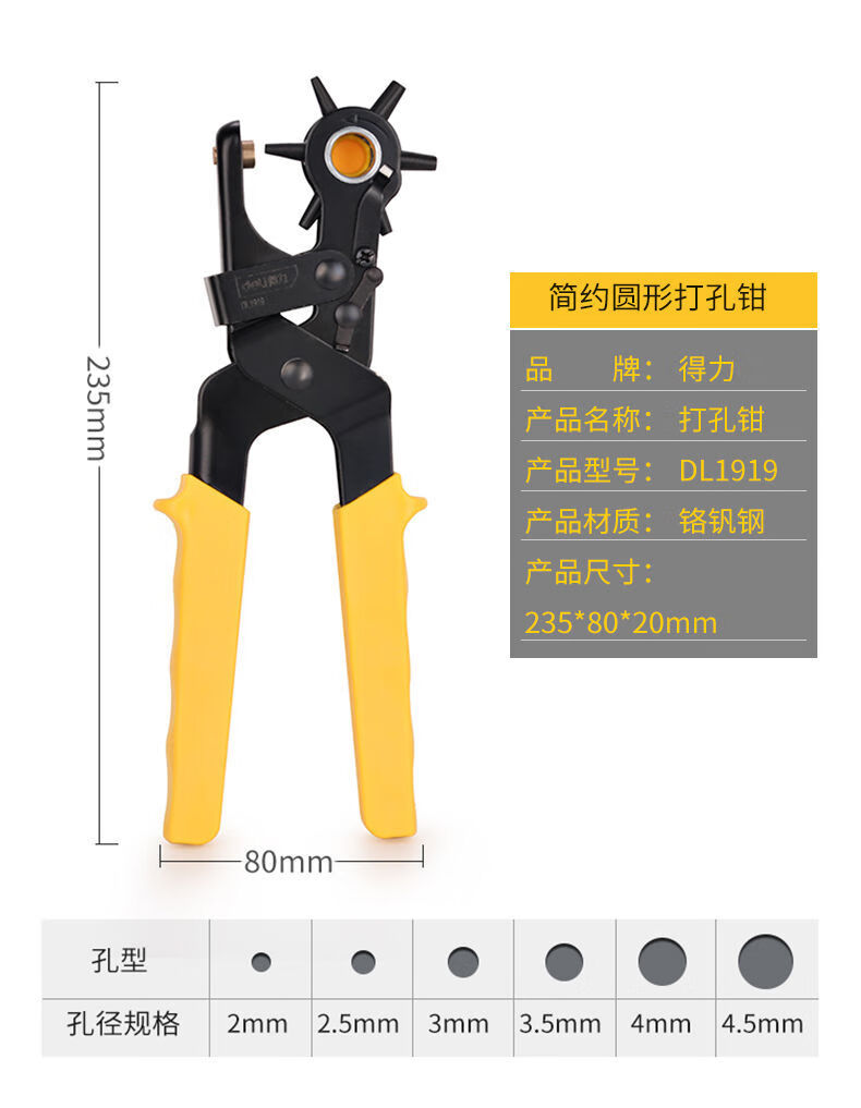 Deli belt punch household small hole punch belt punch pliers punch artifact watch bag eye punch light handle round punch pliers DL1919C
