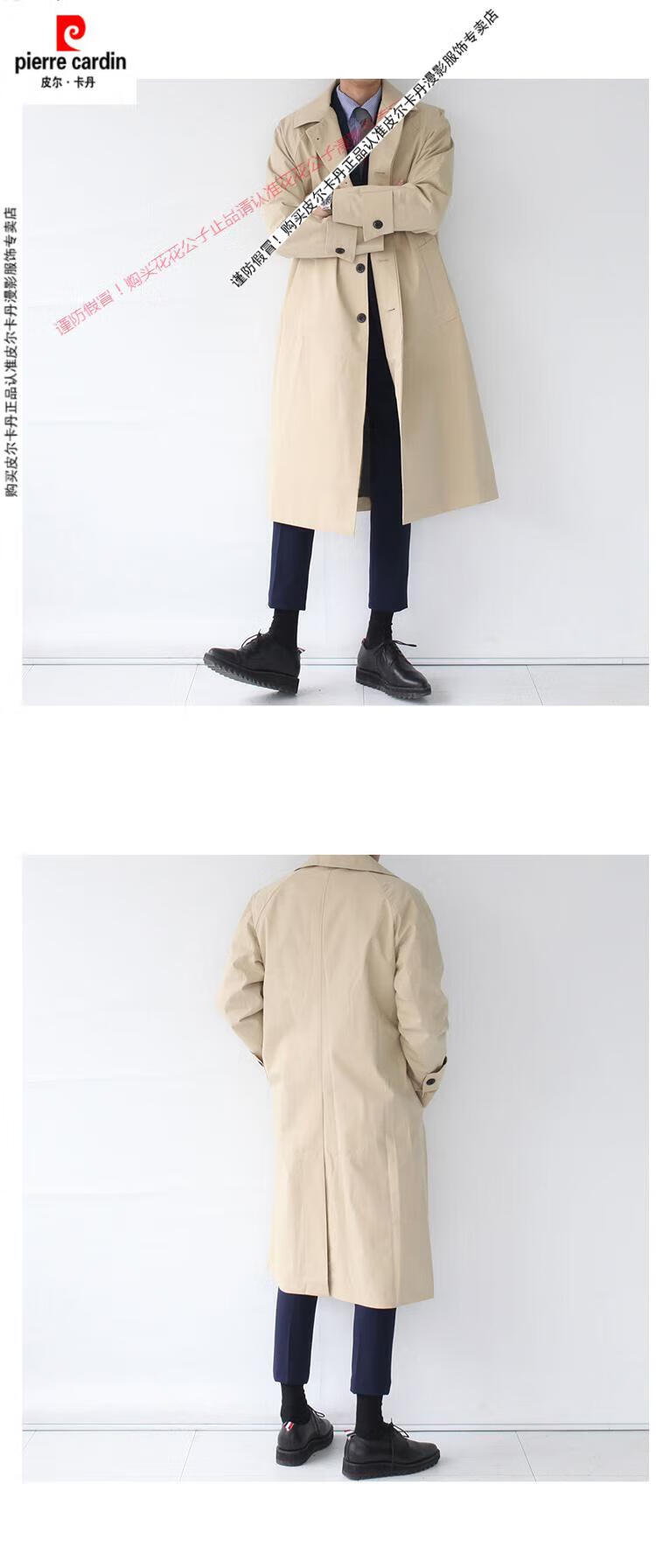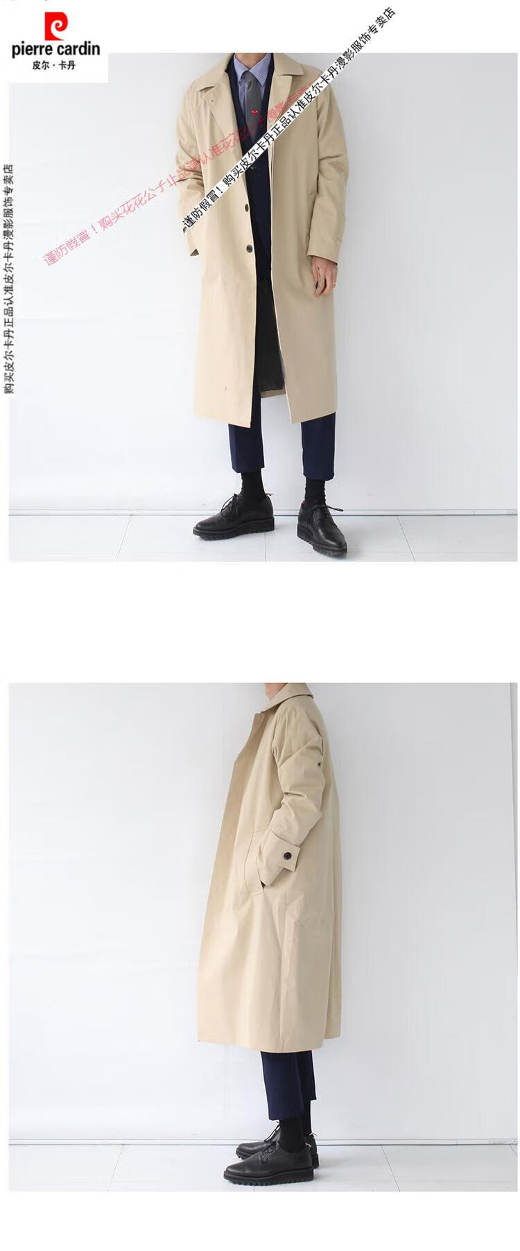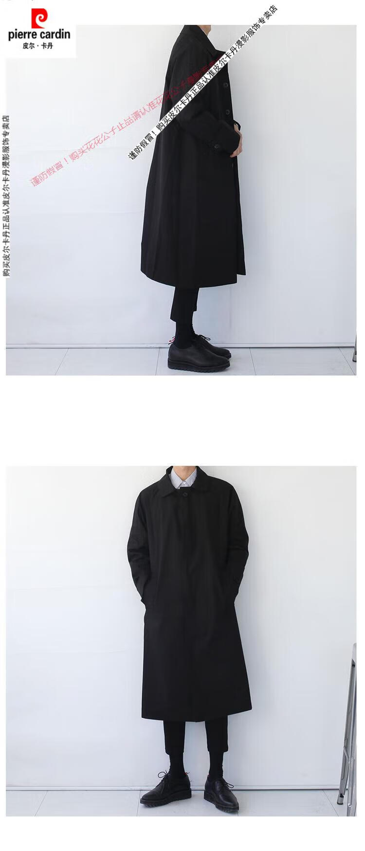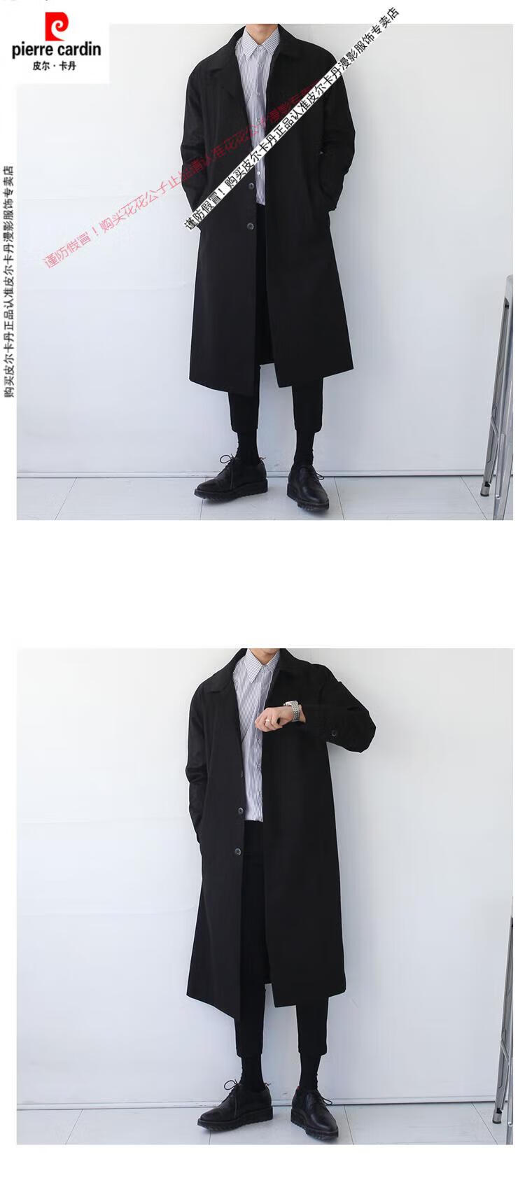 Pierre Cardin (Pierre Cardin) new super long windbreaker long knee-length Korean style thin coat men's loose trendy brand extended mid-length coat black XL 135--150Jin Jin equals 0.5 kg