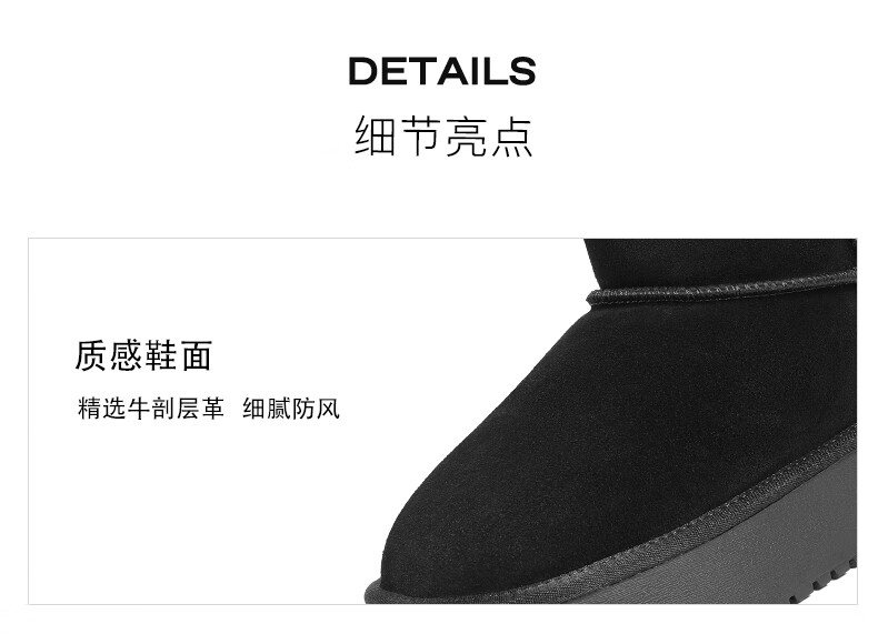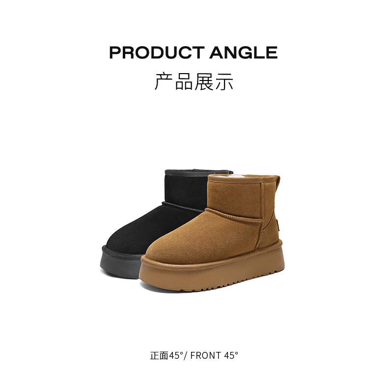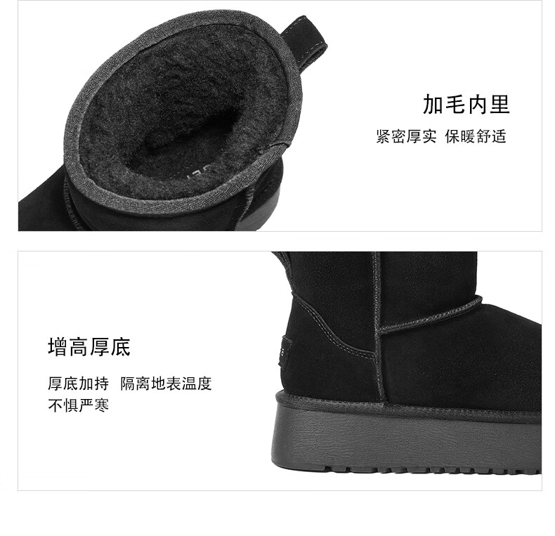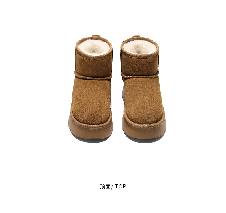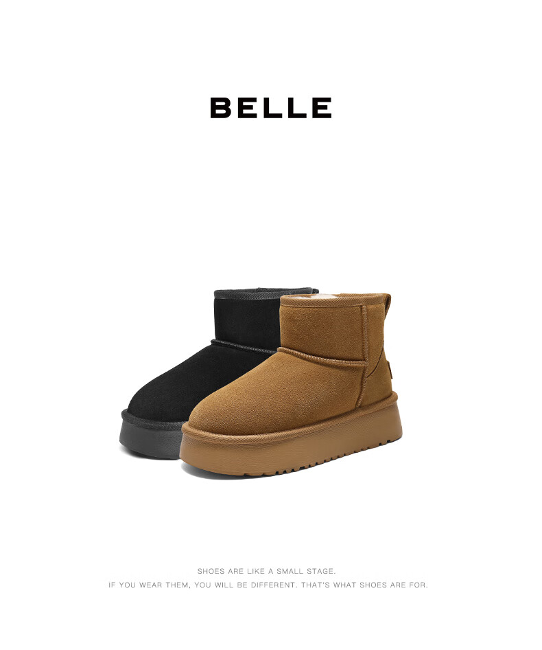 Belle thick-soled cold-proof snow boots 2025 winter new women's thickened warm velvet wool chimney short boots pine cone brown 38