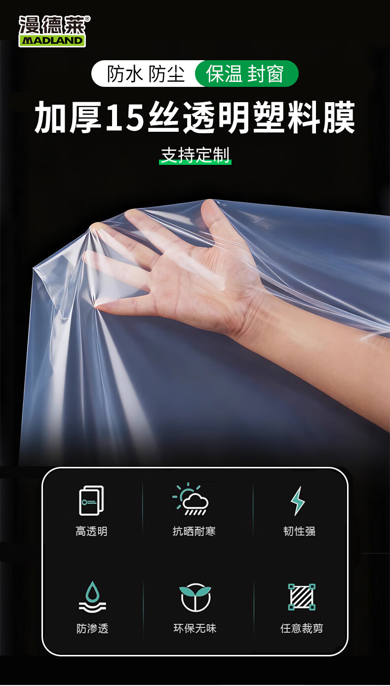 Mandelai plastic sheet window sealing greenhouse plastic film waterproof cloth transparent thickened film plastic paper mulch film breeding insulation 2*3m