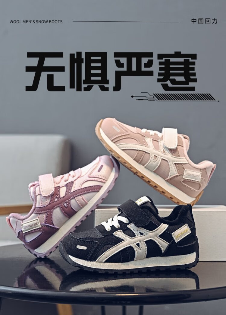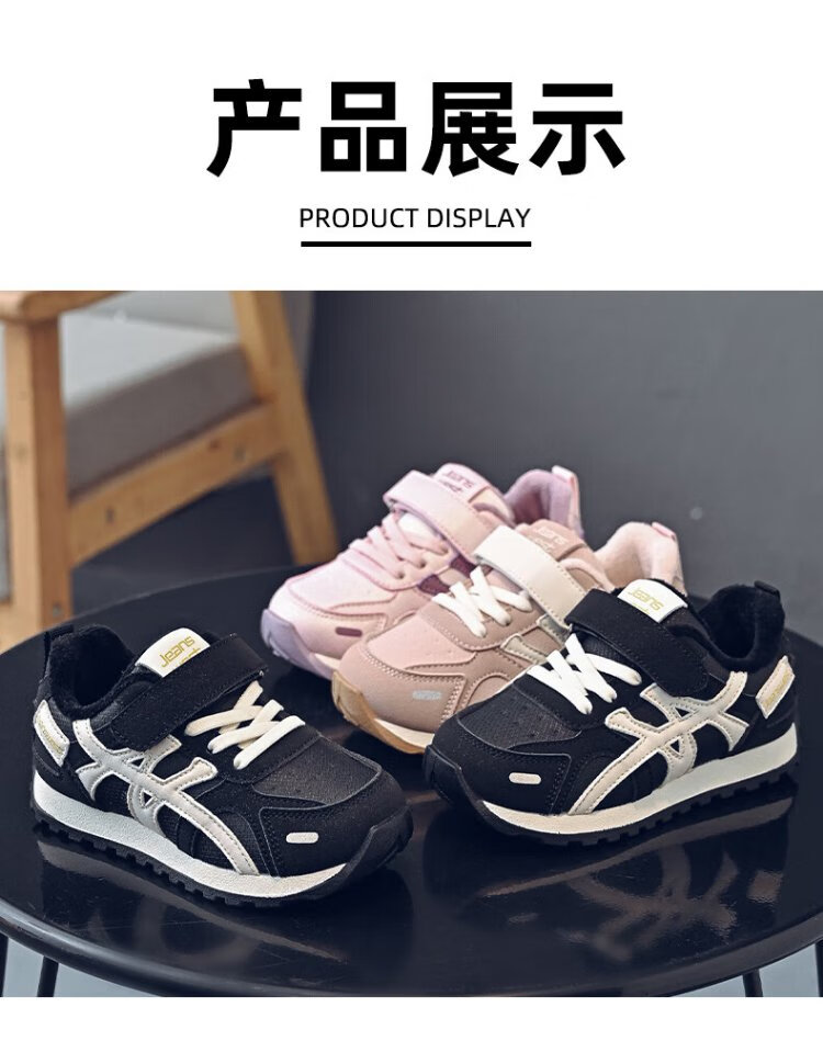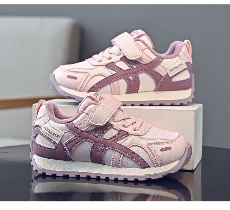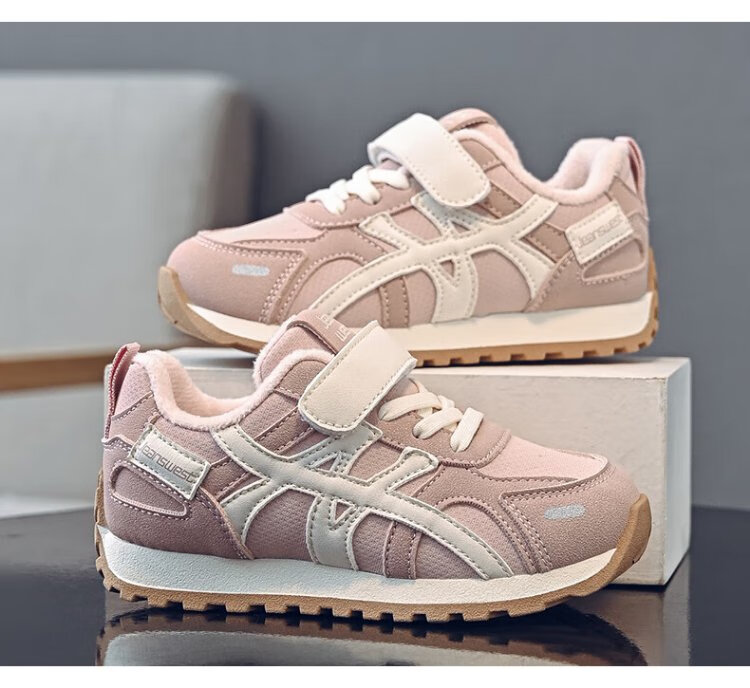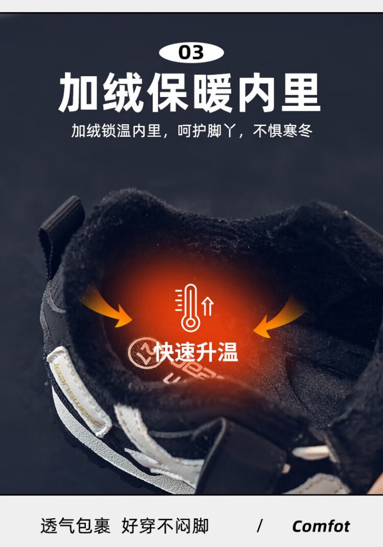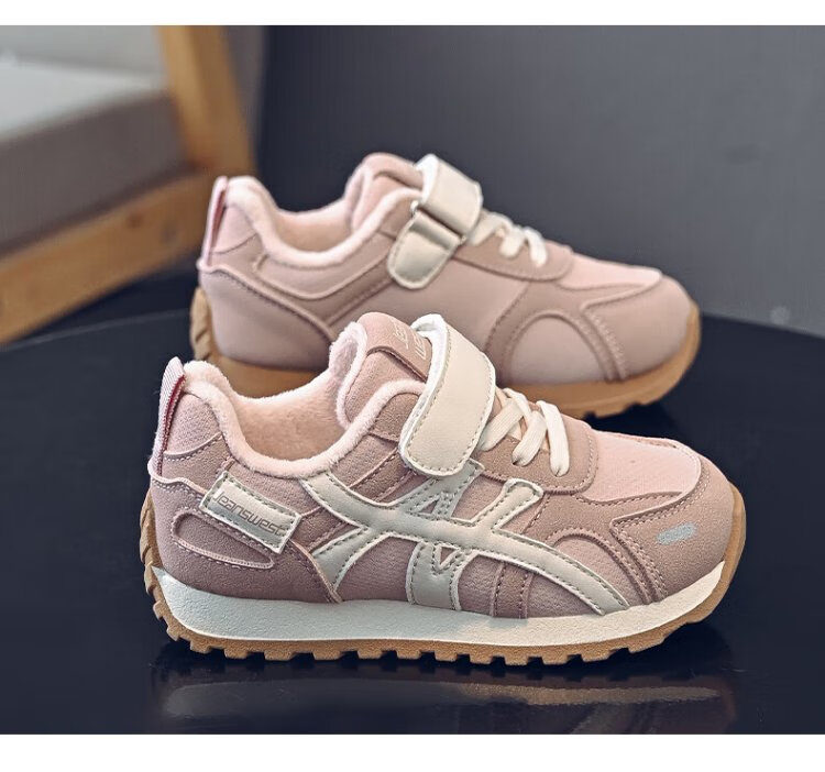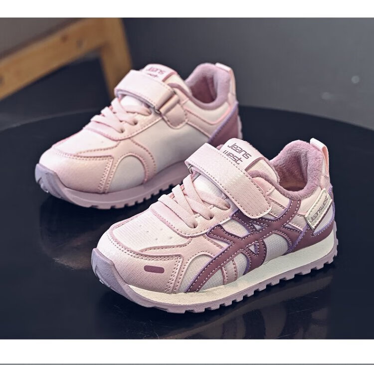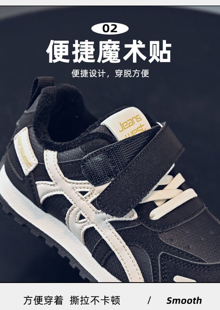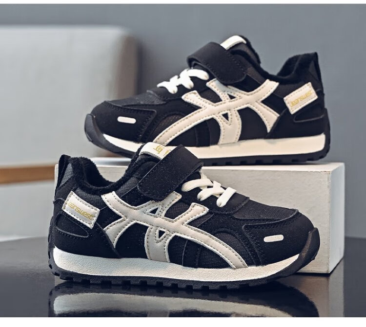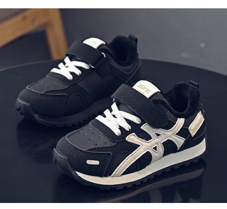Jeanswest boys' autumn and winter velvet sports cotton shoes, middle and large children's retro running shoes, campus casual shoes C1A028 black/meter 33