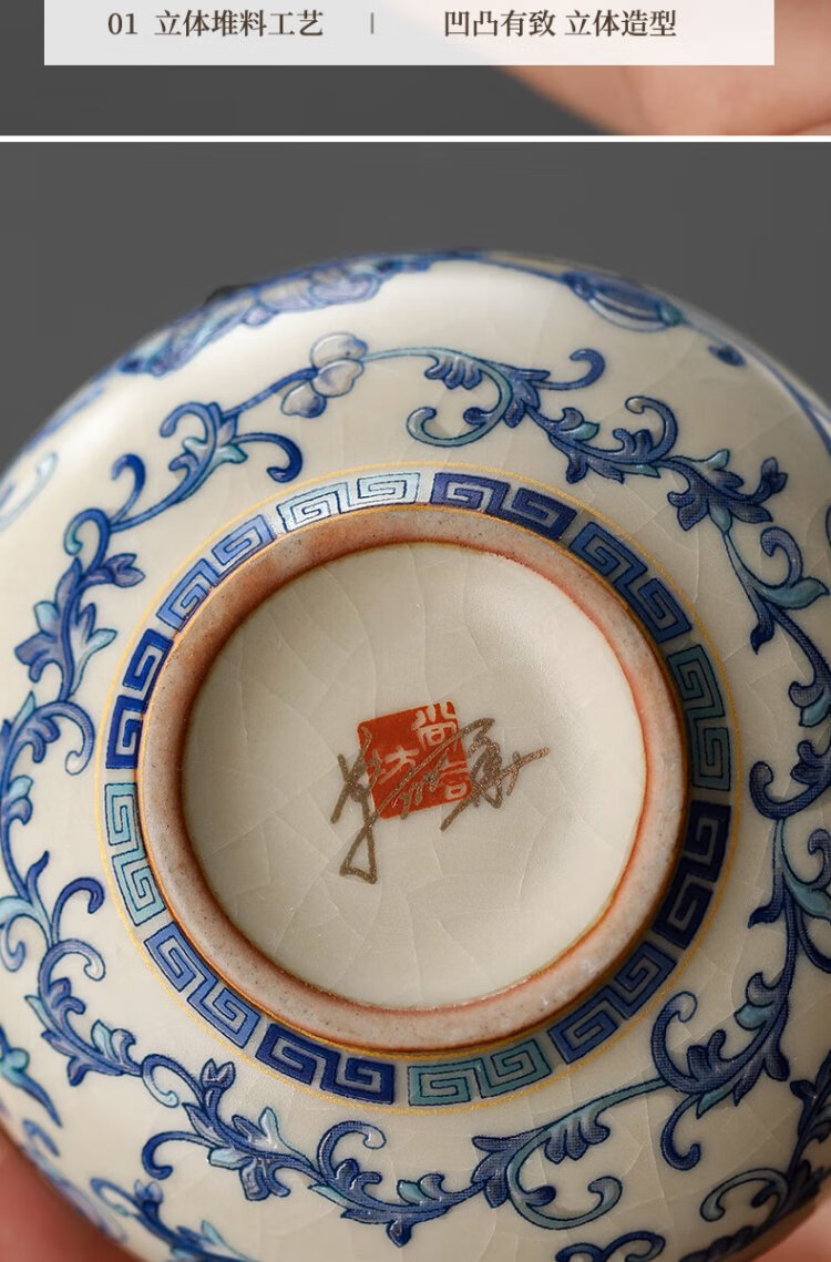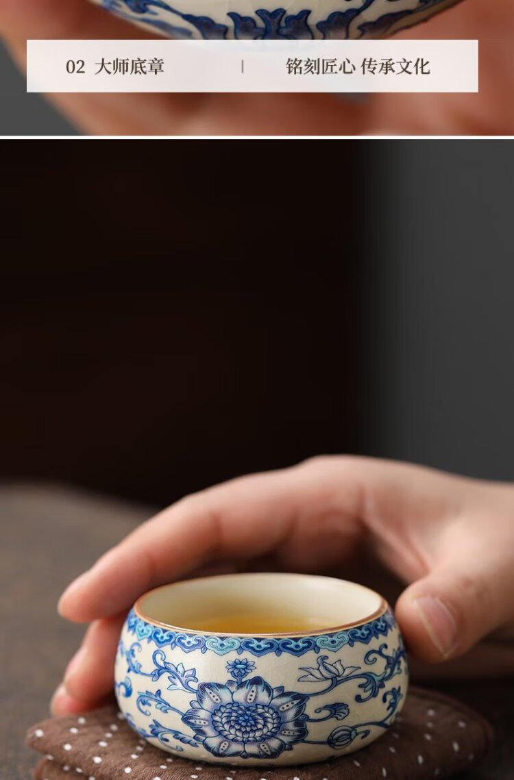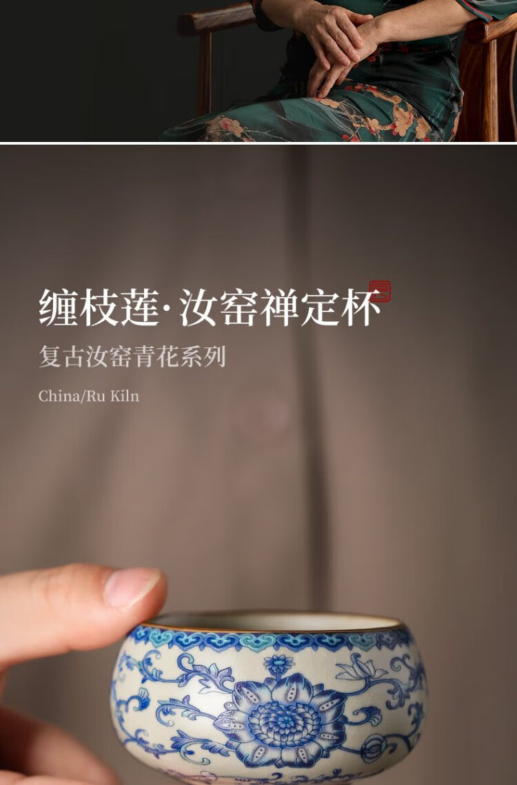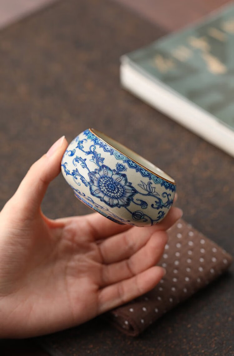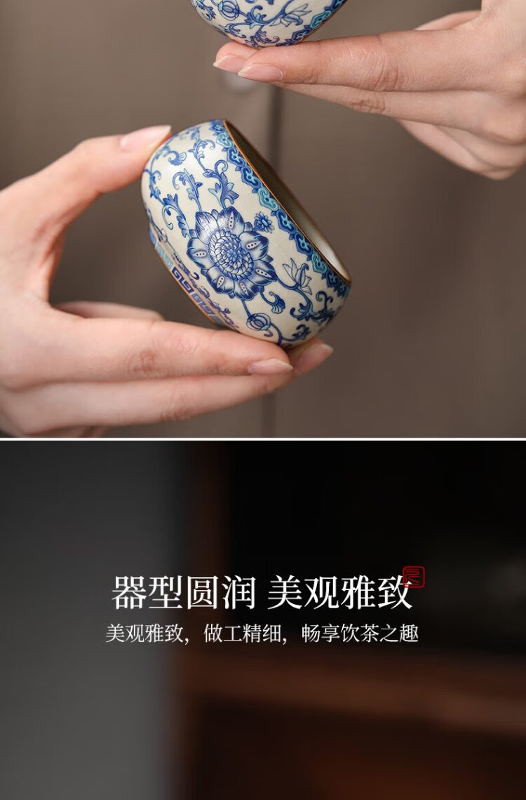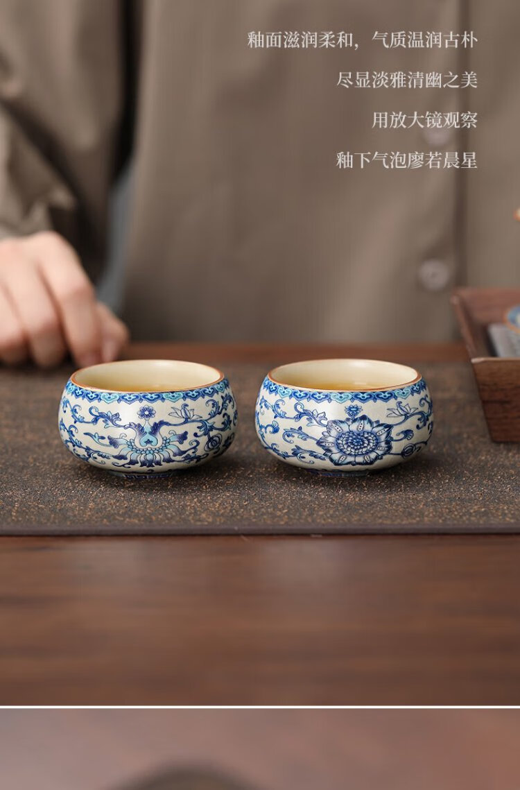 Teacher Shan Lihua’s Master Cup Personal Tea Cup Small Kung Fu Tea Cup Blue and White Porcelain Ru Kiln Zen Meditation Cup