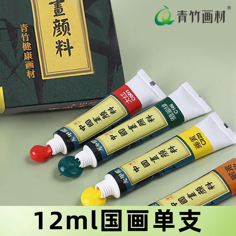 Green Bamboo Painting Material (CHINJOO) Chinese Painting Pigment Single Chinese Painting Garcinia White Titanium White Cyanine Large Capacity Special Dye Formaldehyde Free Professional 12ml Ink Painting Fine Painting Black/Single