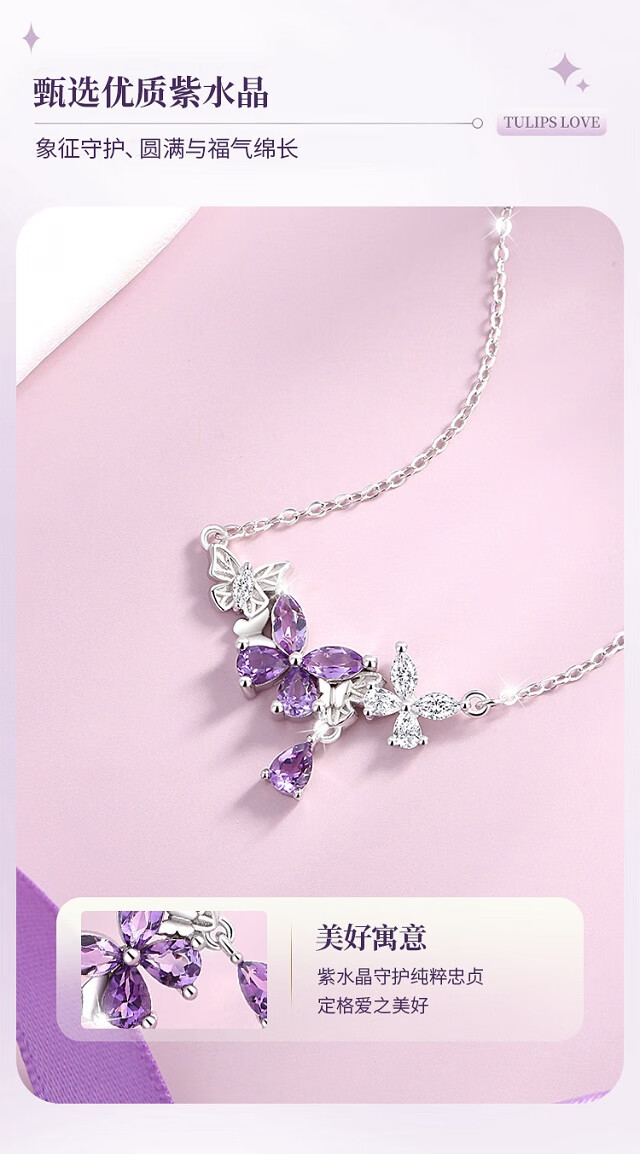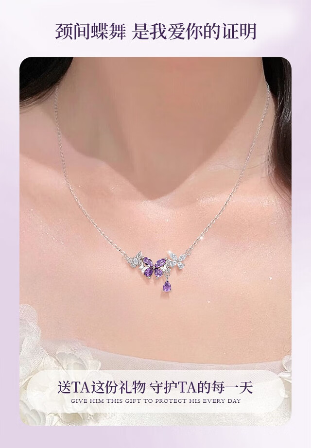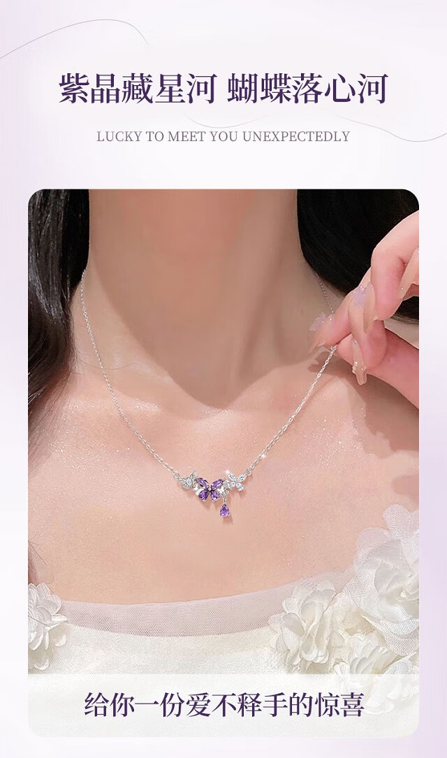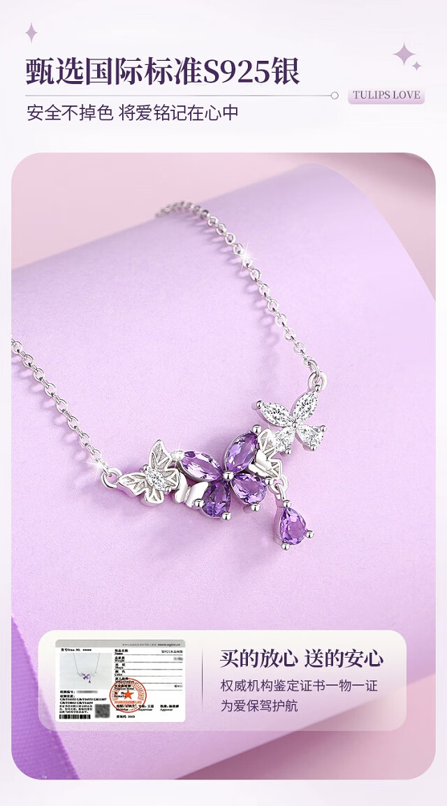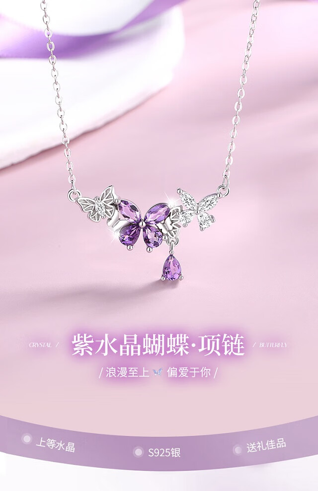 Chinese jewelry (Sino gem) butterfly as an oath silver necklace women's silver pendant light luxury niche high-end birthday gift for girlfriend and wife