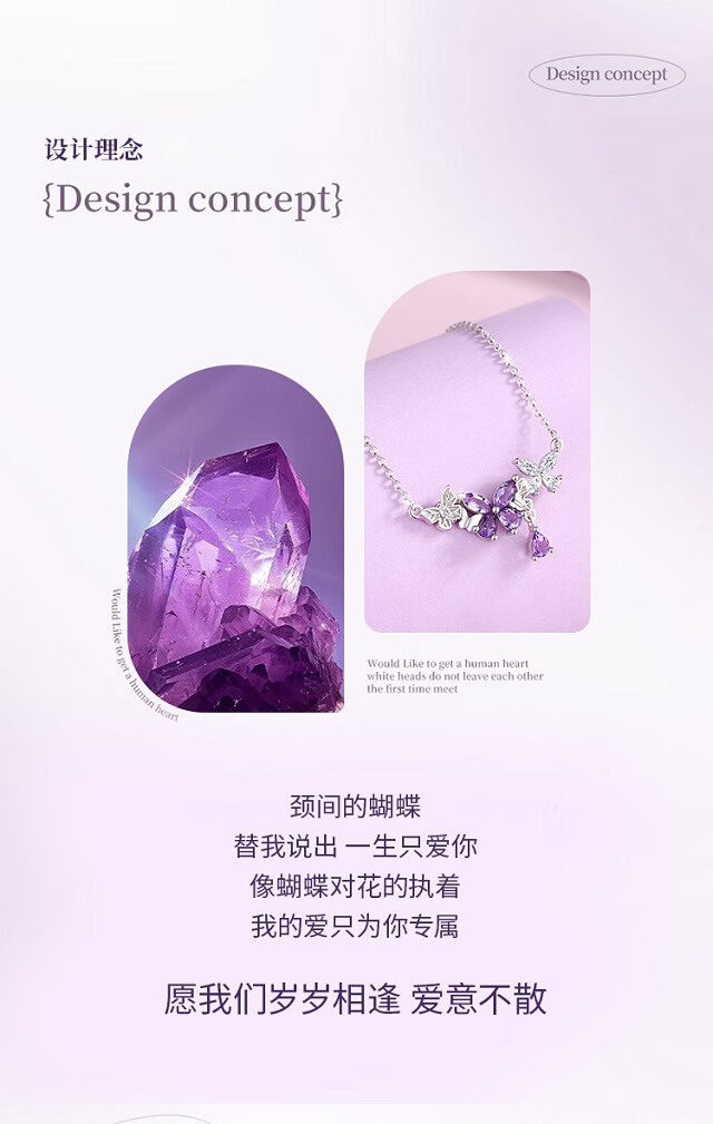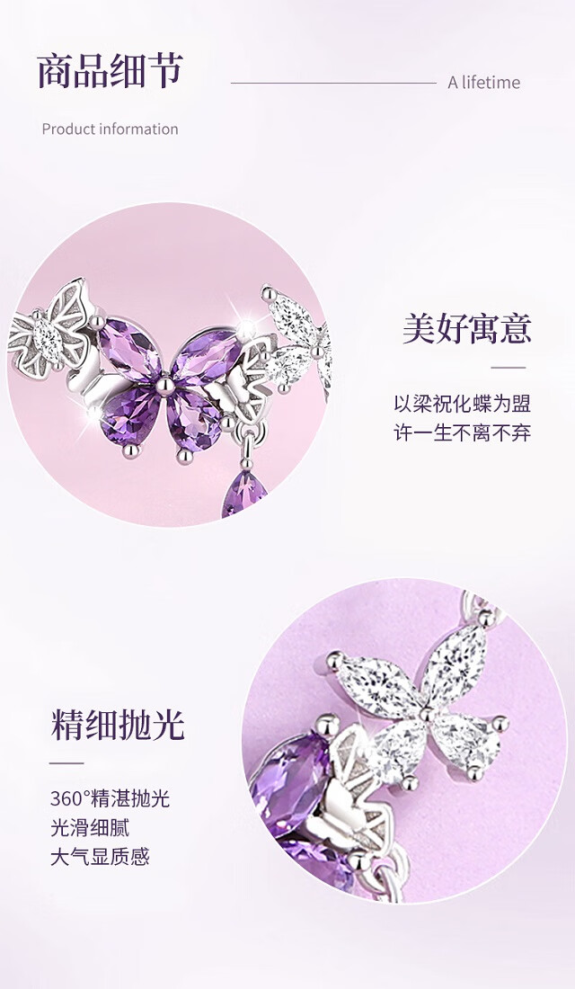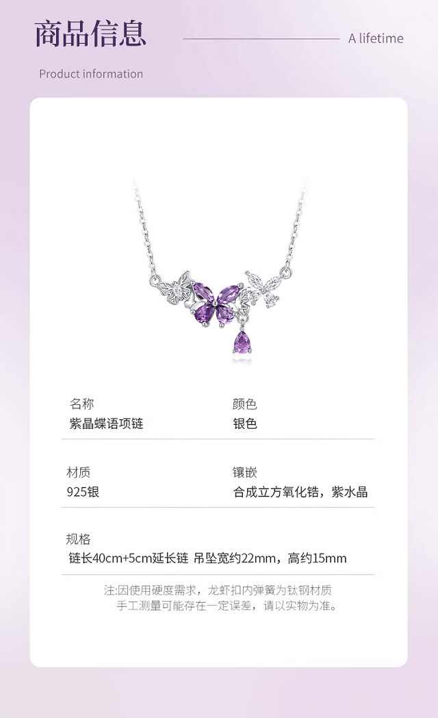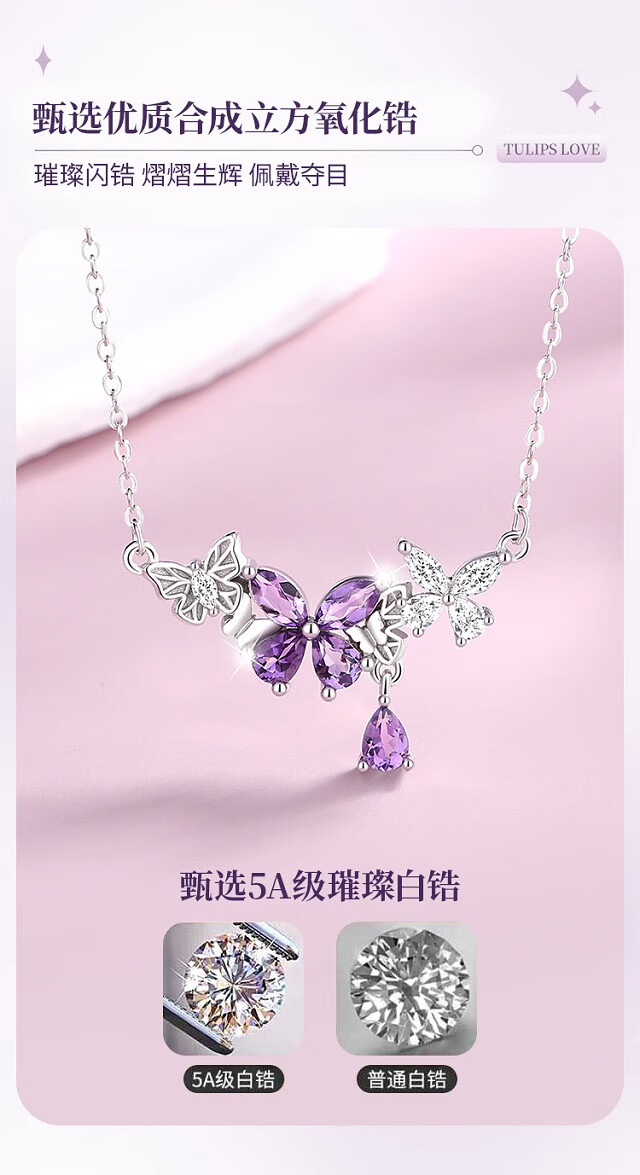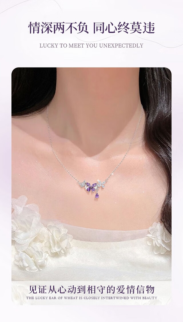 Chinese jewelry (Sino gem) butterfly as an oath silver necklace women's silver pendant light luxury niche high-end birthday gift for girlfriend and wife