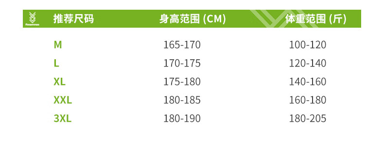 China (cm) 165 / 88-90 170 / 96-98 175 / 108-110 180 / 118-122 185 / 126-130