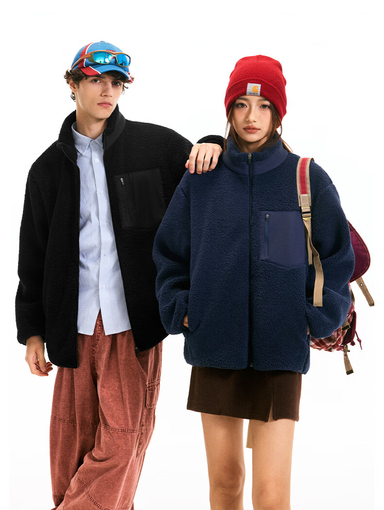 Fingercroxx it jacket men's autumn and winter new polar fleece warm jacket Korean trendy versatile cardigan navy blue 3XL