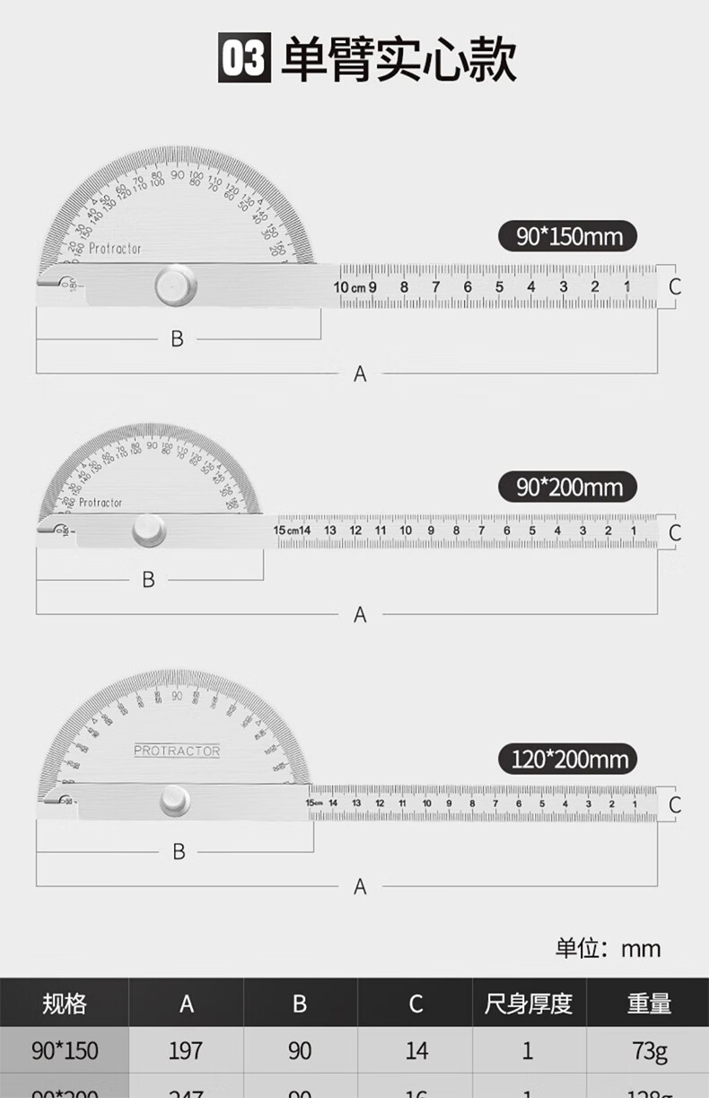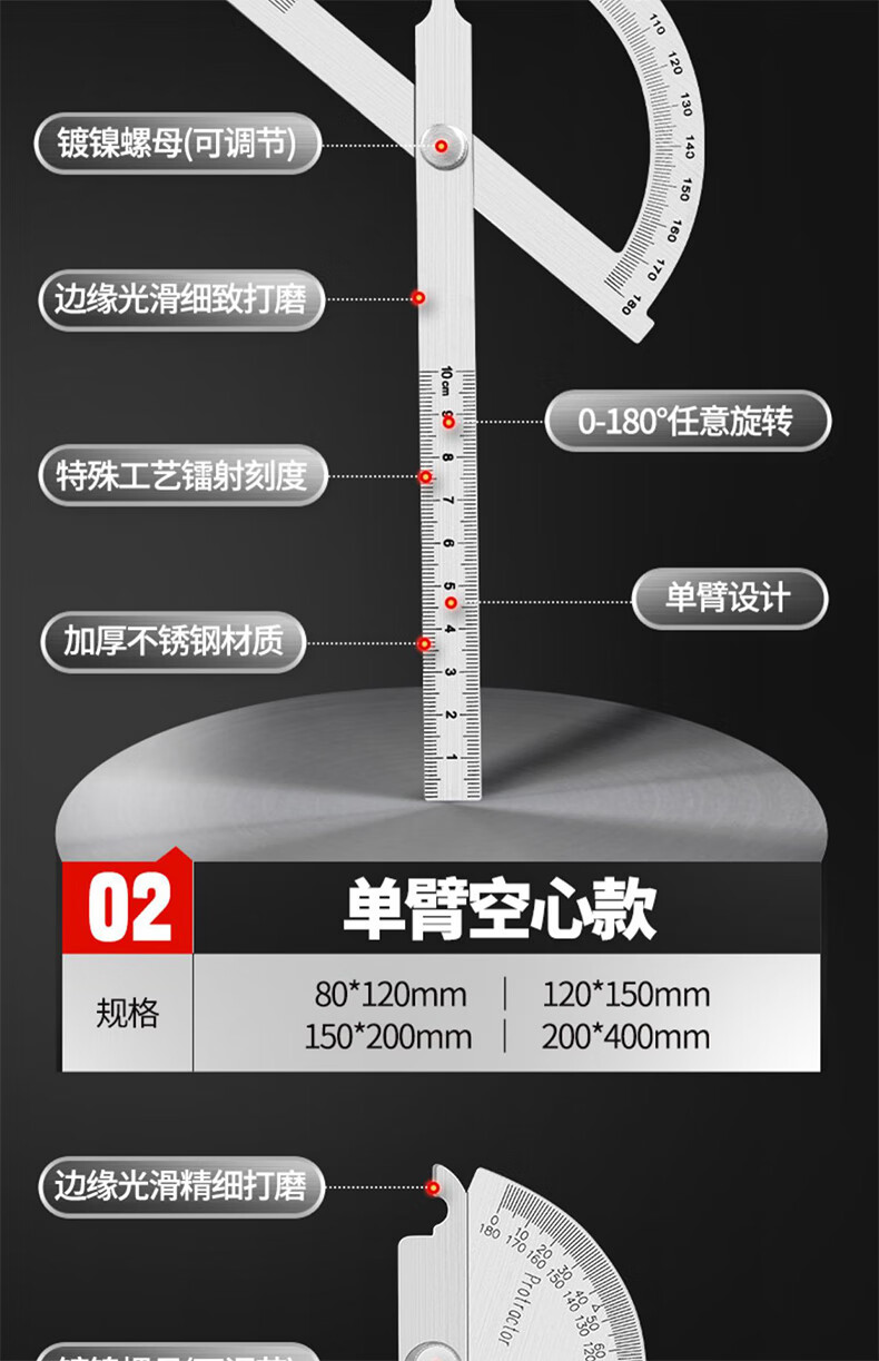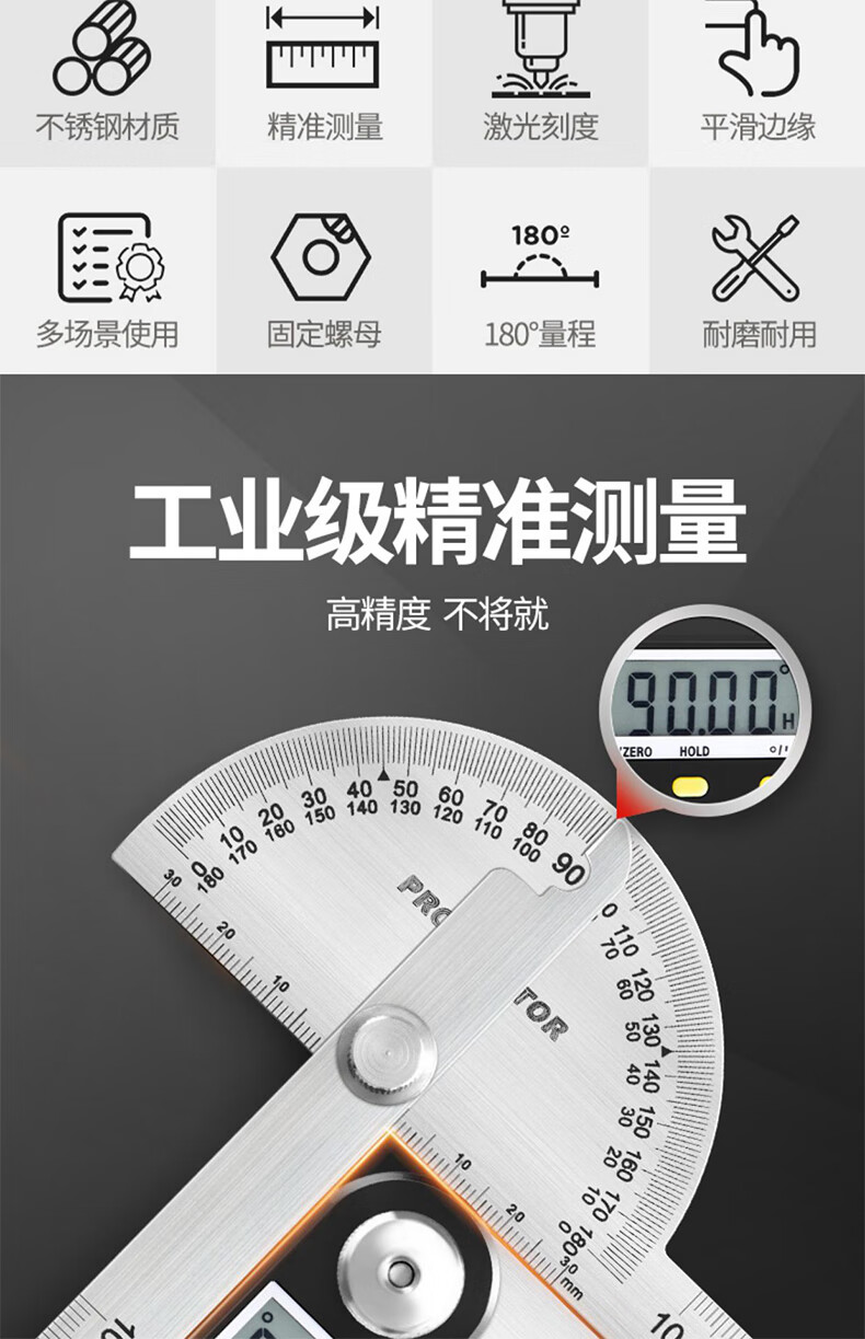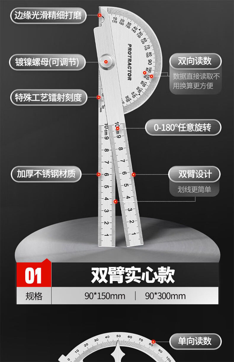 DITRON high-precision angle ruler universal energy angle meter 360-degree angle measurement ruler angle gauge single-arm thickened solid model 90mm*200mm