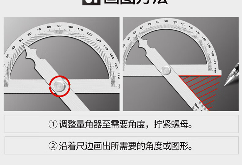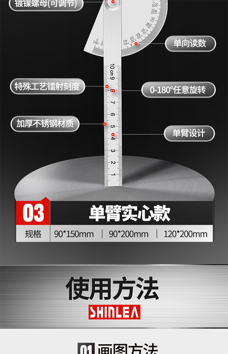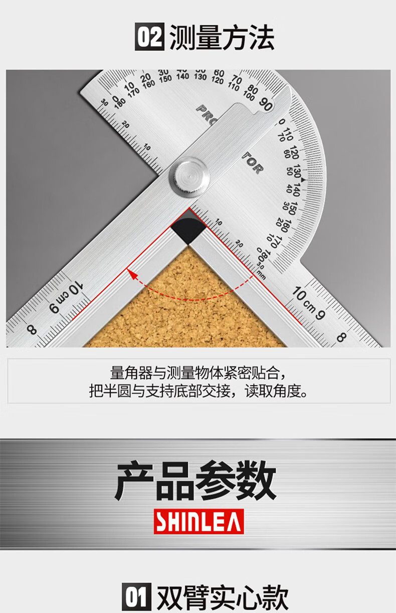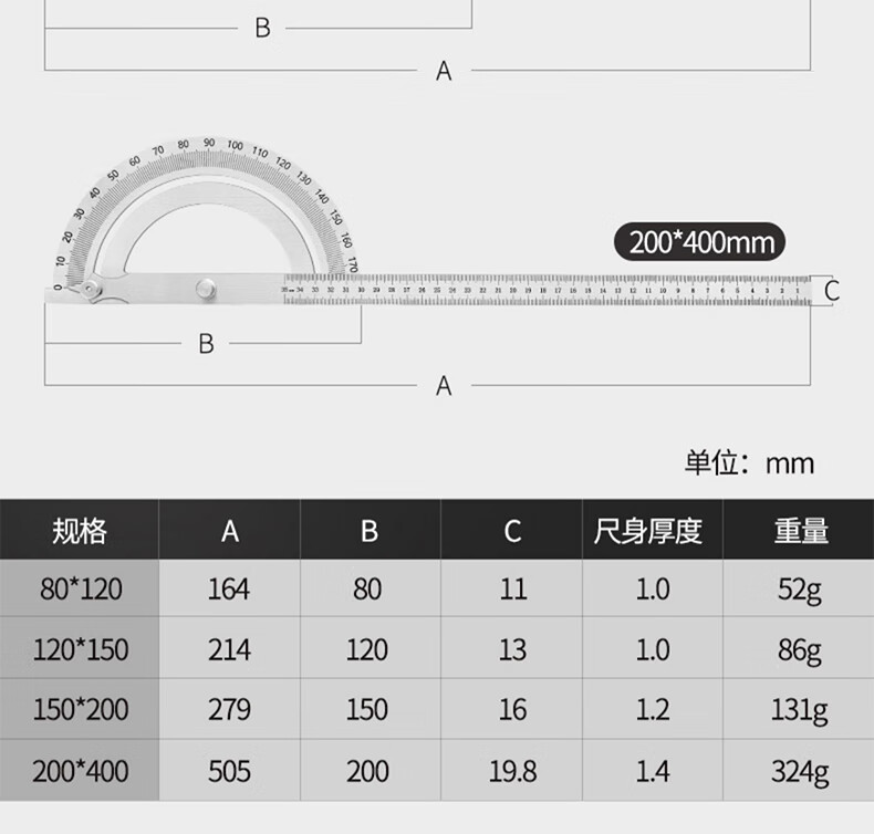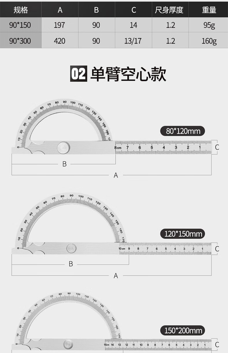 DITRON high-precision angle ruler universal energy angle meter 360-degree angle measurement ruler angle gauge single-arm thickened solid model 90mm*200mm