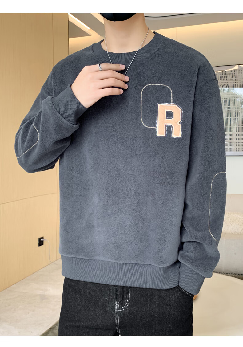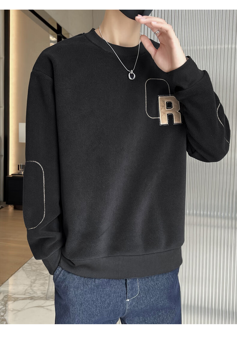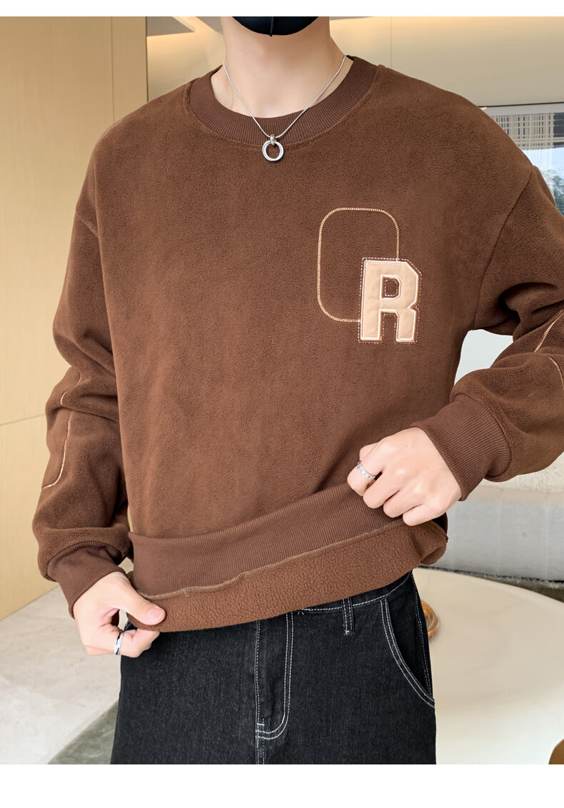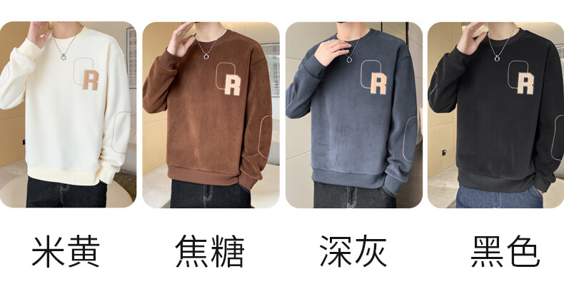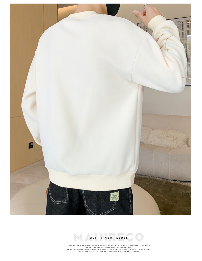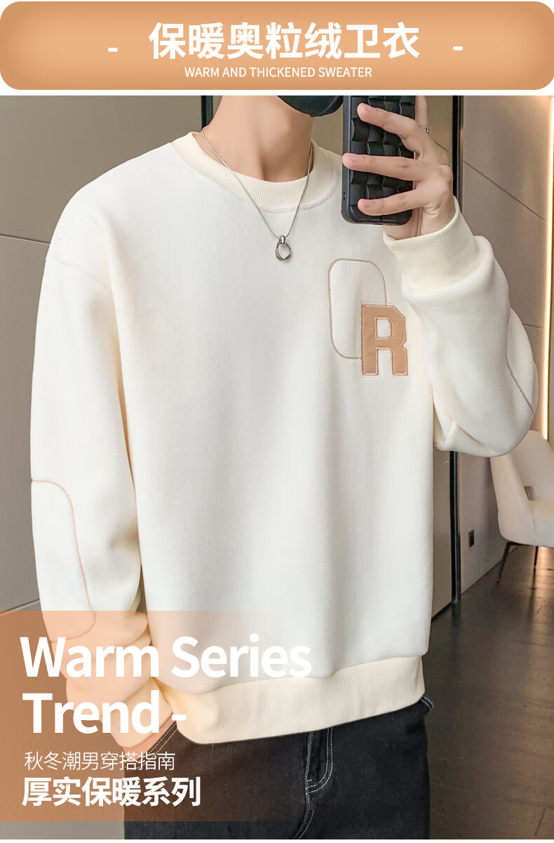 ROMON sweatshirt men's winter 2025 new velvet thickening warm skin-friendly and comfortable long-sleeved top men's rice XL
