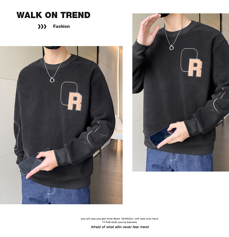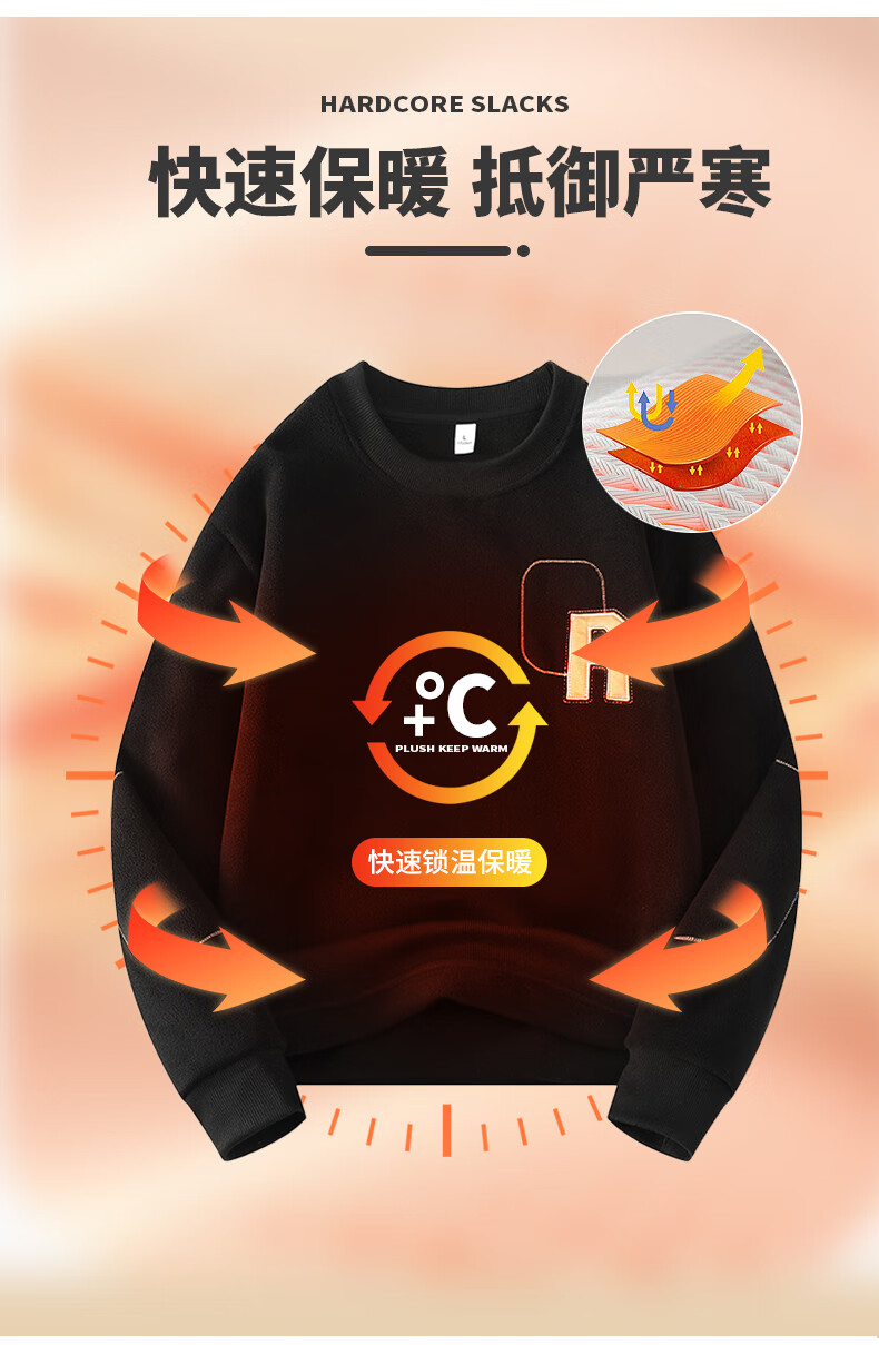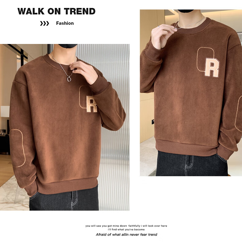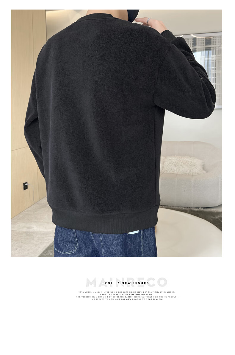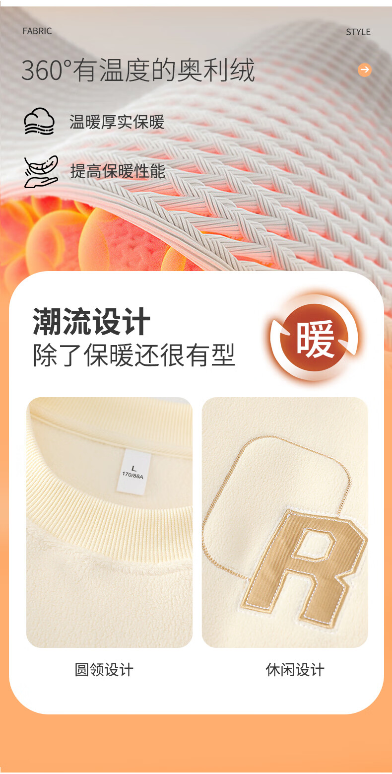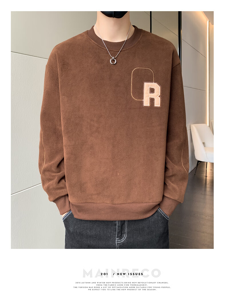 ROMON sweatshirt men's winter 2025 new velvet thickening warm skin-friendly and comfortable long-sleeved top men's rice XL