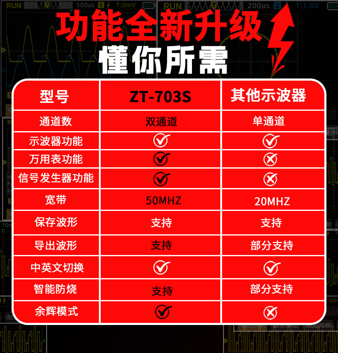 Zhongyi Electrical Measurement (ZOYI) Zhongyi handheld dual-channel oscilloscope multimeter generator 703S repair instrument multi-function measurement three-in-one