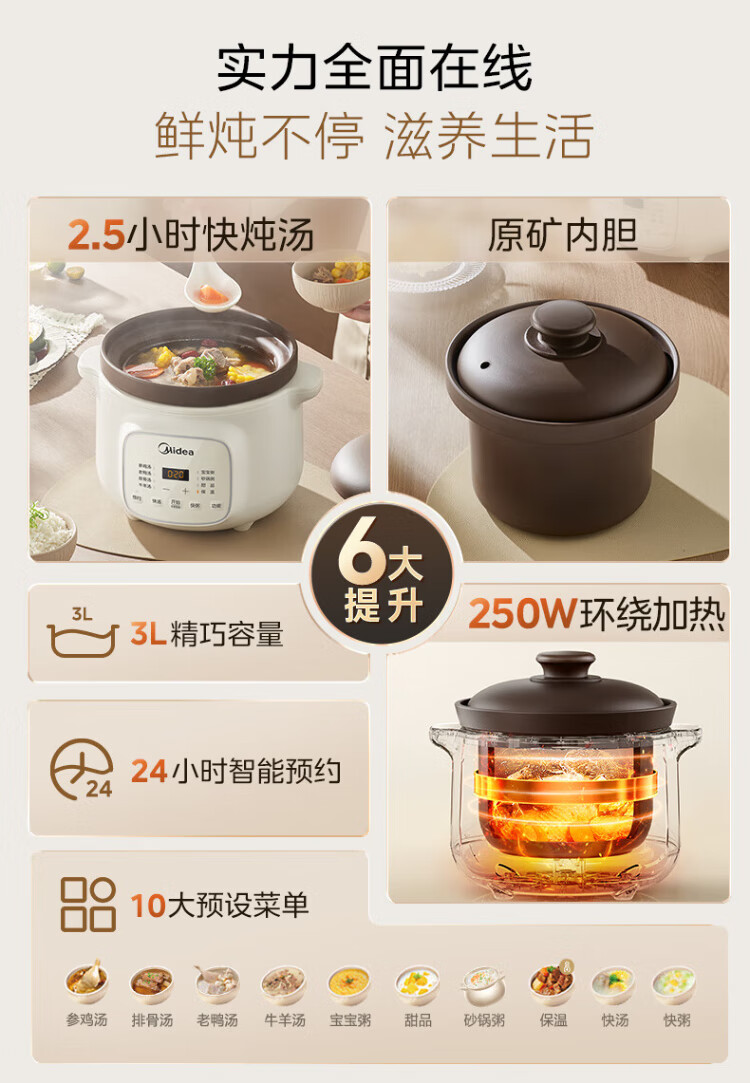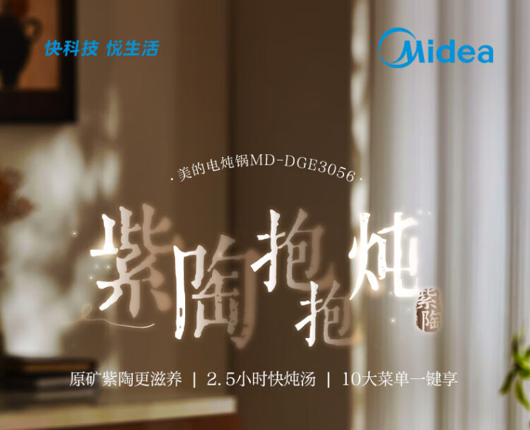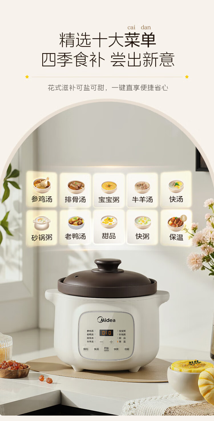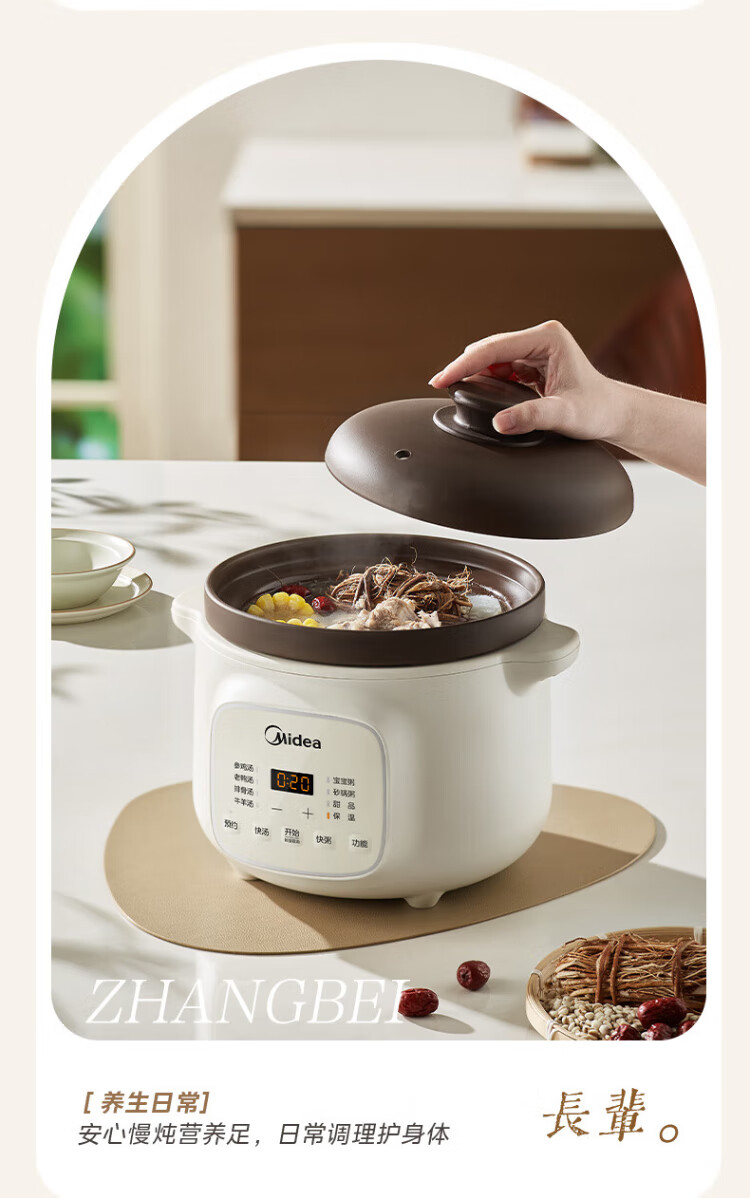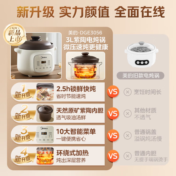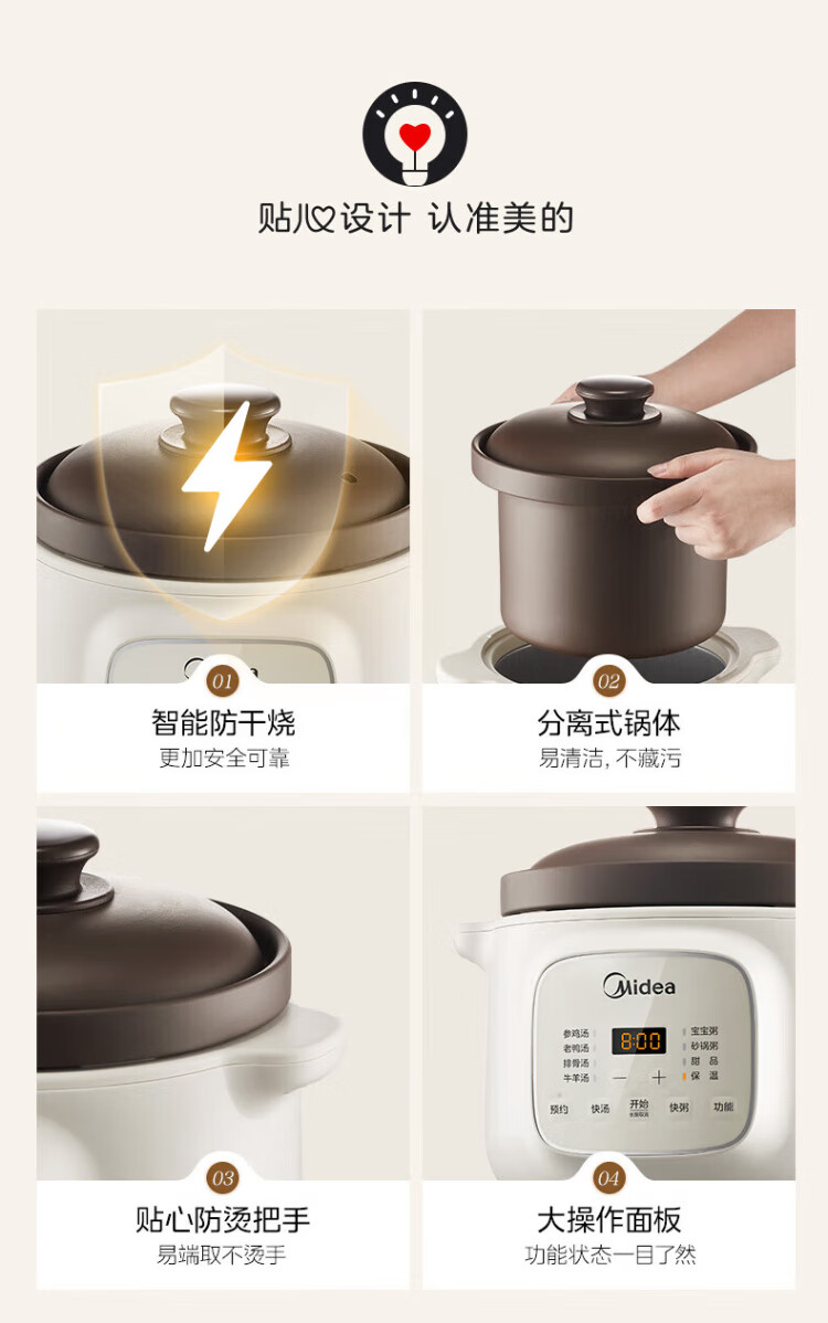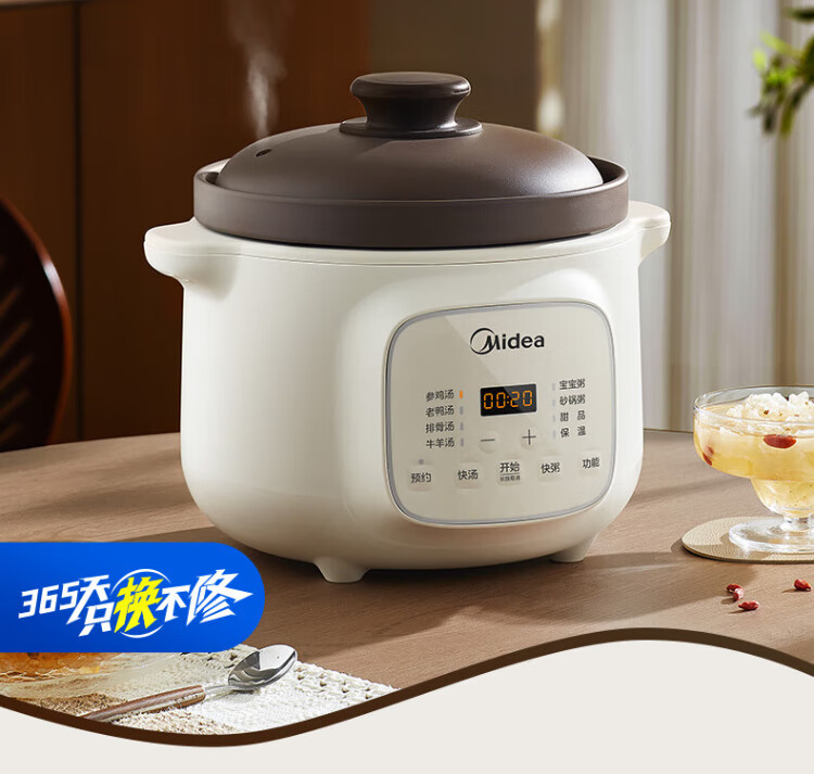 Midea electric stew pot, electric casserole, electric stew pot, ceramic soup pot, stew pot, purple casserole, 3L bird's nest stew pot, porridge, baby food supplement pot, electric cooking pot MD-DGE3056