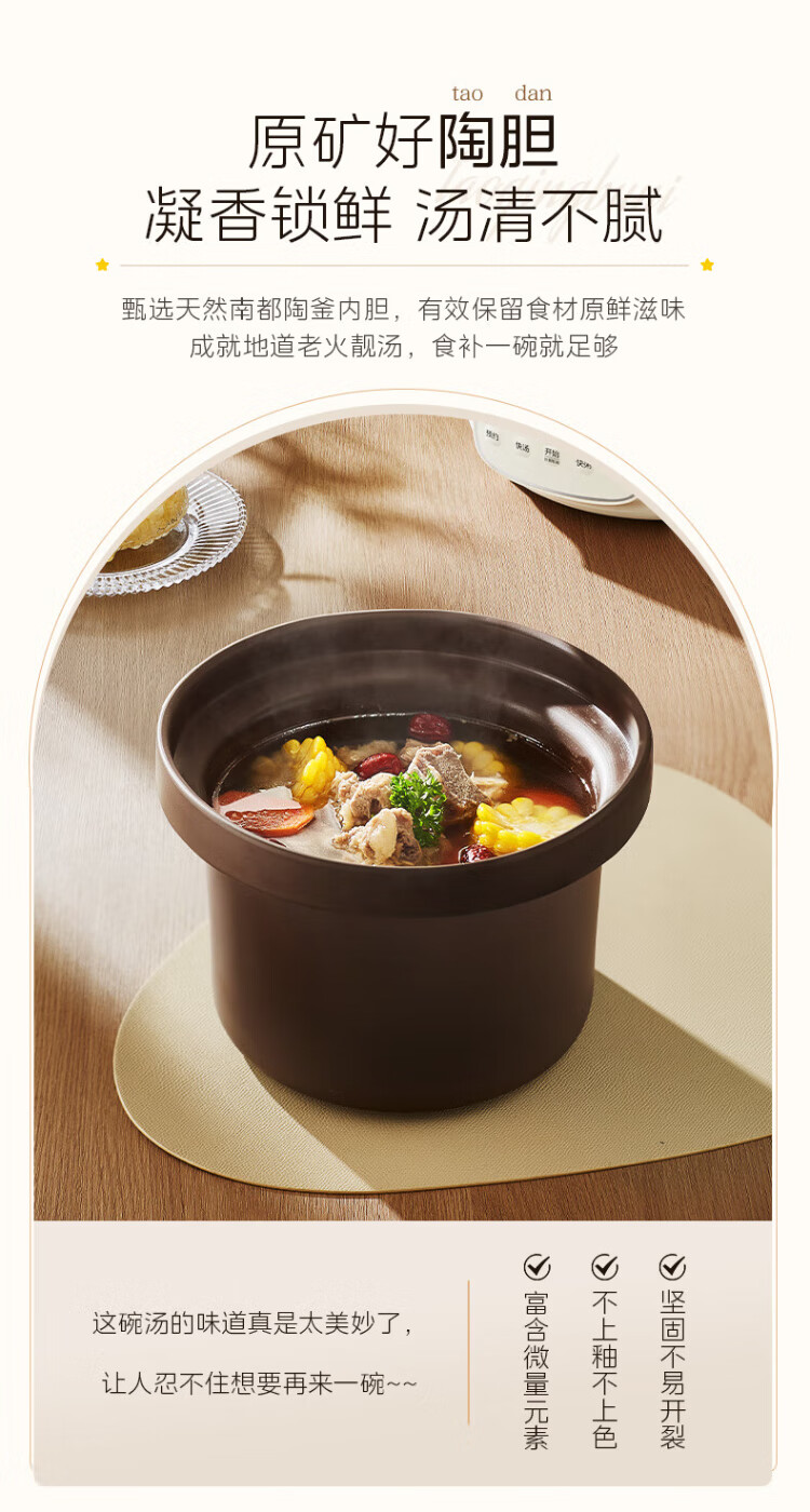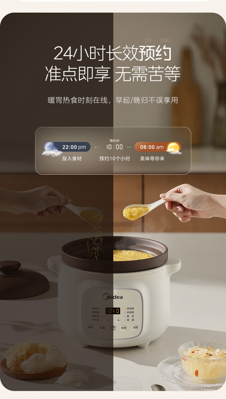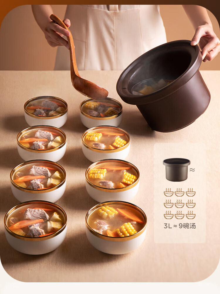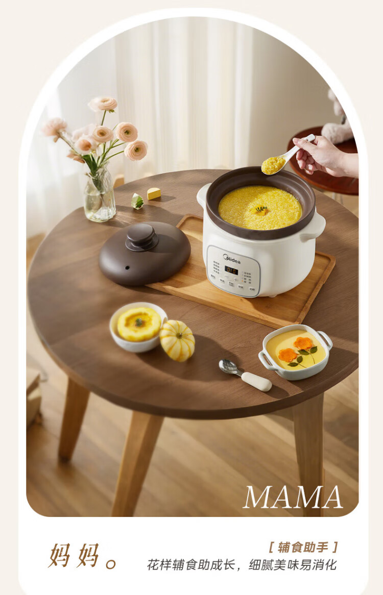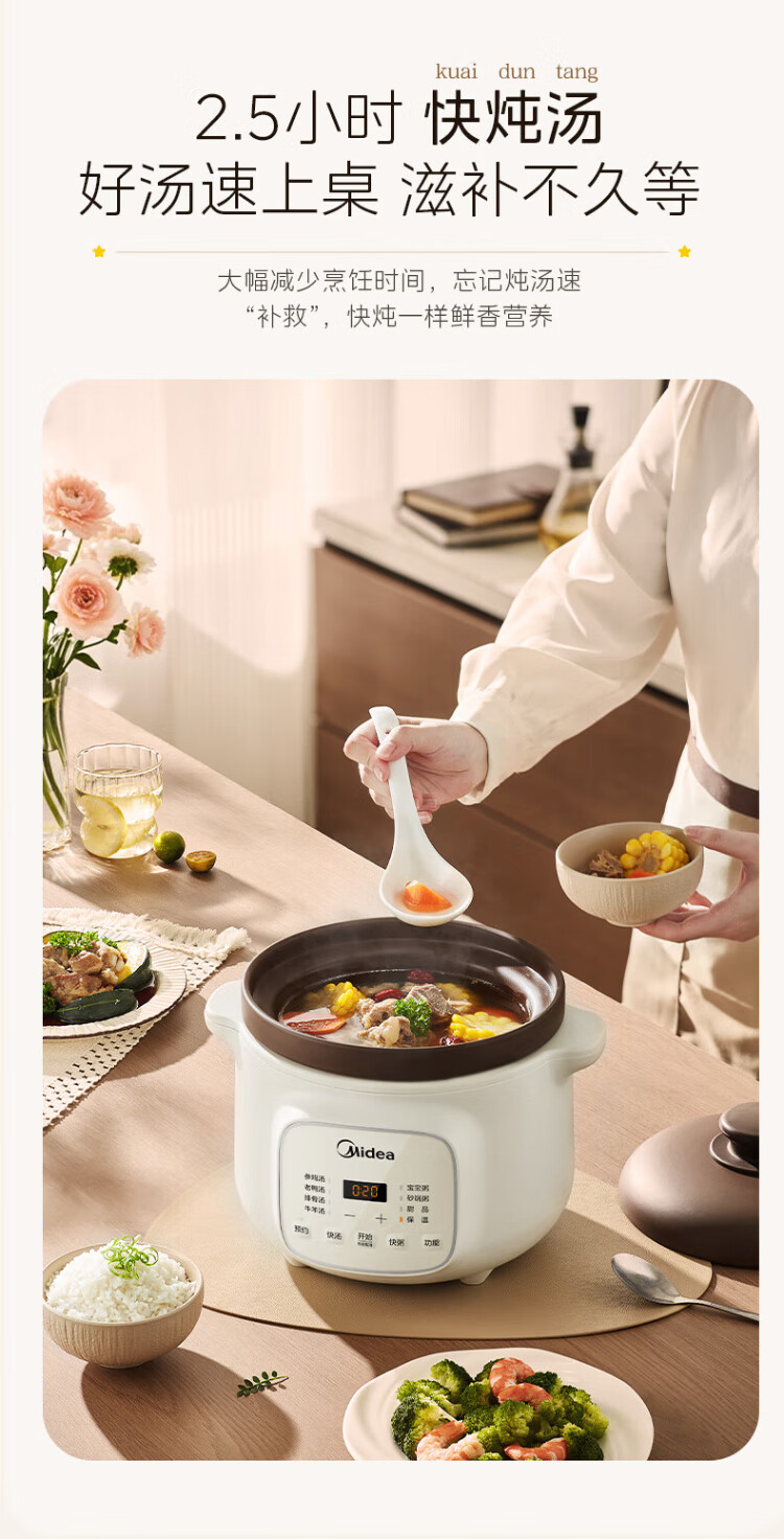 Midea electric stew pot, electric casserole, electric stew pot, ceramic soup pot, stew pot, purple casserole, 3L bird's nest stew pot, porridge, baby food supplement pot, electric cooking pot MD-DGE3056