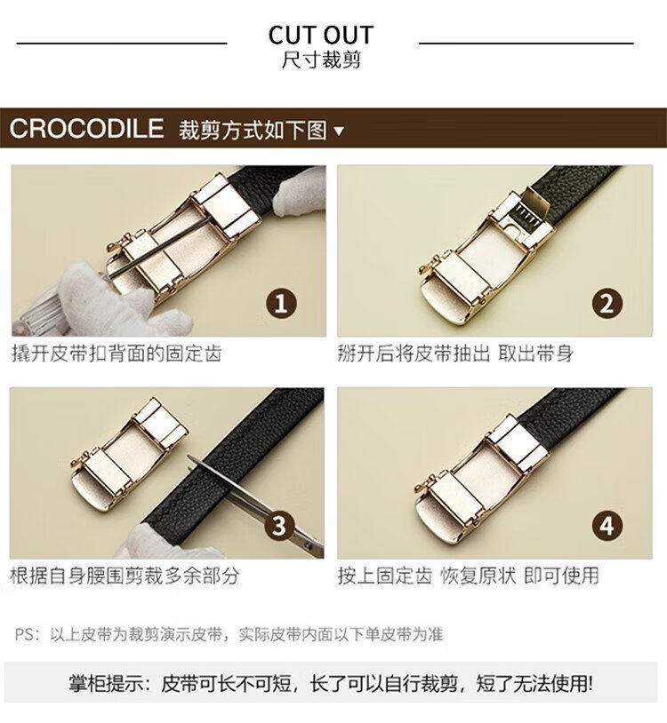 Crocodile shirt first layer cowhide fashionable women's belt automatic buckle suit simple belt gift 4239