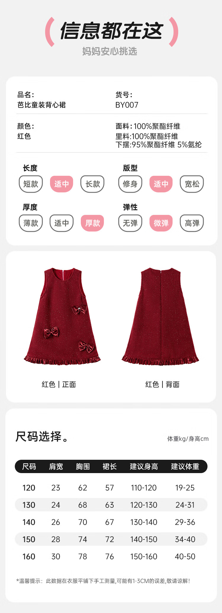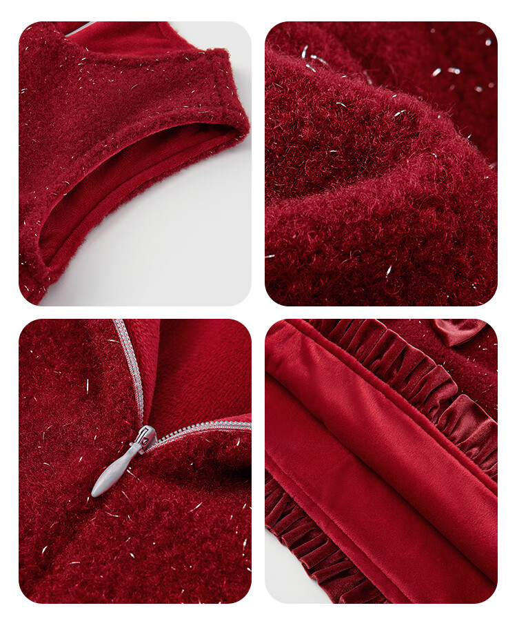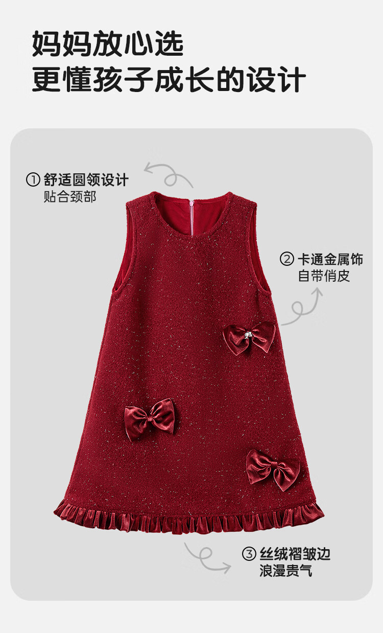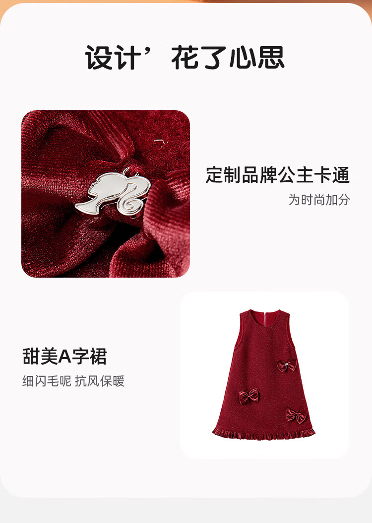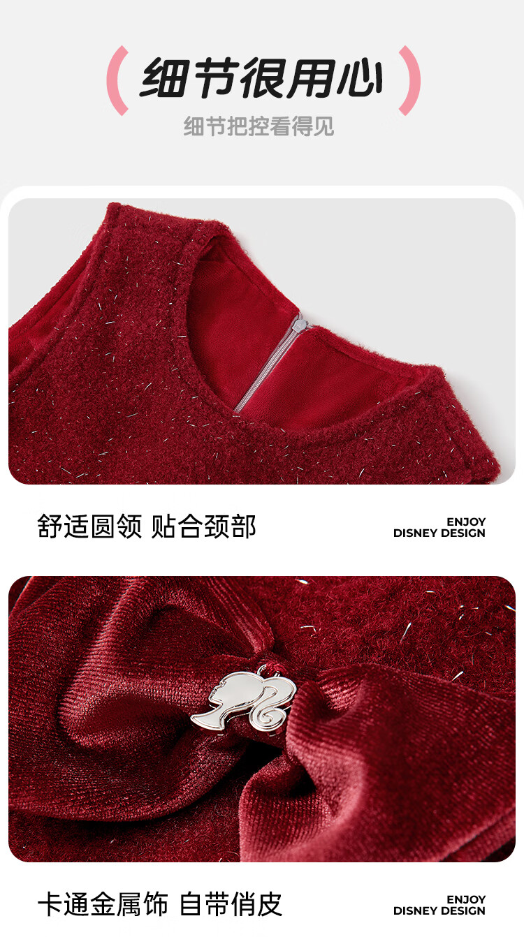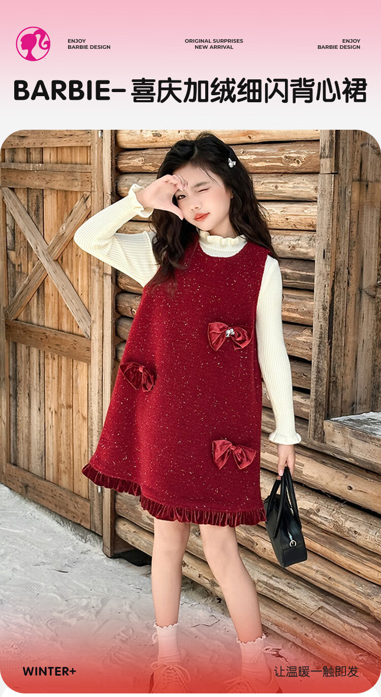Barbie Children's Clothing Girls New Year's Eve Clothes Girls Year of the Horse New Year Clothes Plus Velvet Red Skirt Girls Dress BY007