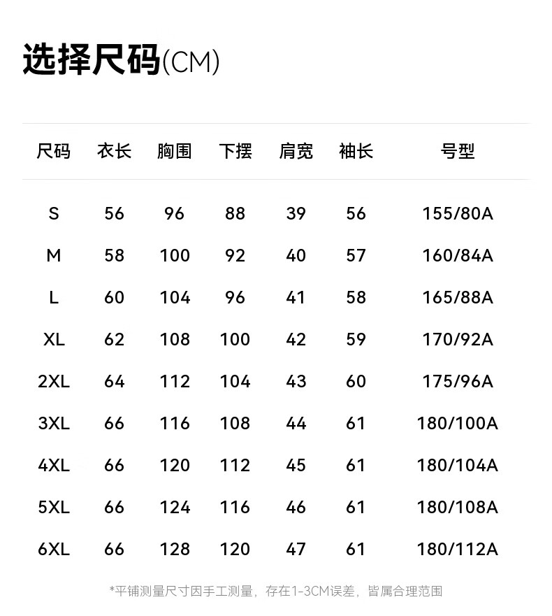 China (cm) 165 / 88-90 170 / 96-98 175 / 108-110 180 / 118-122 185 / 126-130