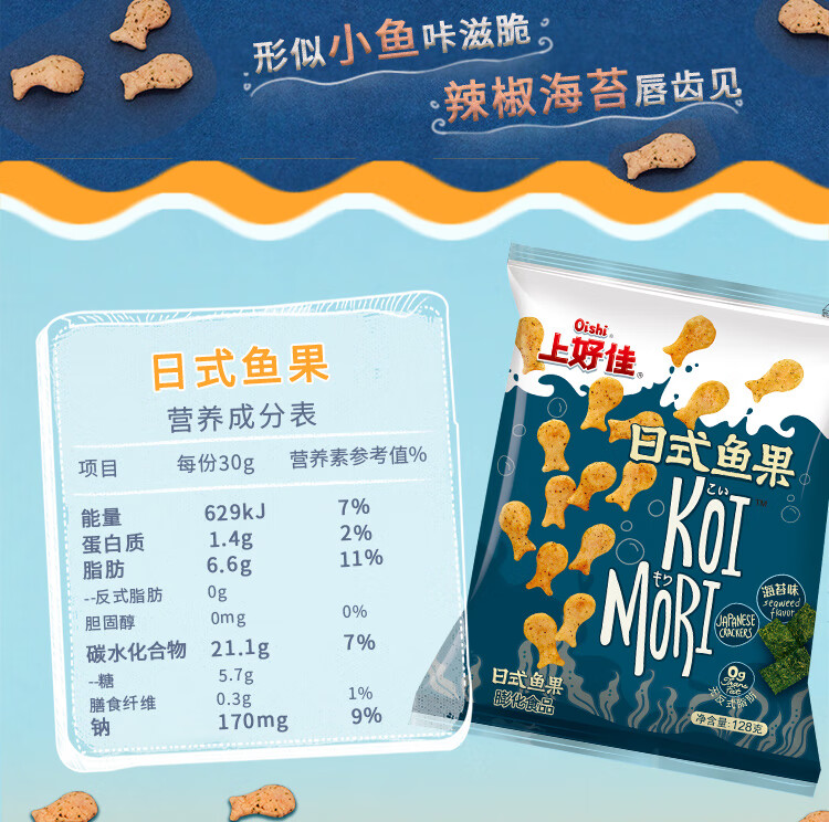 Shanghaojia Japanese fish, fruit and seaweed flavor 128g casual snacks