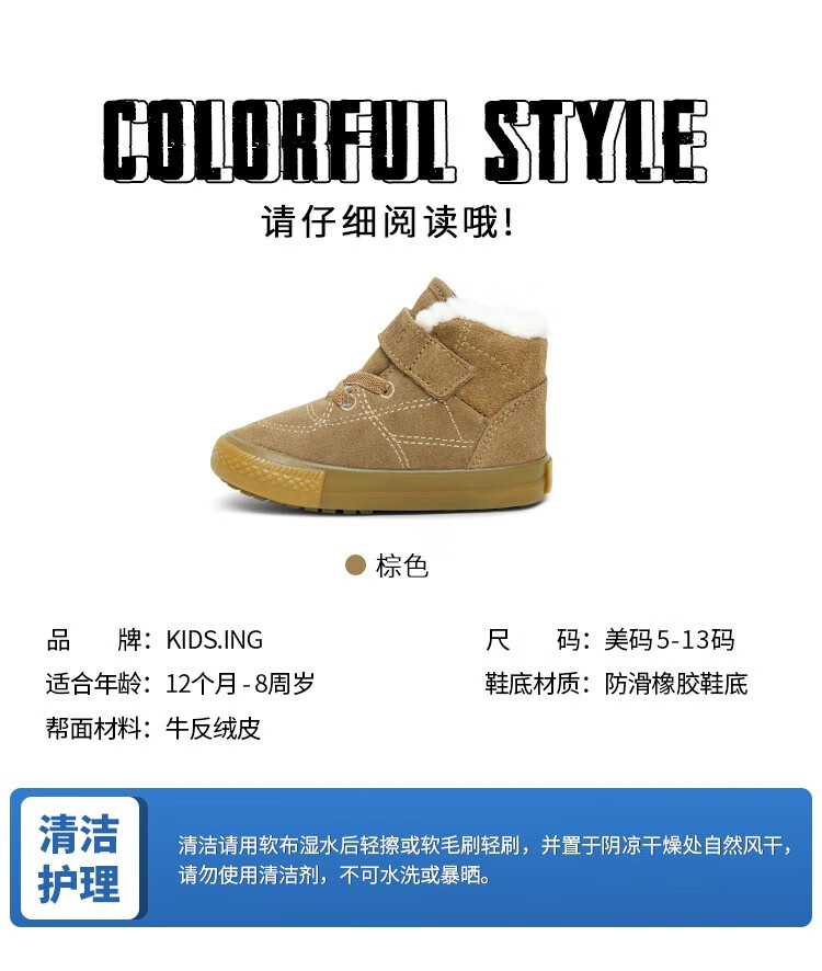 Kids.ing clearance, no replacement, children's cotton shoes, baby's second cotton shoes, boys and girls, warm cotton boots, casual velvet thickened sneakers, brown 23, suitable for feet length 13.1-13.7cm