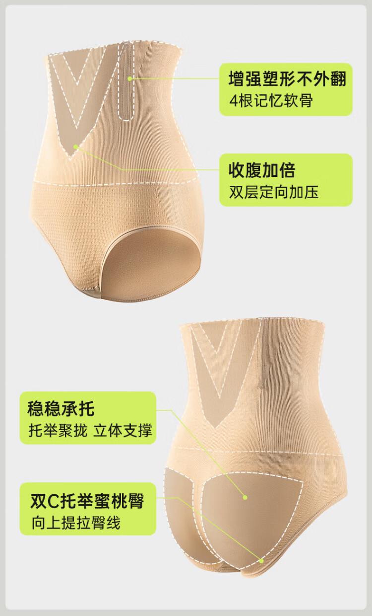 Dance Tsing Yi Triangular Style Belly Controlling Butt Lifting Underwear High Waist Shaping Women's Seamless Waist Shaping Body Shaping Skin Color 1 Pack M