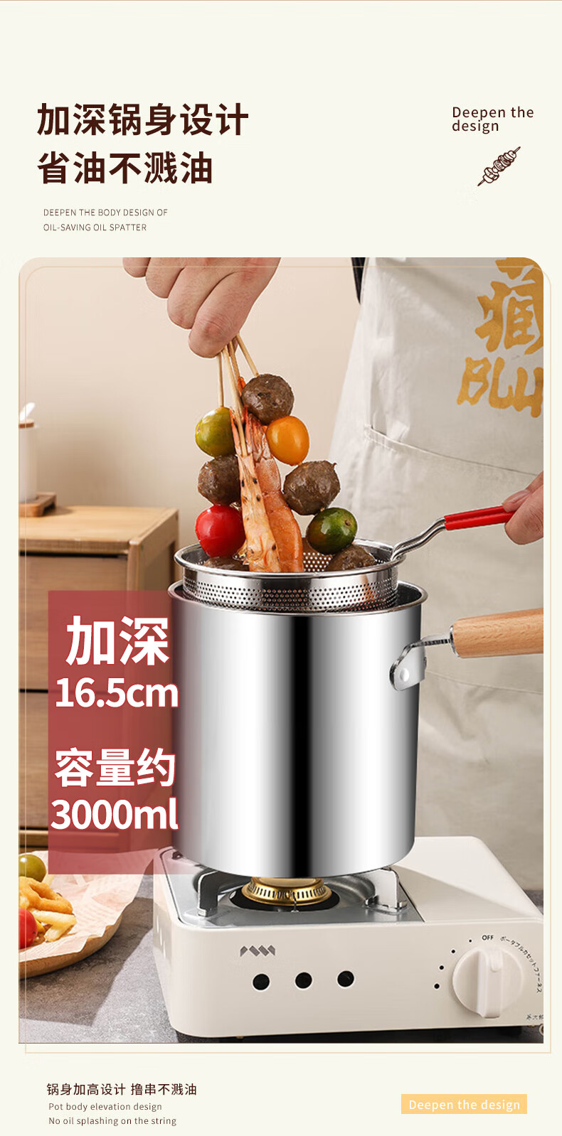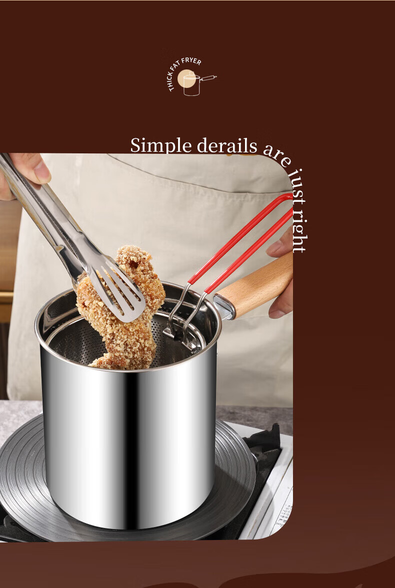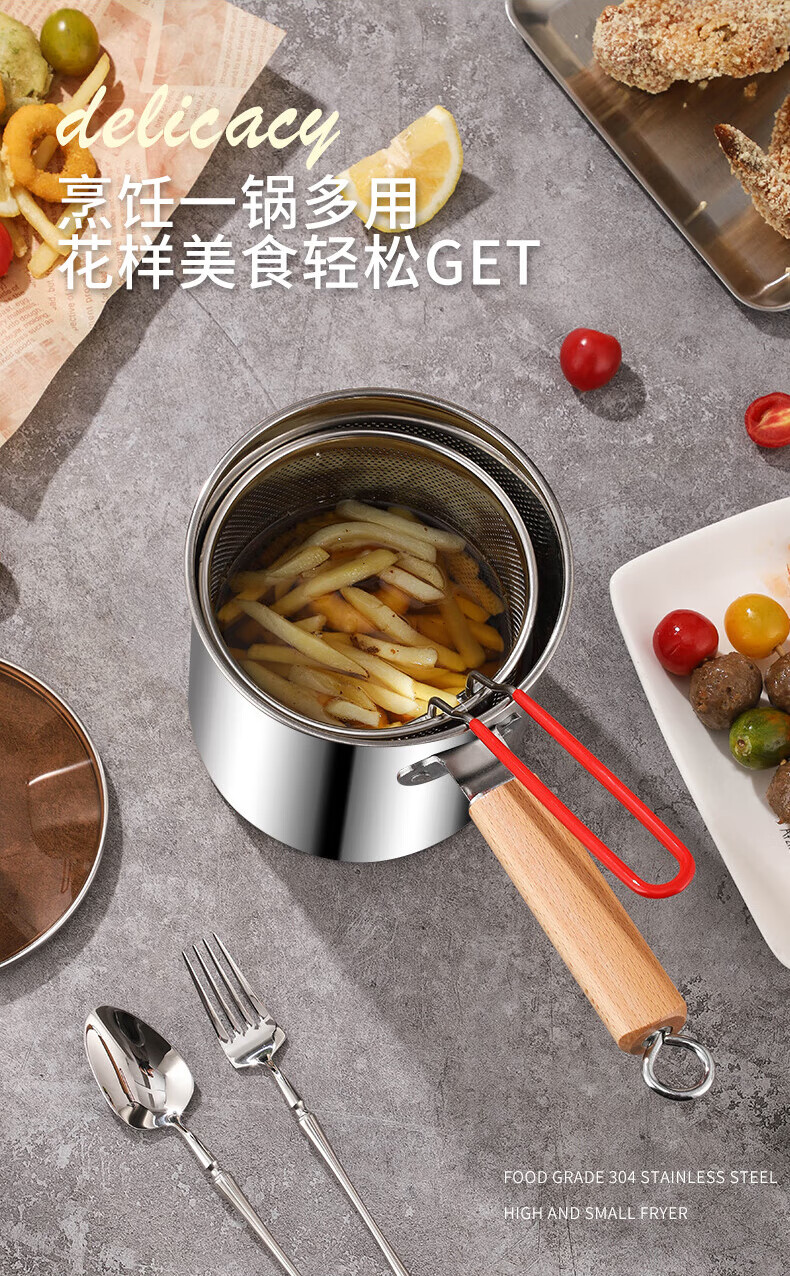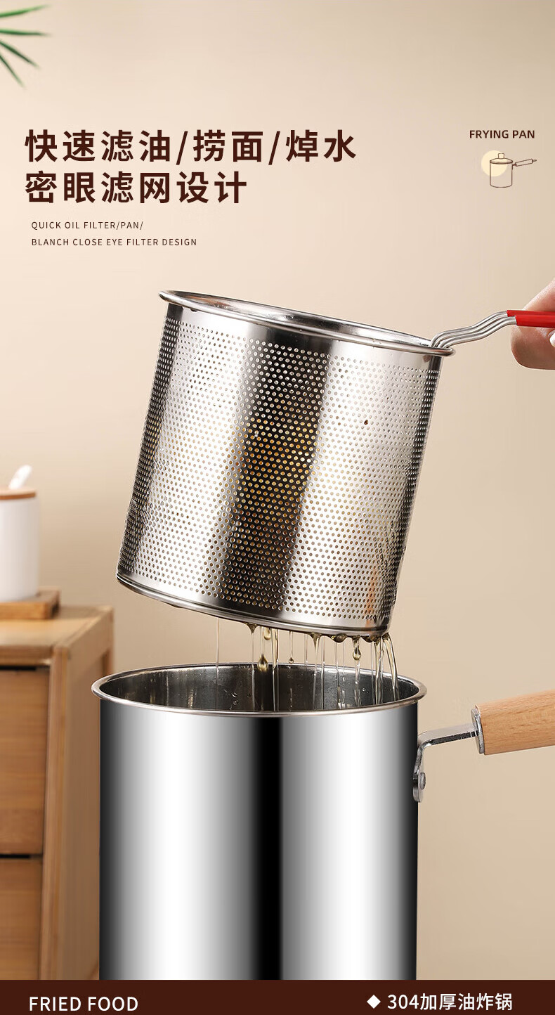 KEGOO 304 stainless steel deep fryer, household small fryer with oil filter, special fryer for skewers, tempura and fried eggs KG590