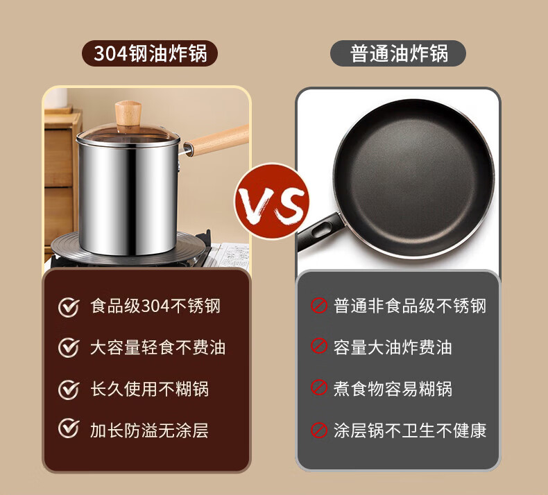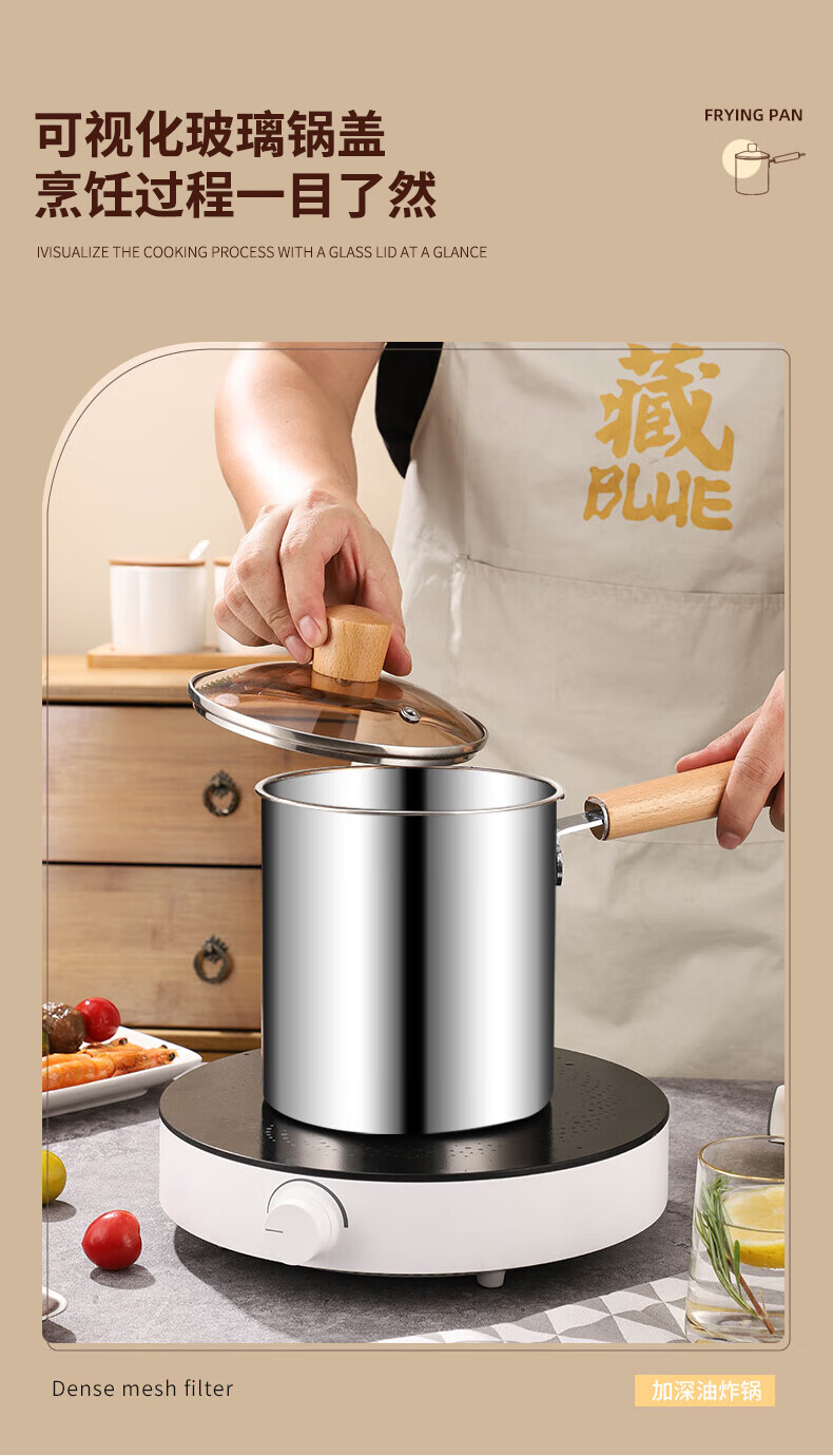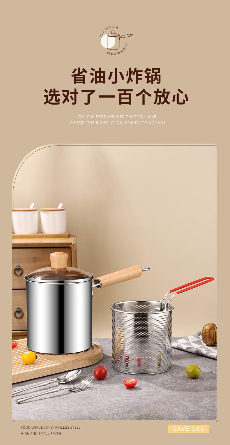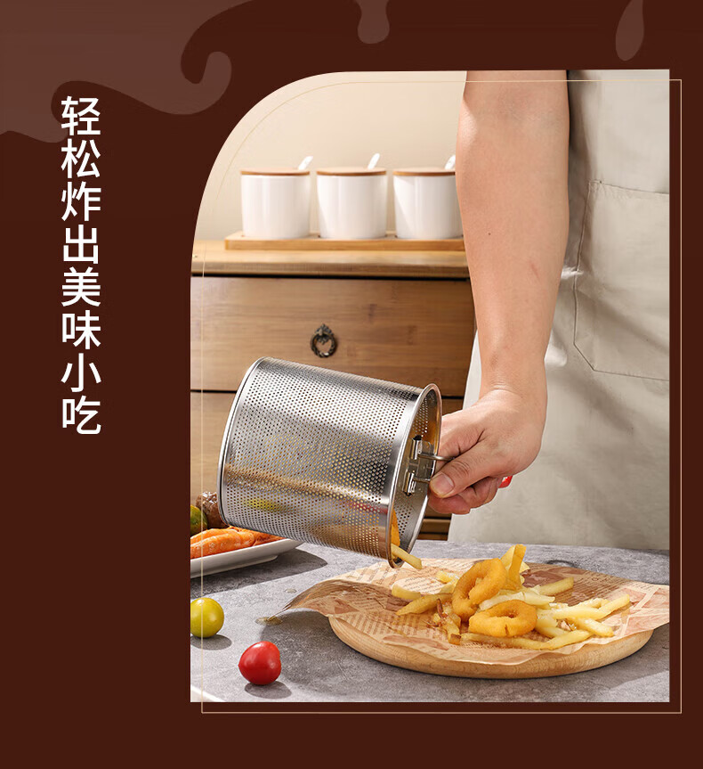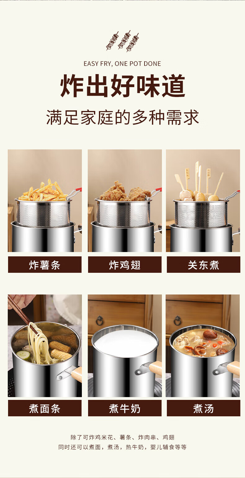 KEGOO 304 stainless steel deep fryer, household small fryer with oil filter, special fryer for skewers, tempura and fried eggs KG590