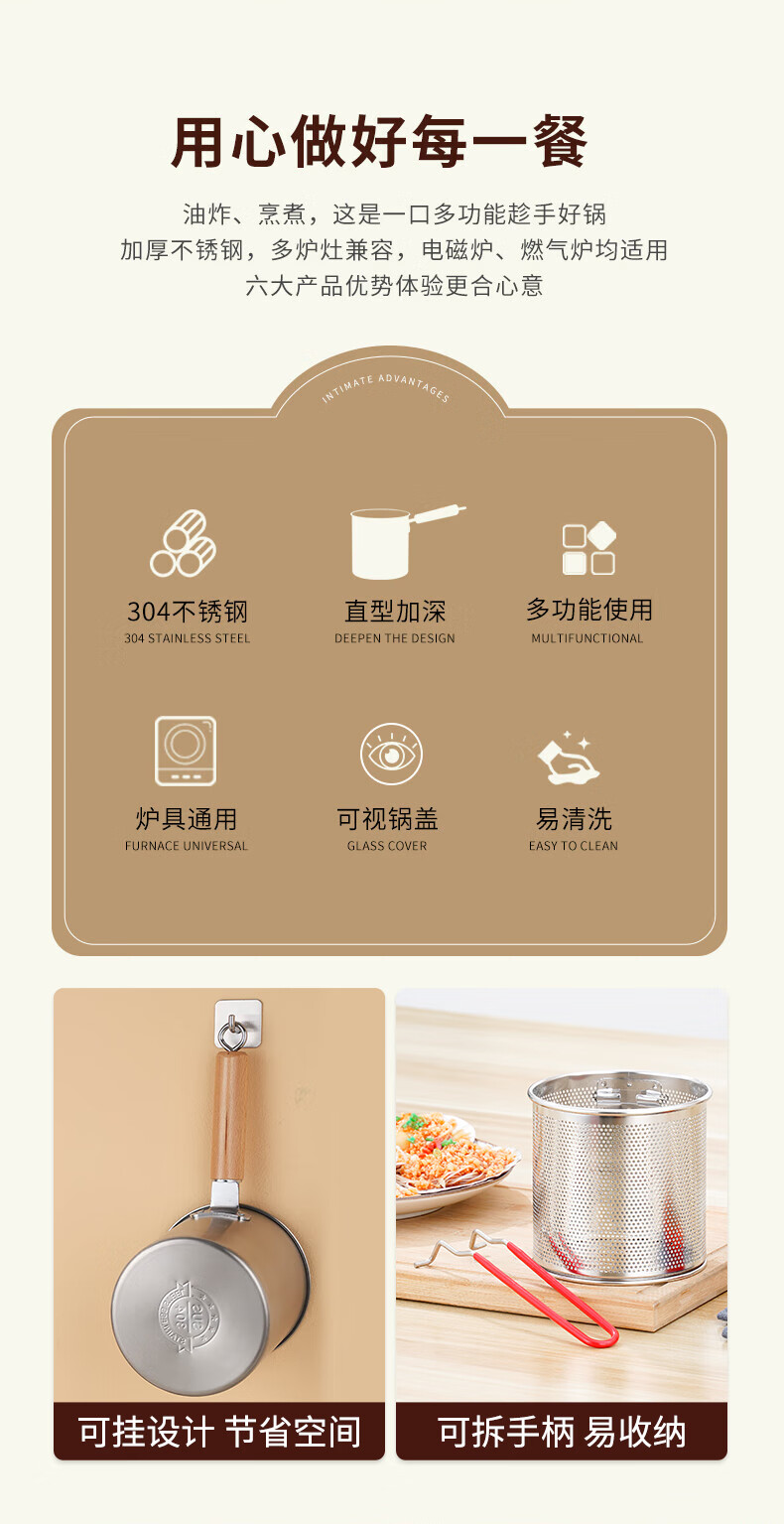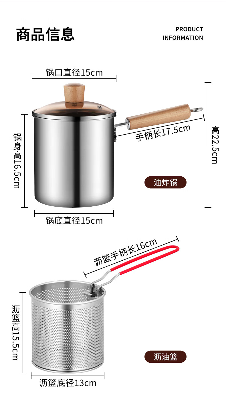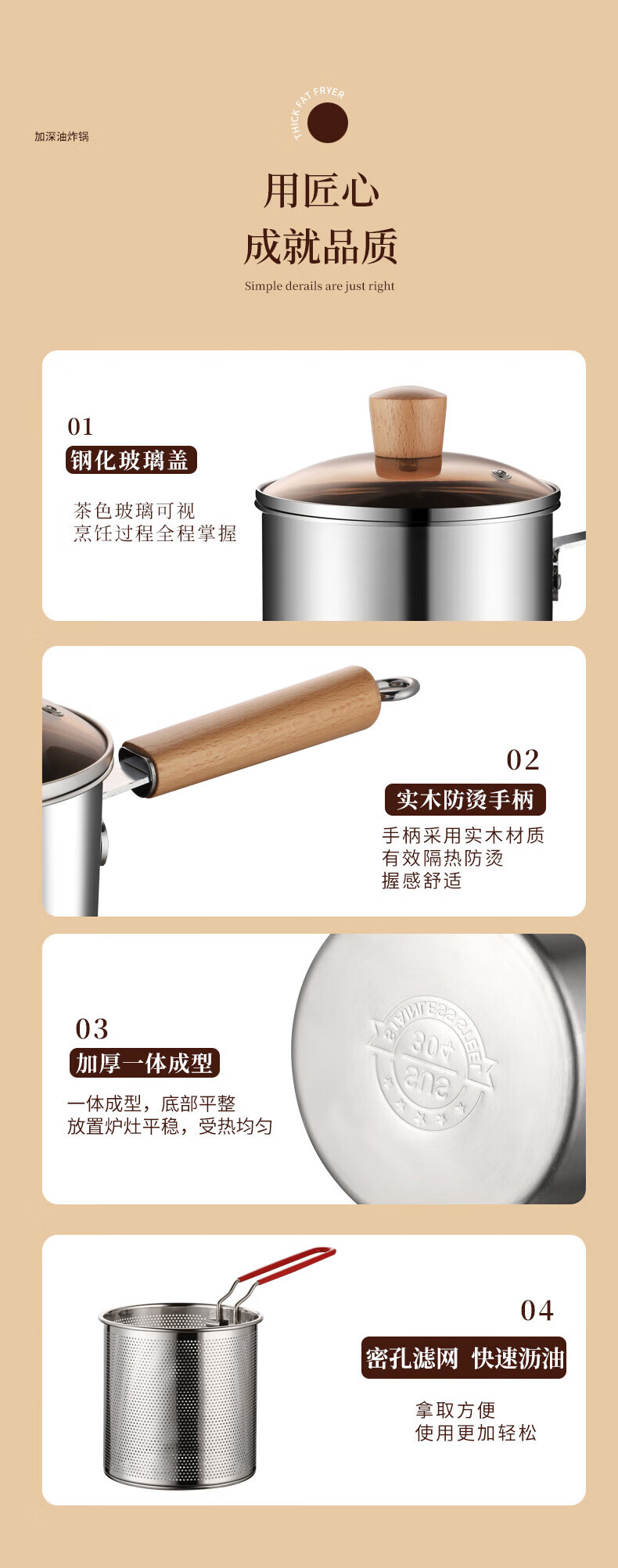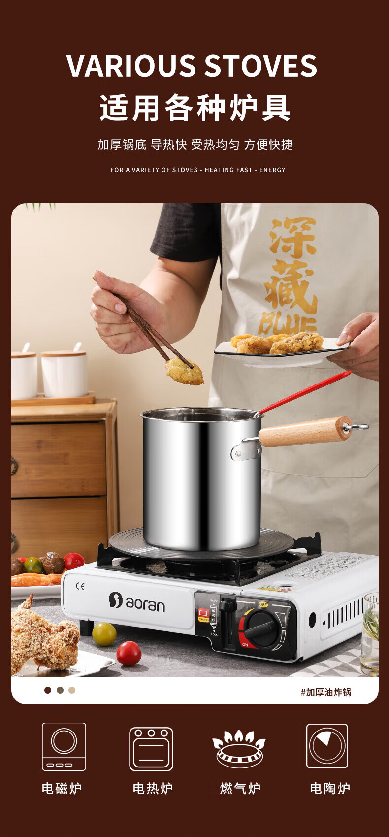 KEGOO 304 stainless steel deep fryer, household small fryer with oil filter, special fryer for skewers, tempura and fried eggs KG590