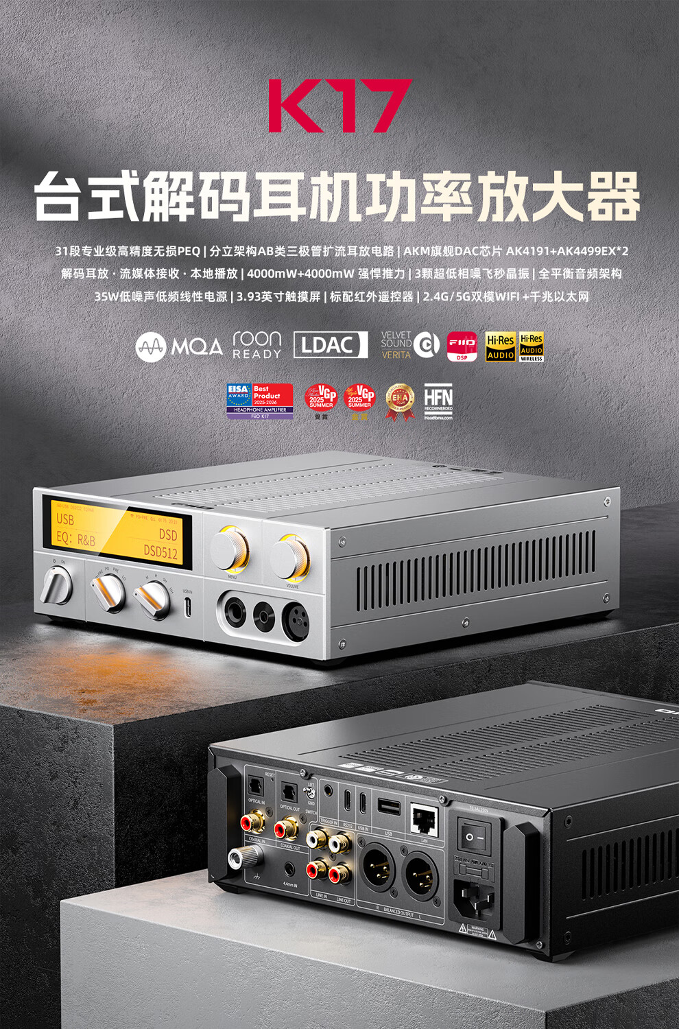FiiO K17 desktop decoding headphone amplifier DSD decoding all-in-one headphone power amplifier HiFi decoder black