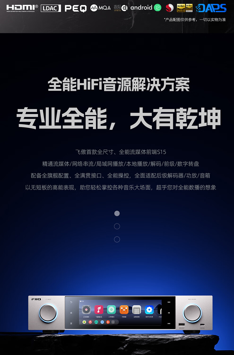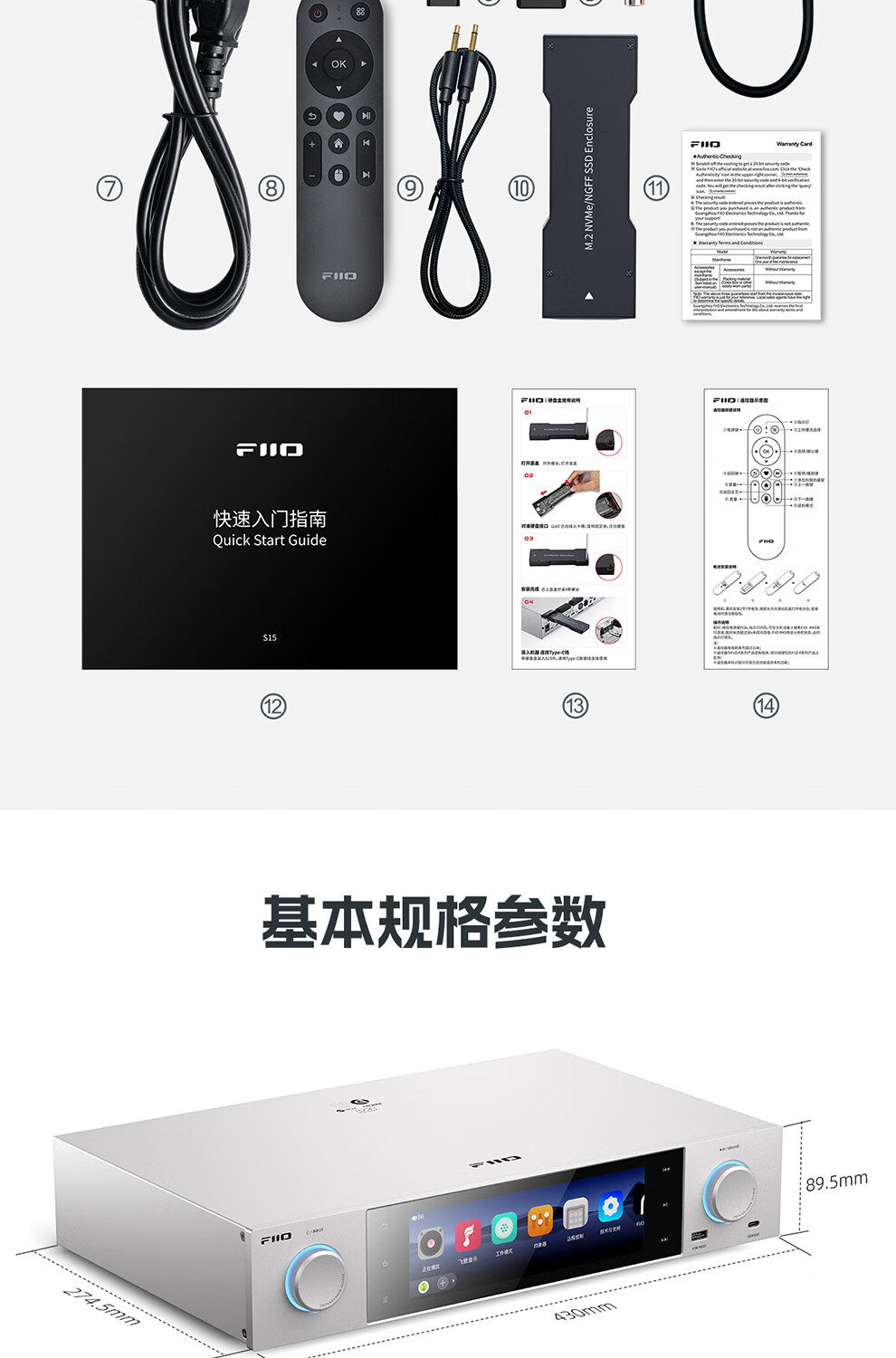 FiiO S15 Desktop HD Streaming Media Decoding Amplifier All-in-One Player Digital Turntable Silver