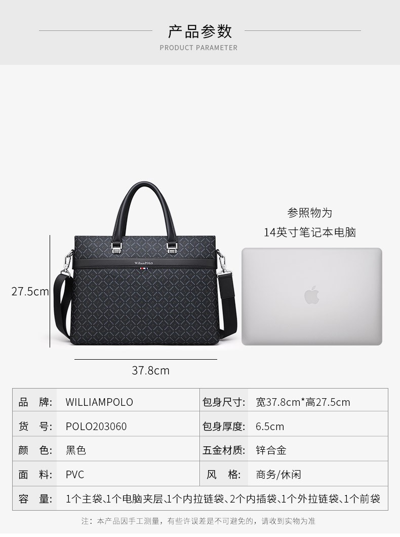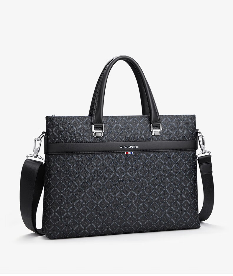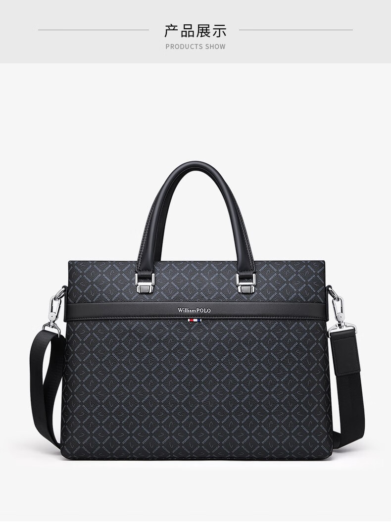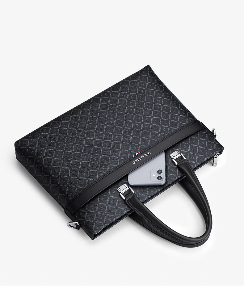 WILLIAMPOLO Men's Gift Business Briefcase Men's Handbag Large Capacity Business Men's Bag 14-inch Computer Bag Fashion Trend Black Plaid (37.8*27.5cm) 14-inch