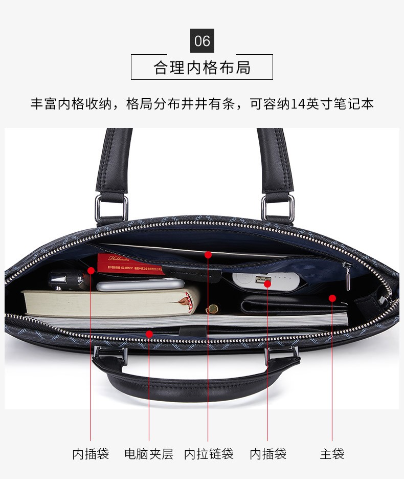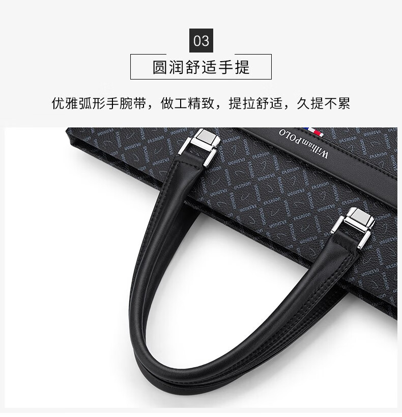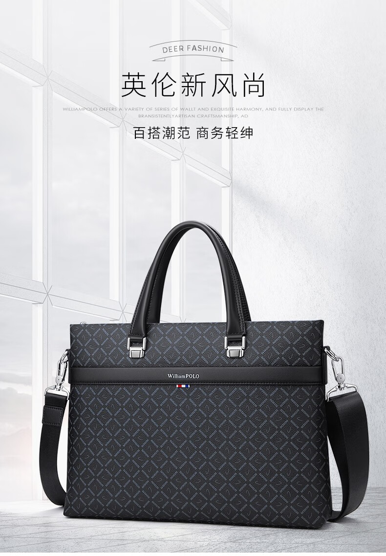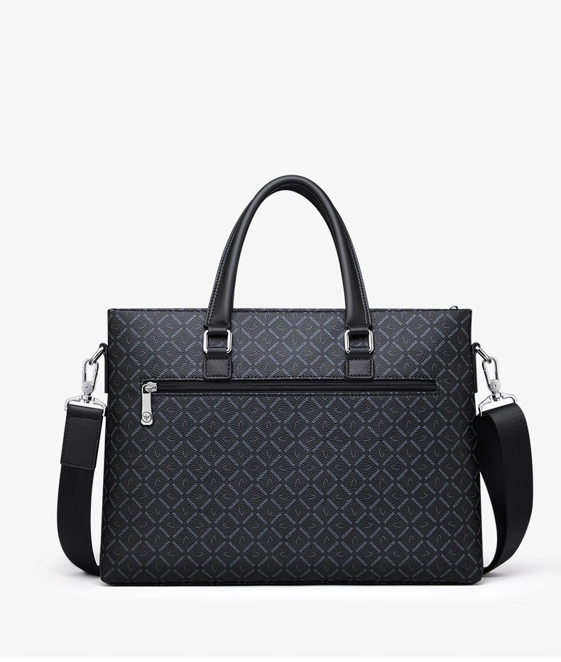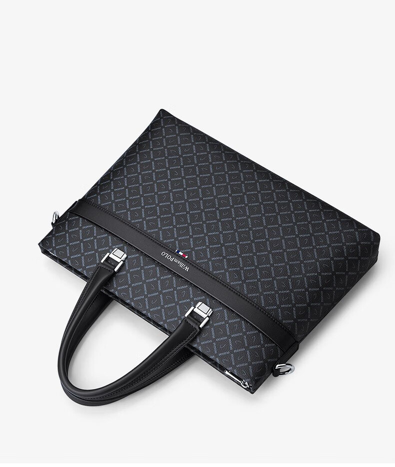 WILLIAMPOLO Men's Gift Business Briefcase Men's Handbag Large Capacity Business Men's Bag 14-inch Computer Bag Fashion Trend Black Plaid (37.8*27.5cm) 14-inch