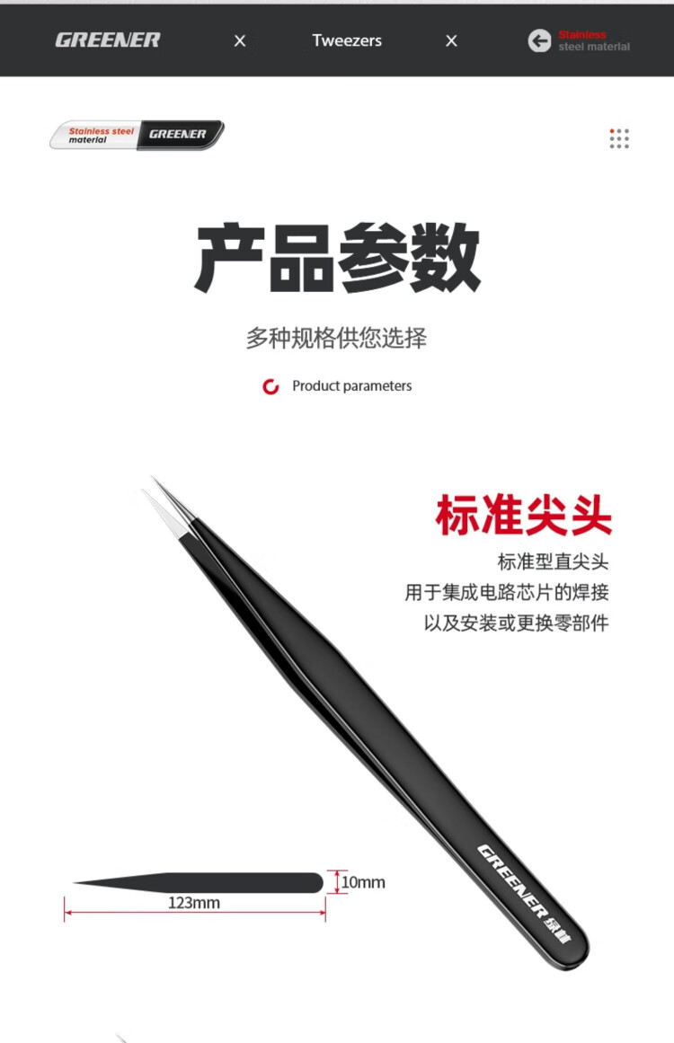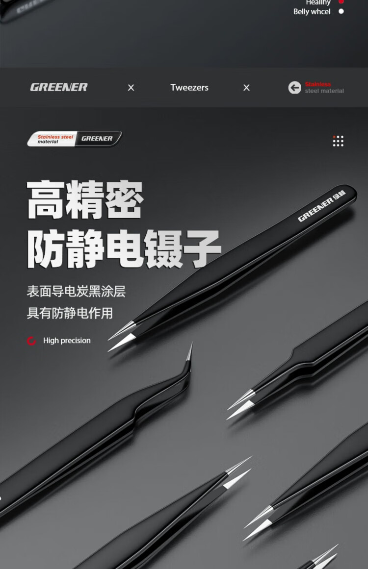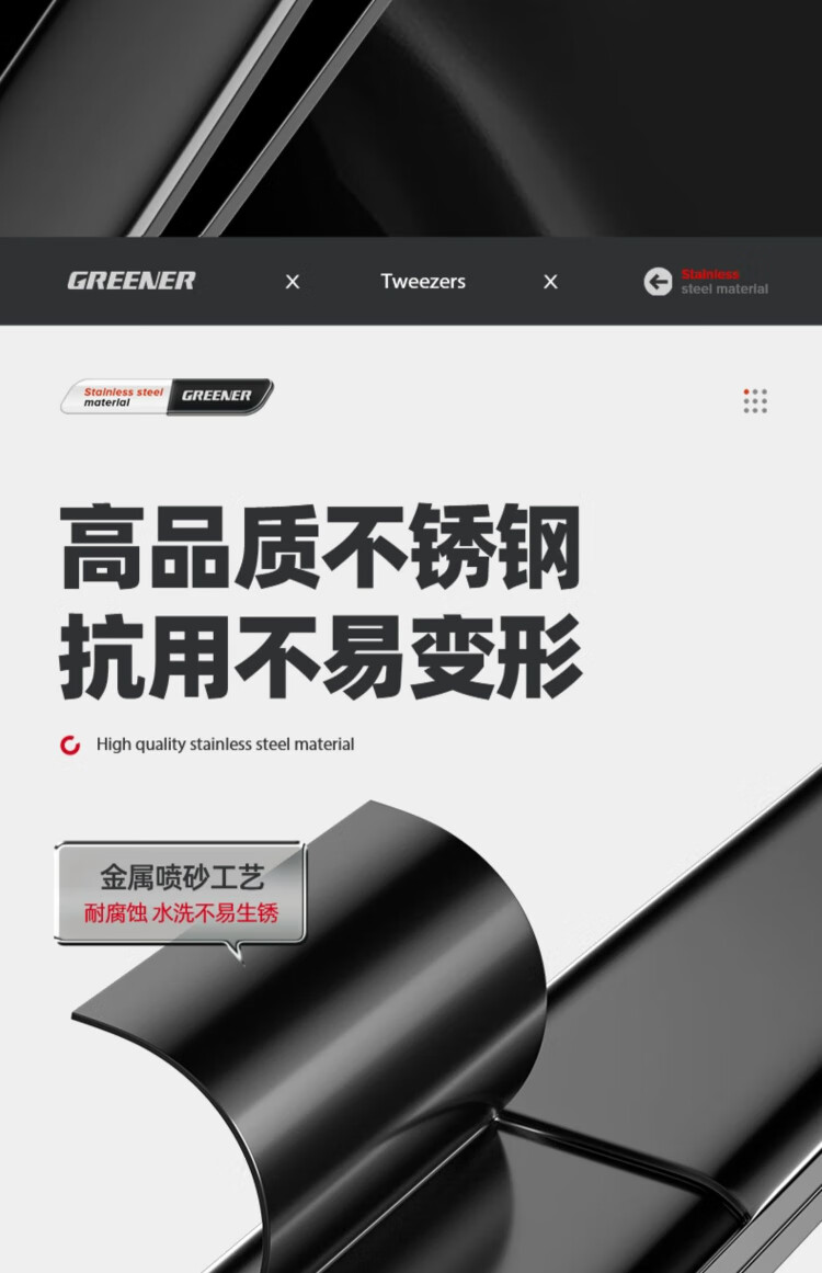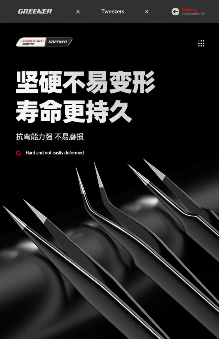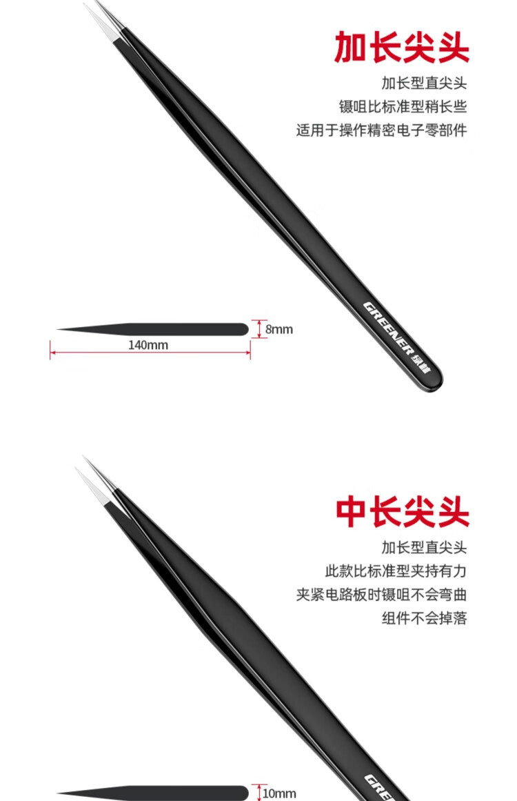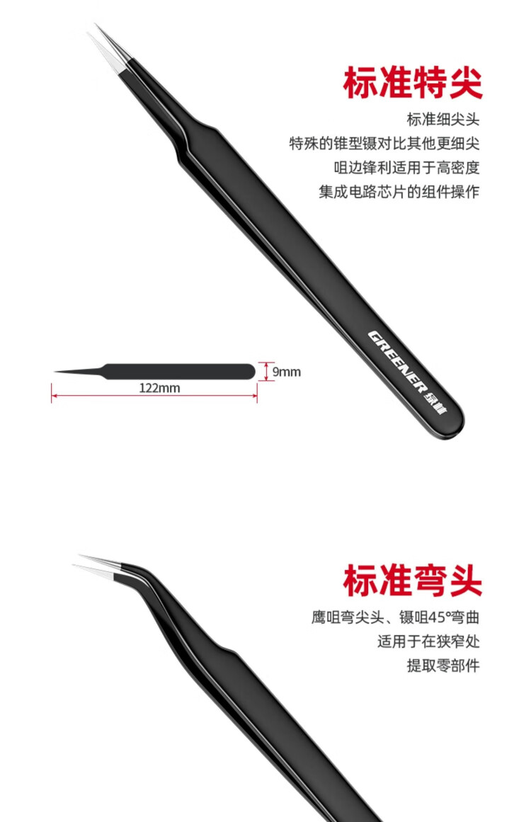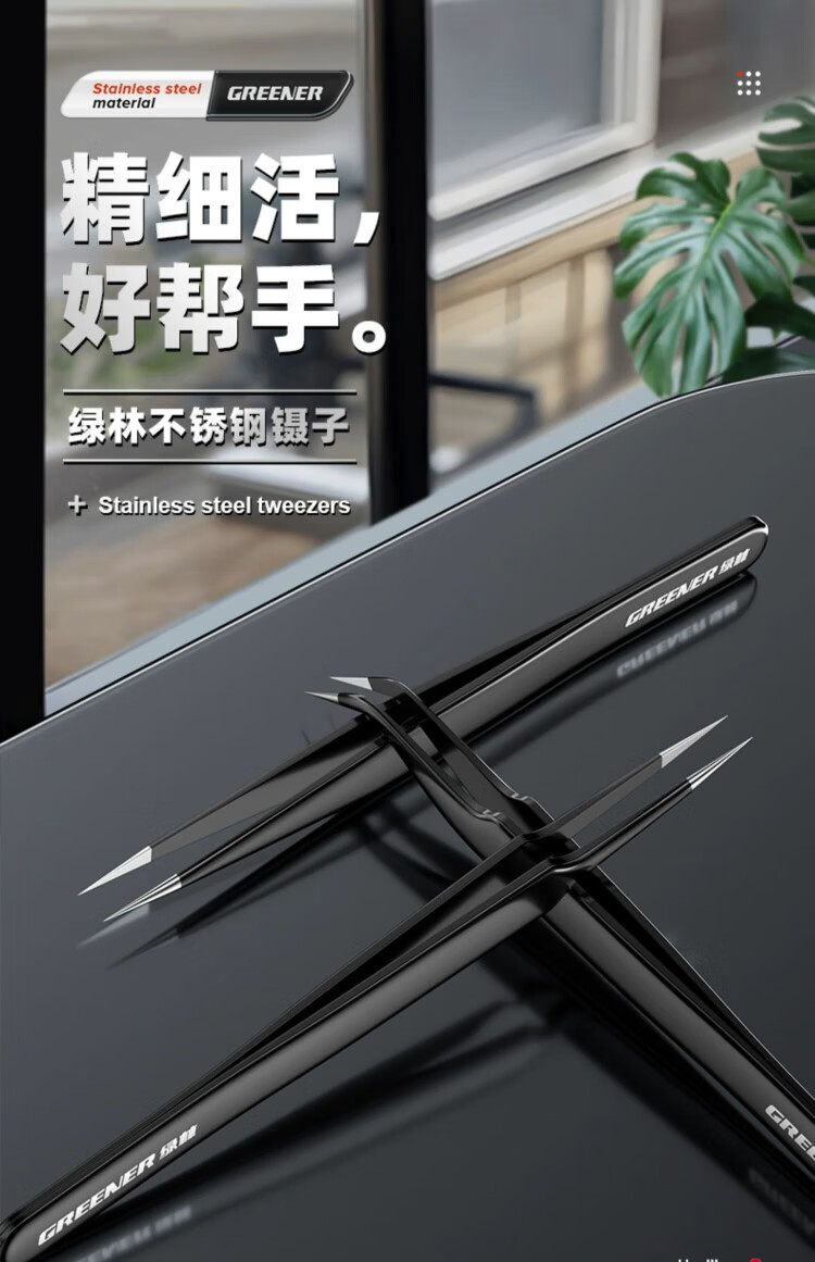 GREENER tweezers stainless steel bird's nest hair-picking artifact high-precision tool repair elbow tip pinch niezi clip camera
