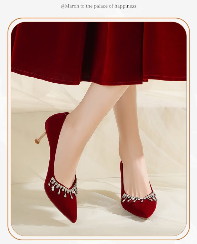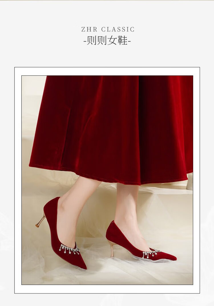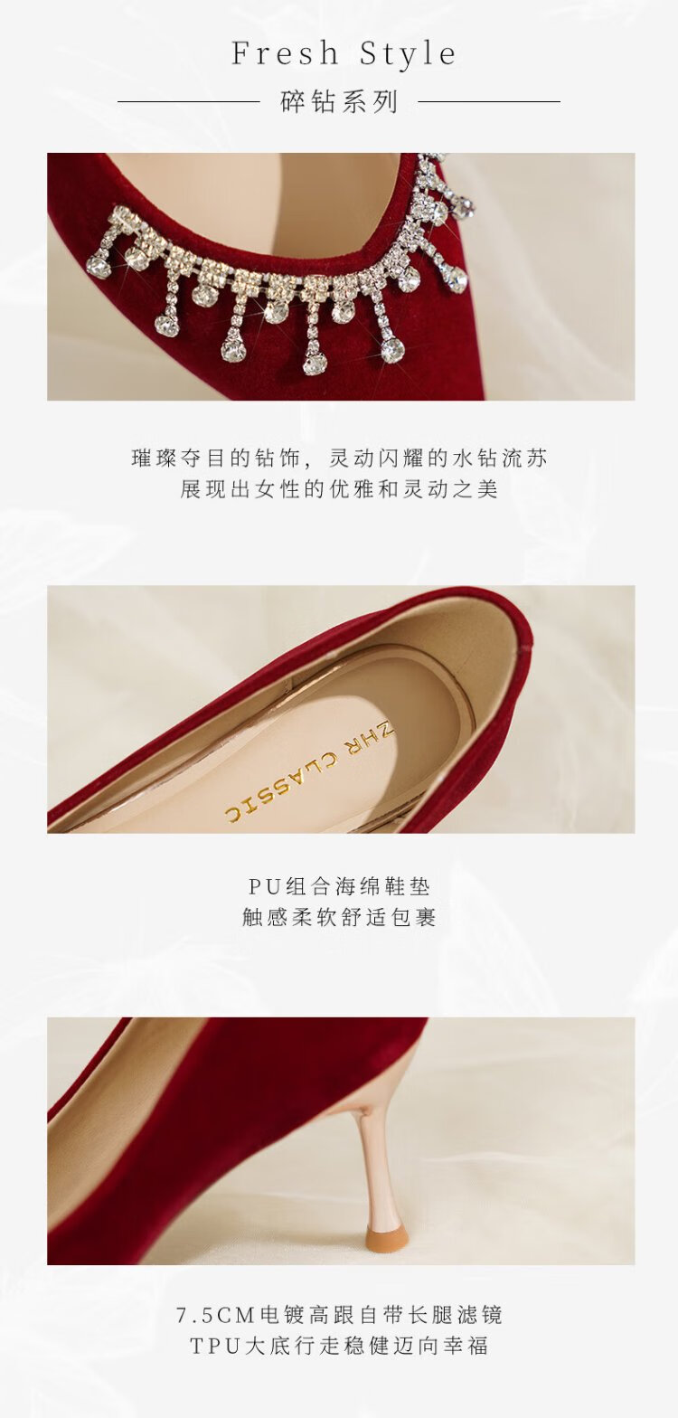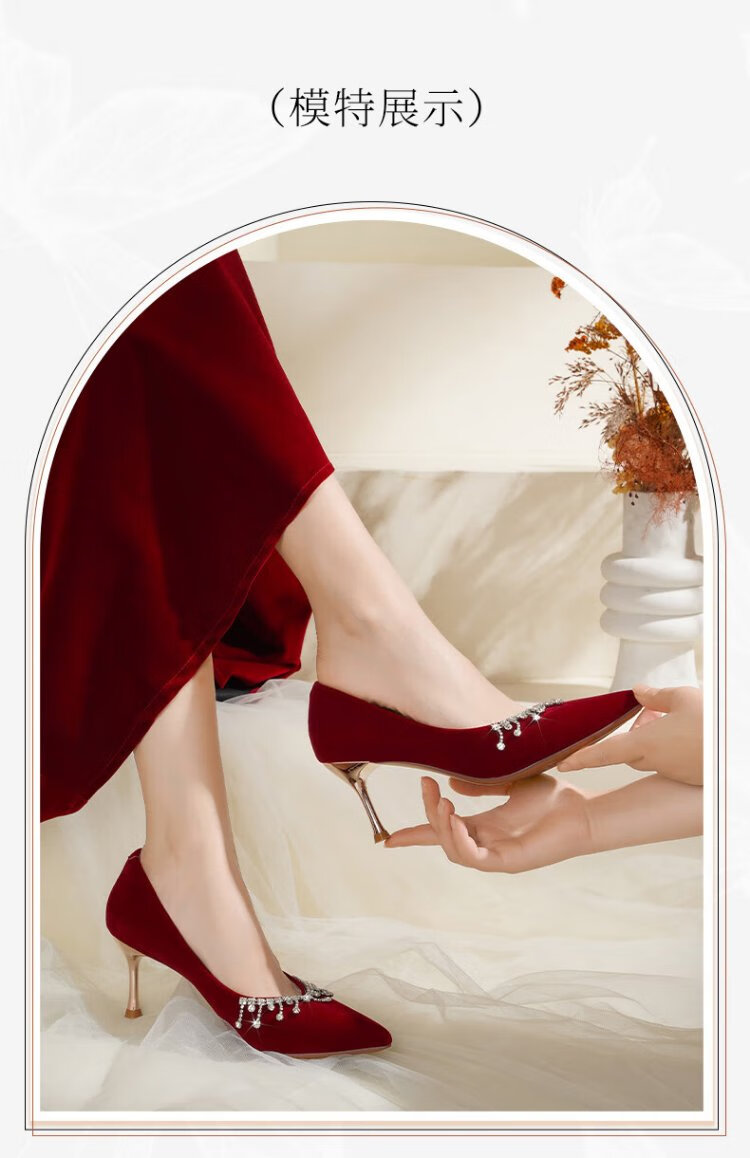 ZHR high heels women's stiletto pointed cheongsam main wedding shoes women's shoes wedding dress Xiuhe toast bridal shoes FM10 red 37