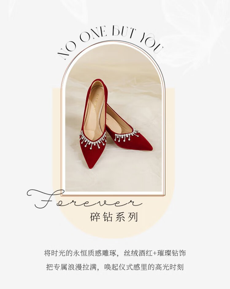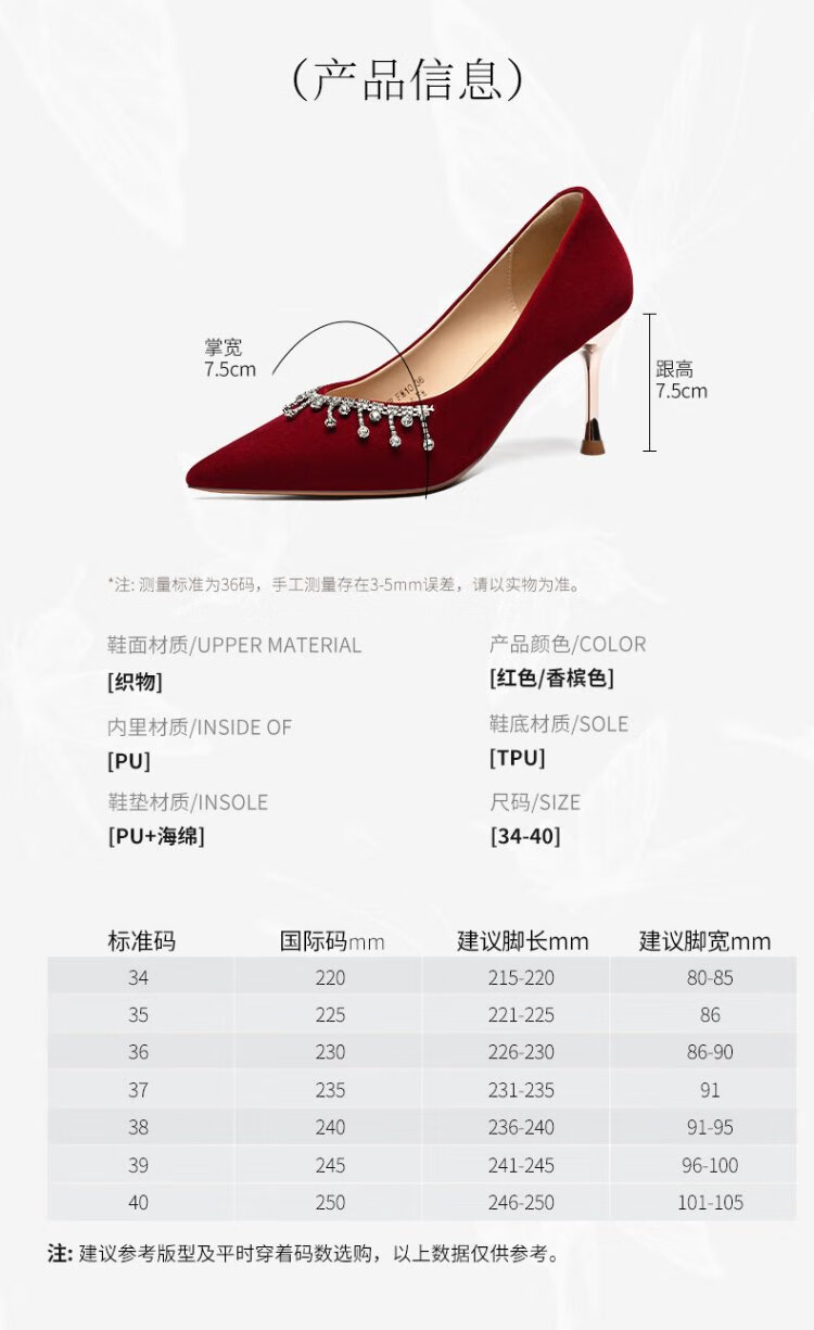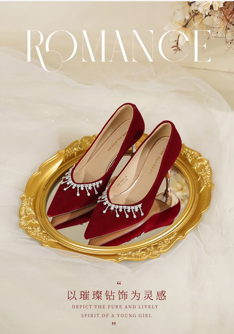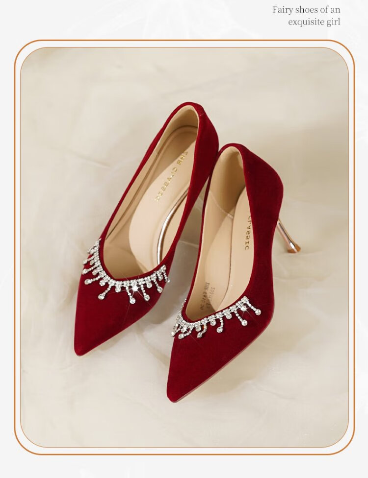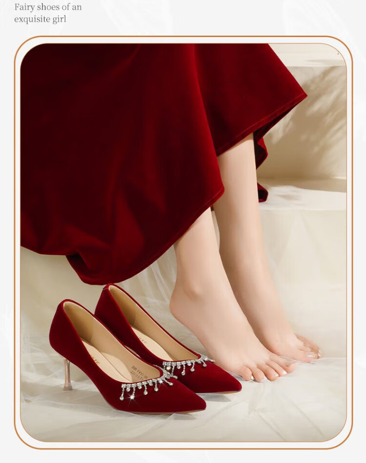 ZHR high heels women's stiletto pointed cheongsam main wedding shoes women's shoes wedding dress Xiuhe toast bridal shoes FM10 red 37