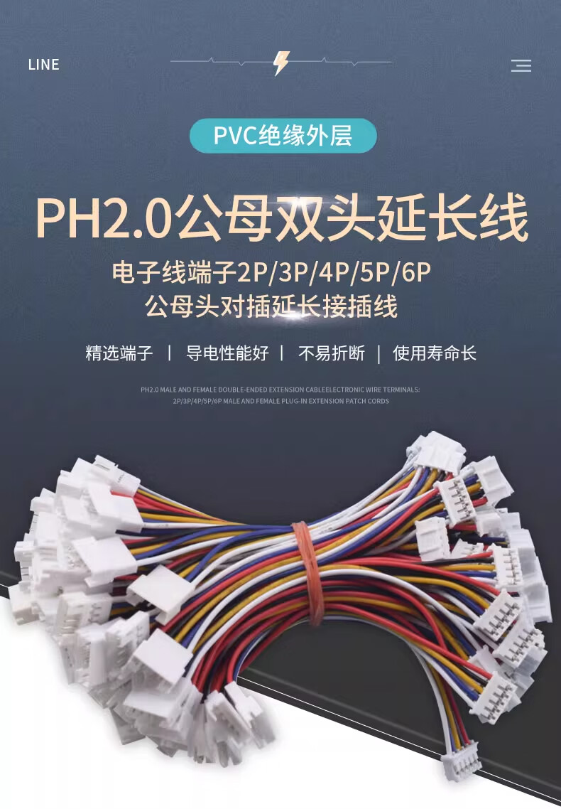 ZAVE PH2.0mm male and female extension terminal wire double-ended XH2.54 2p200mm1 male 1 female 26awg wire (5 pieces)