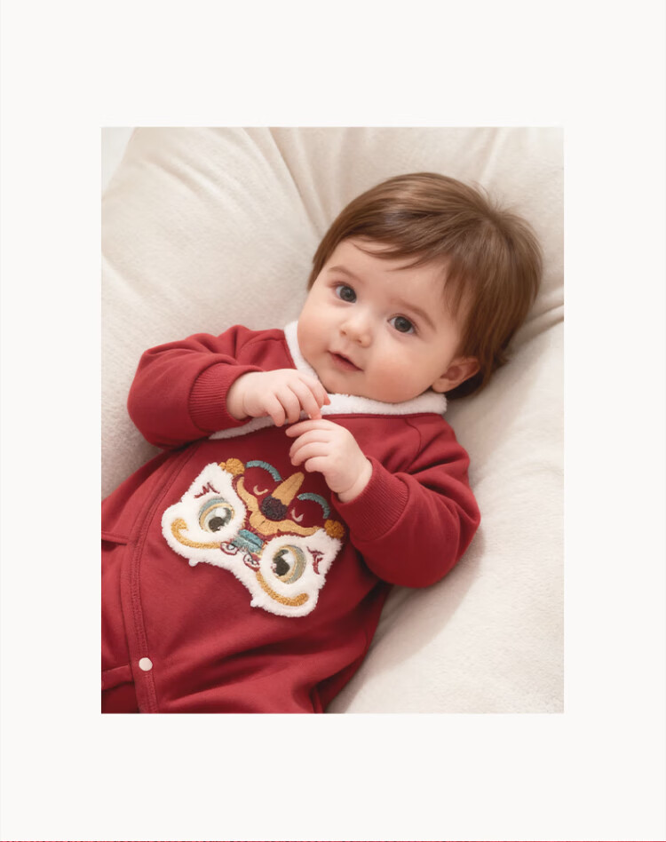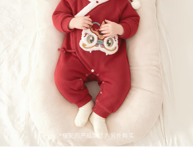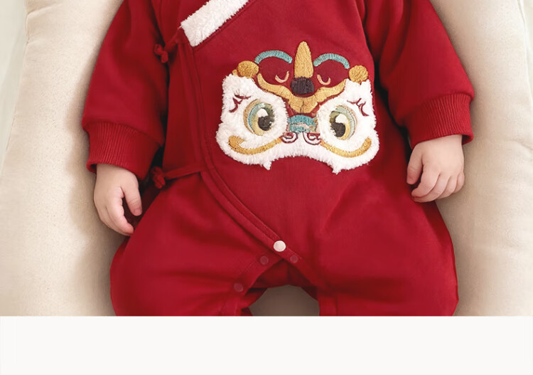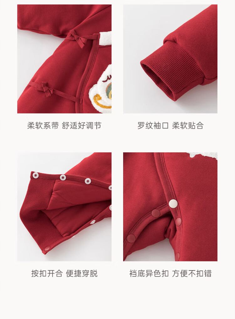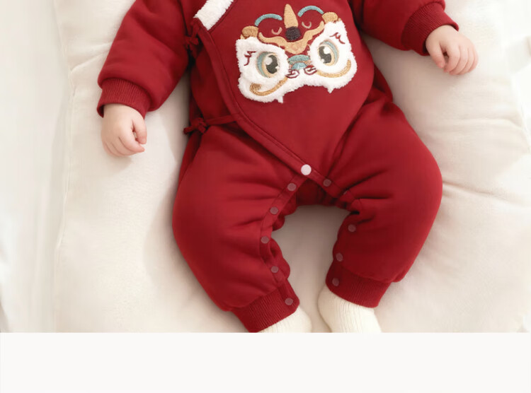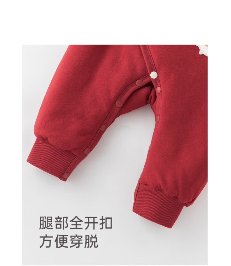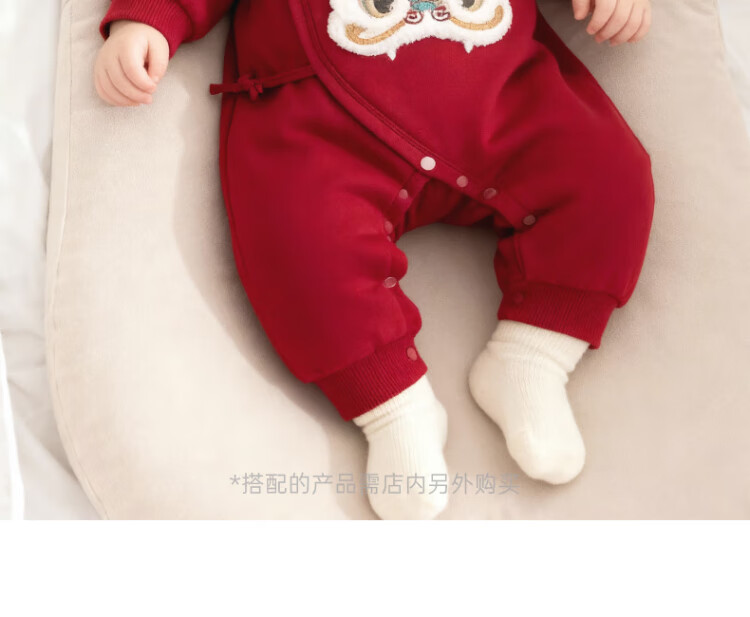 Good Bear Warm Protective Cotton Newborn Baby Padded Warm Strap One-piece Harness Baby Red Hundred Days Banquet Autumn and Winter New Year's Eve
