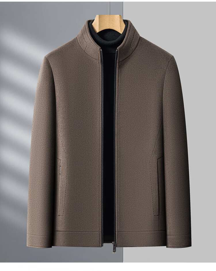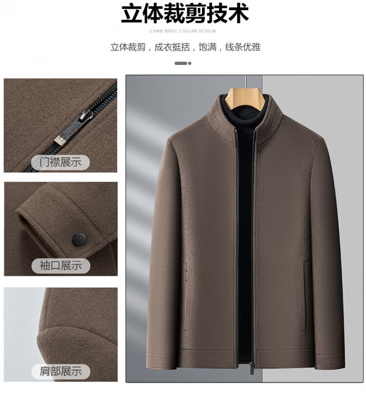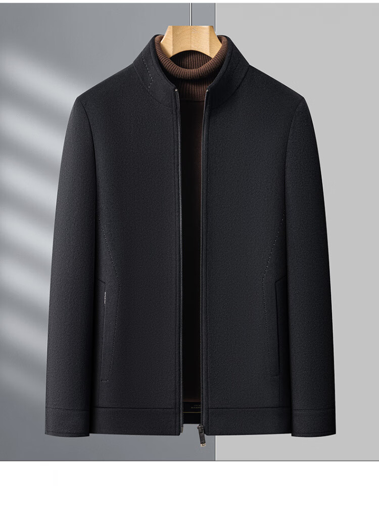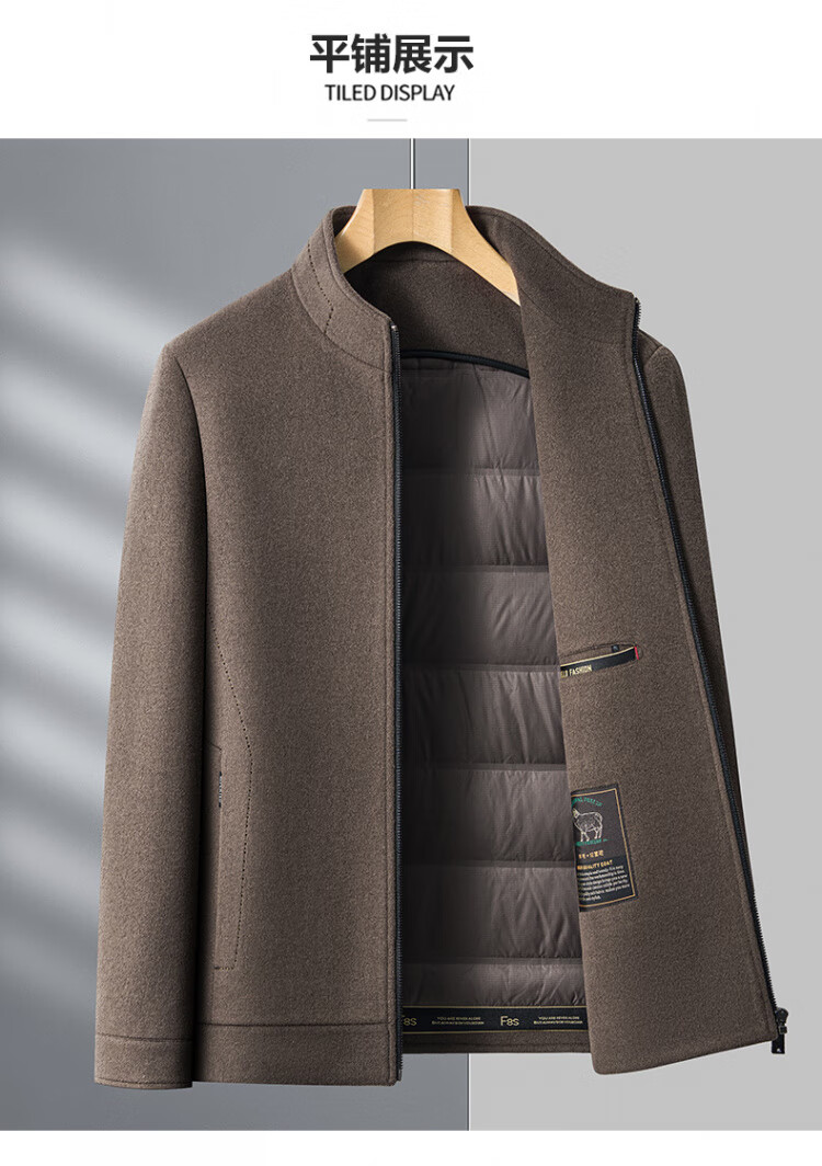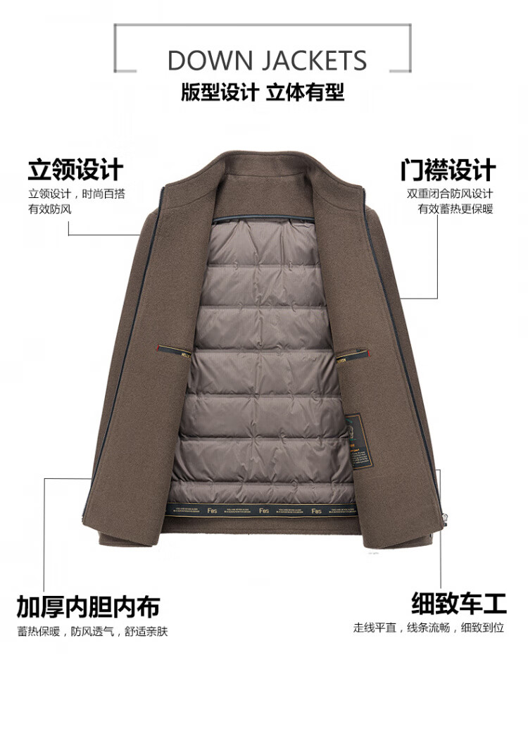 Hengyuanxiang woolen coat men's stand-up collar middle-aged coat dad winter thickened down jacket goose down liner removable