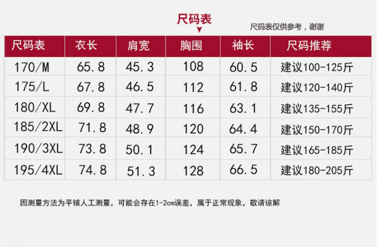 China (cm) 165 / 88-90 170 / 96-98 175 / 108-110 180 / 118-122 185 / 126-130