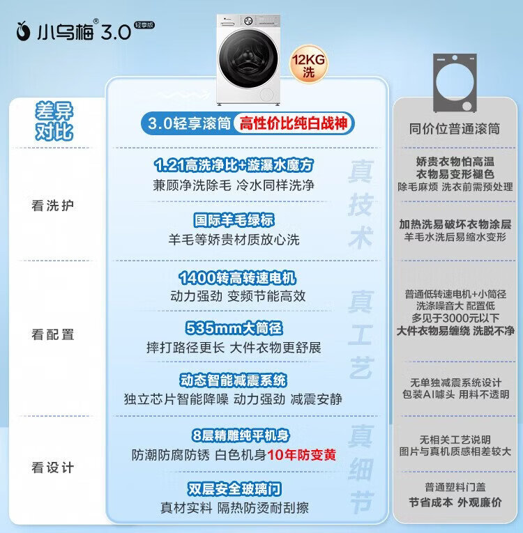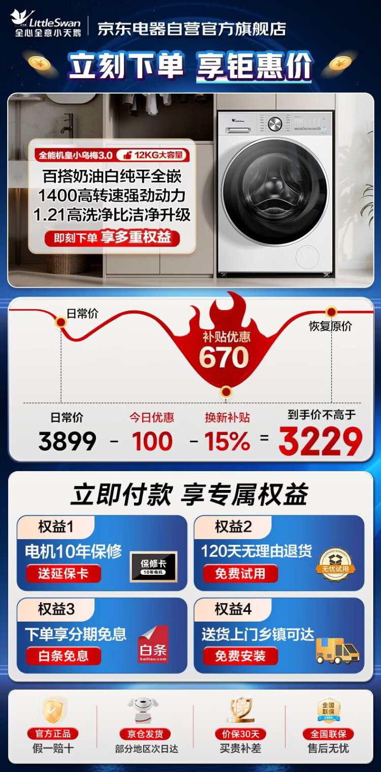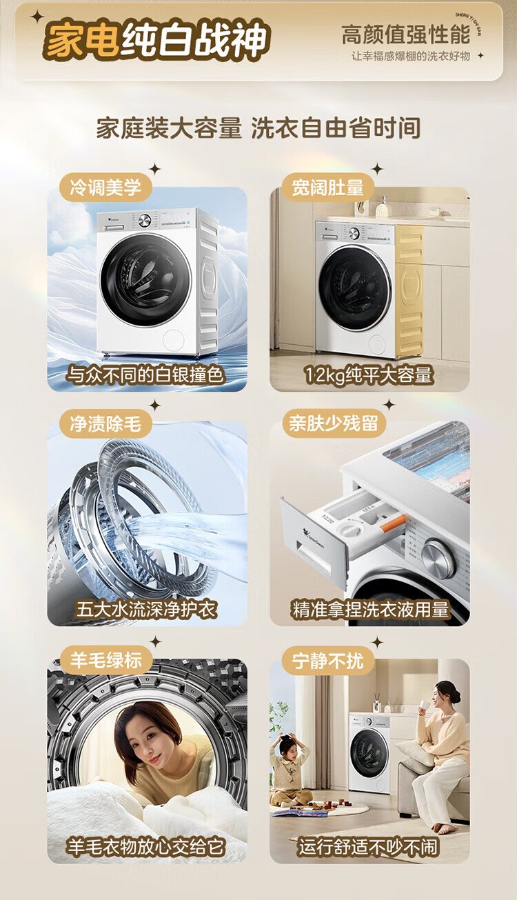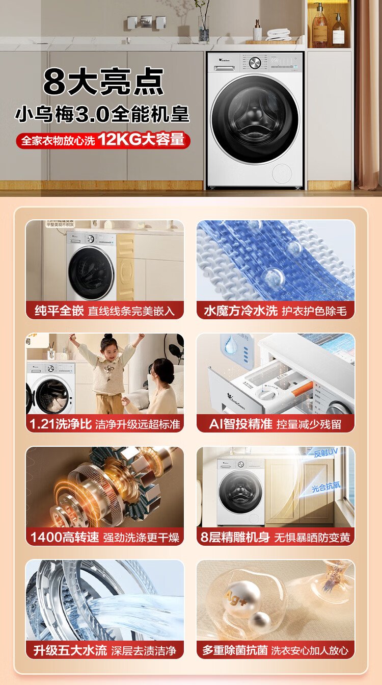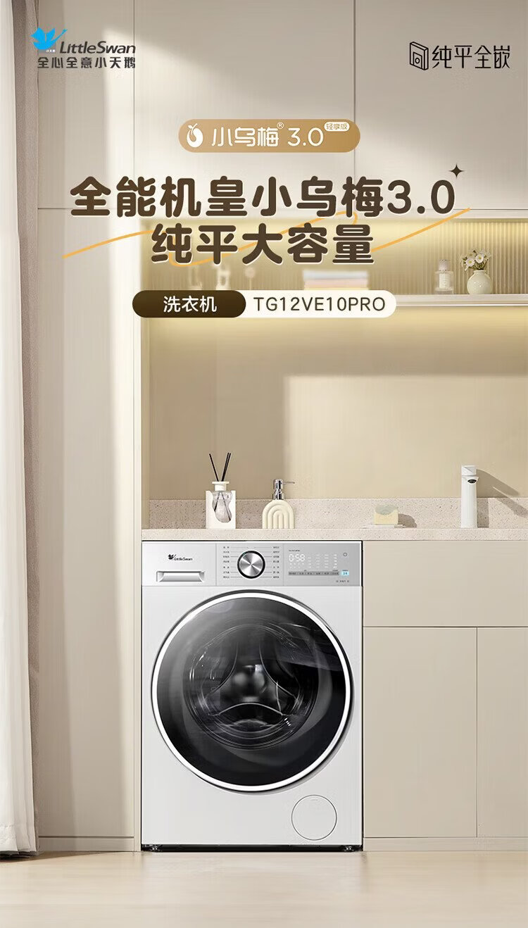 LittleSwan Xiaowumei 3.0 drum washing machine fully automatic home 12kg ultra-thin flat screen first-class energy efficiency light version TG12VE10PRO trade-in national subsidy OCC