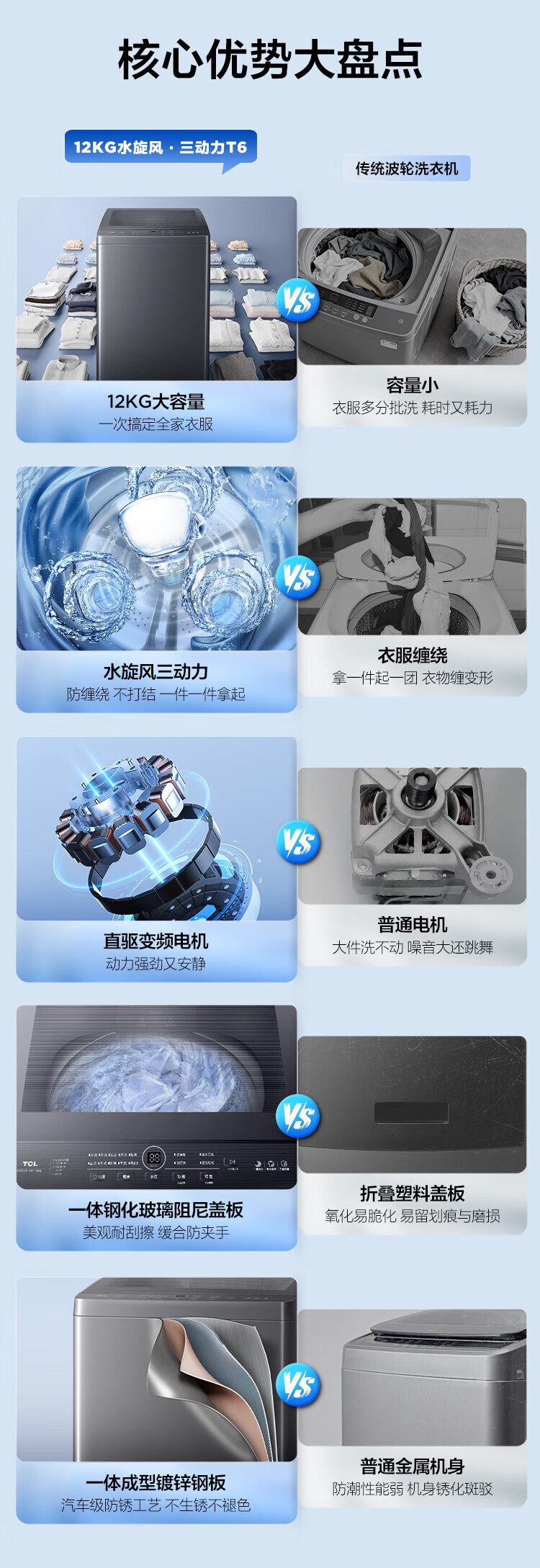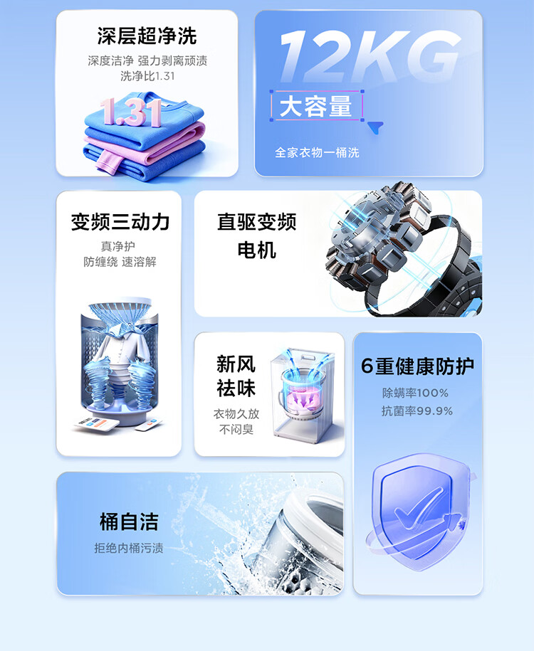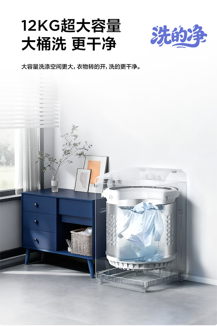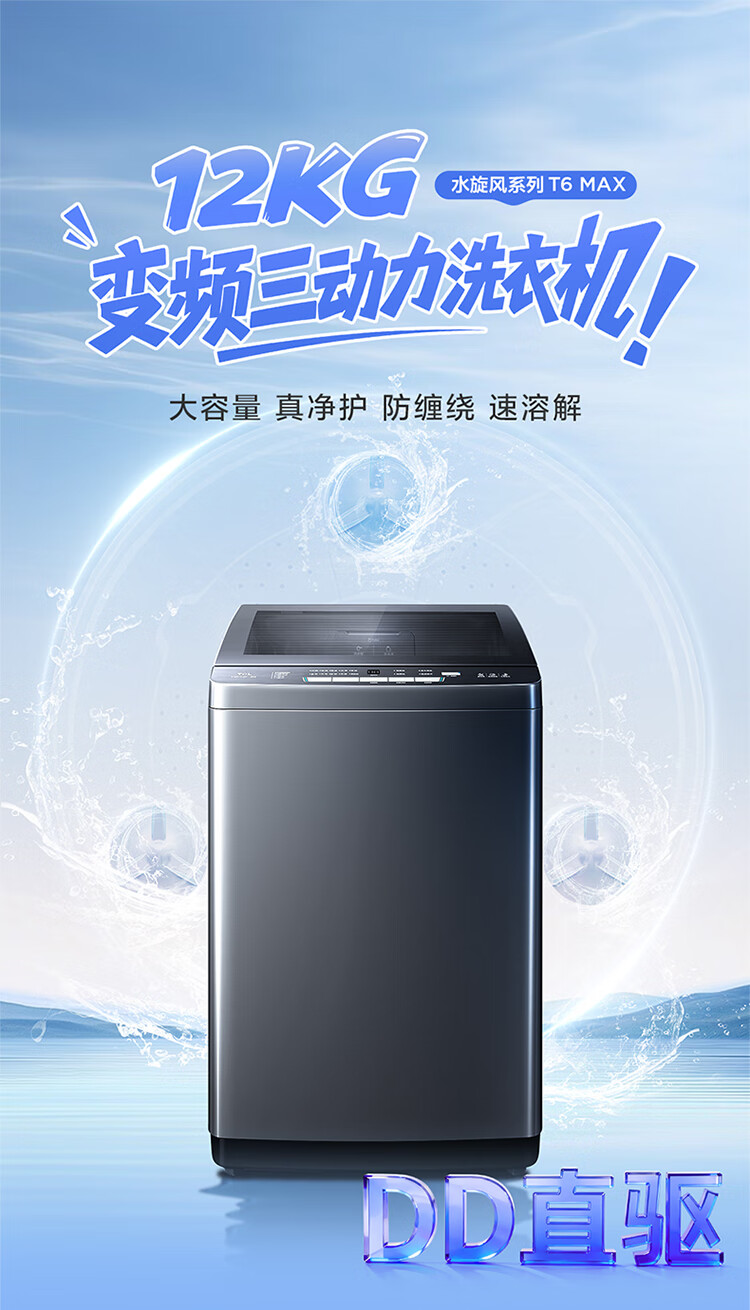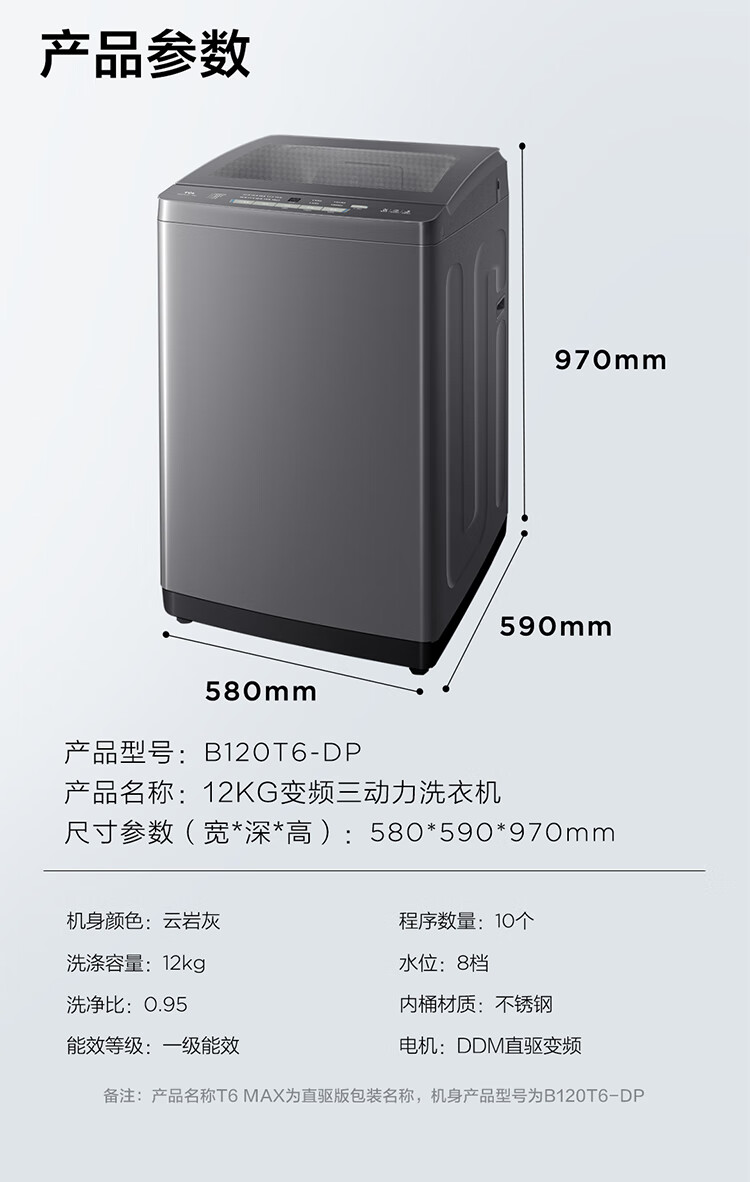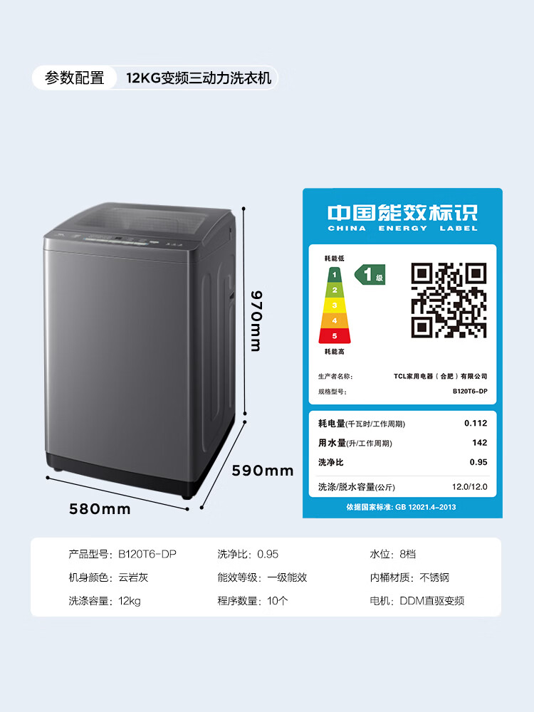 TCL upgraded water cyclone variable frequency three-power impeller 12KG large capacity household fully automatic washing machine 1.31 wash ratio trade-in national subsidy B120T6-DP